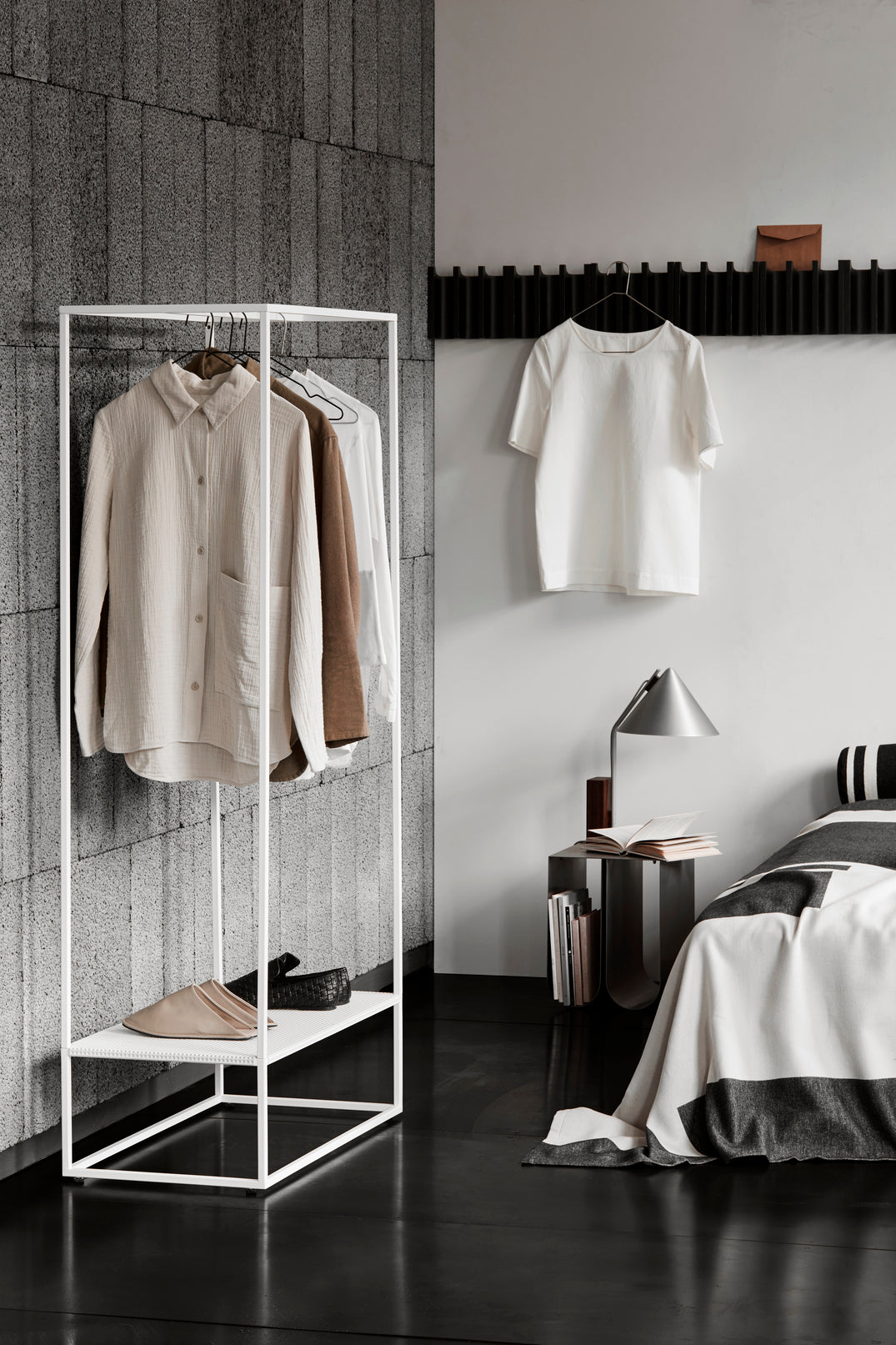 The steel frame of the rack is simple, elegant and stable. Grid Coat Stand is available in black and white powder coated steel. Hallway furniture is about packing function into a small space, and therefore we have made it relatively small while it still can accommodate a range of clothing and is robust enough to last. As we bring our winter coats out of retirement, hallways can end up cluttered with the layers we pile on for the season. A functional coat stand helps to keep things organized we have placed a shelf into the rack to keep umbrellas and shoes out of your way too. If your hallway is spacious enough the Grid Coat Stand airy design is ideal to display your coats, hats and shoes.