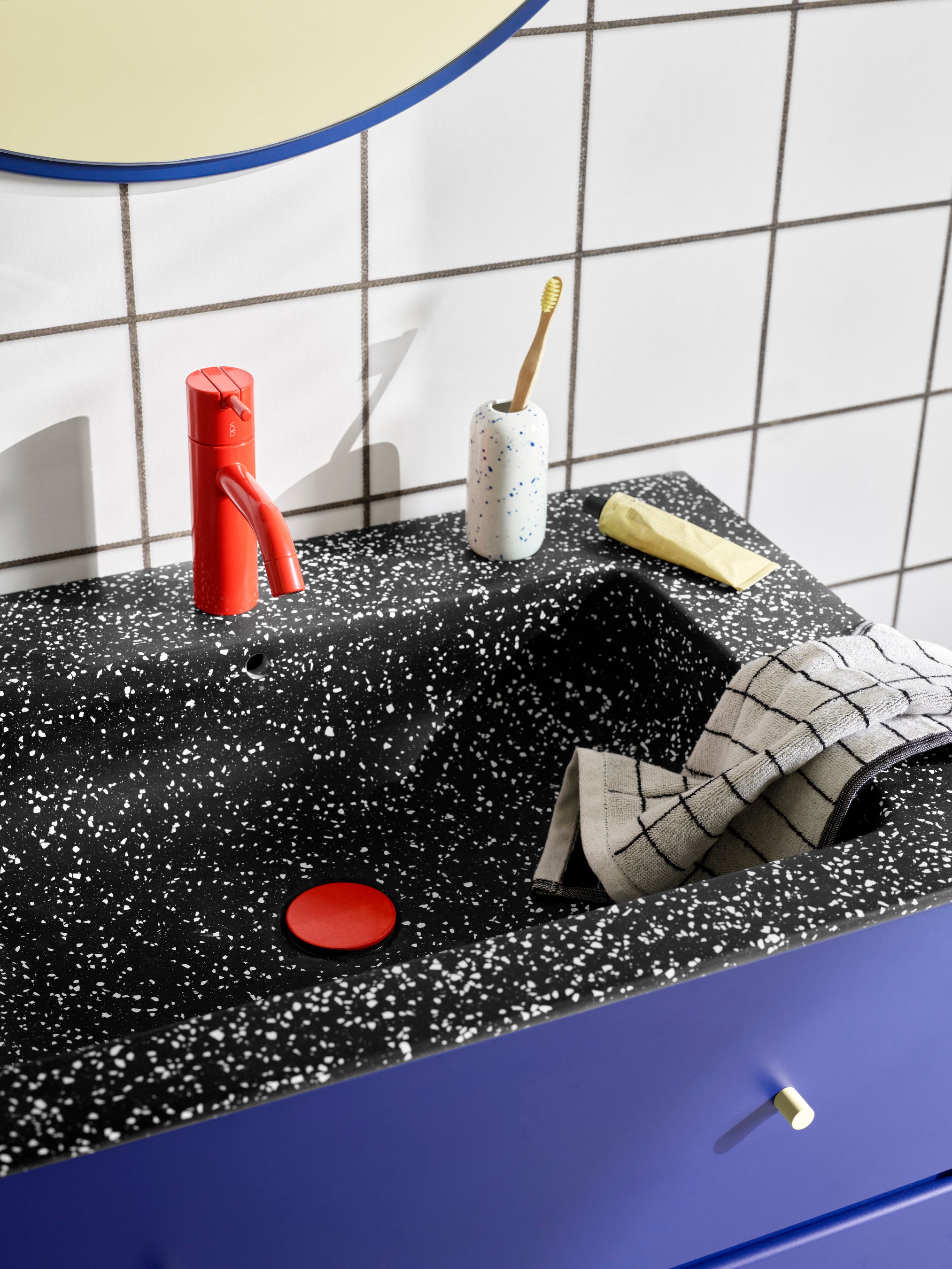AROUND is a circular mirror that fits perfectly in the bathroom, hallway, or bedroom. The round shape creates a beautiful contrast to the sharper universe of the Montana shelving system.
