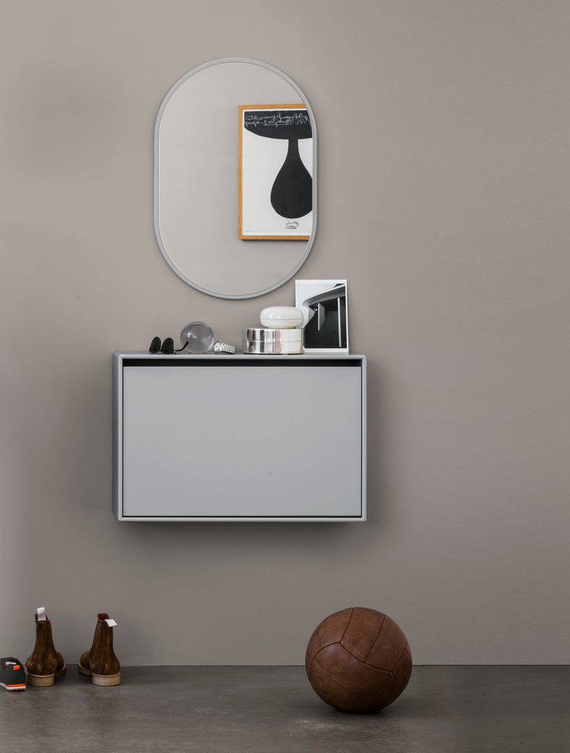 LOOK is a small oval mirror that fits perfectly in the hallway or living room. The oval shape creates a beautiful contrast to the sharper universe of the Montana shelving system.