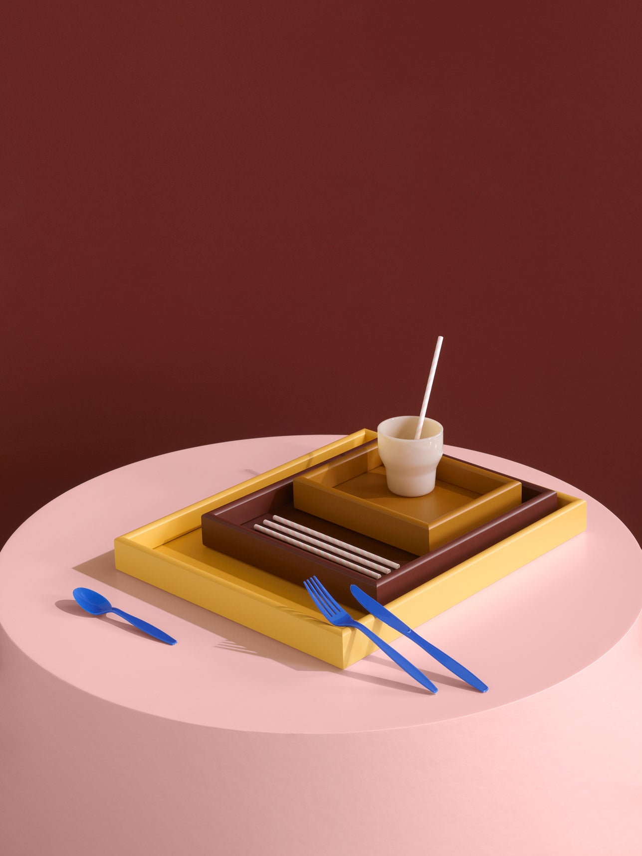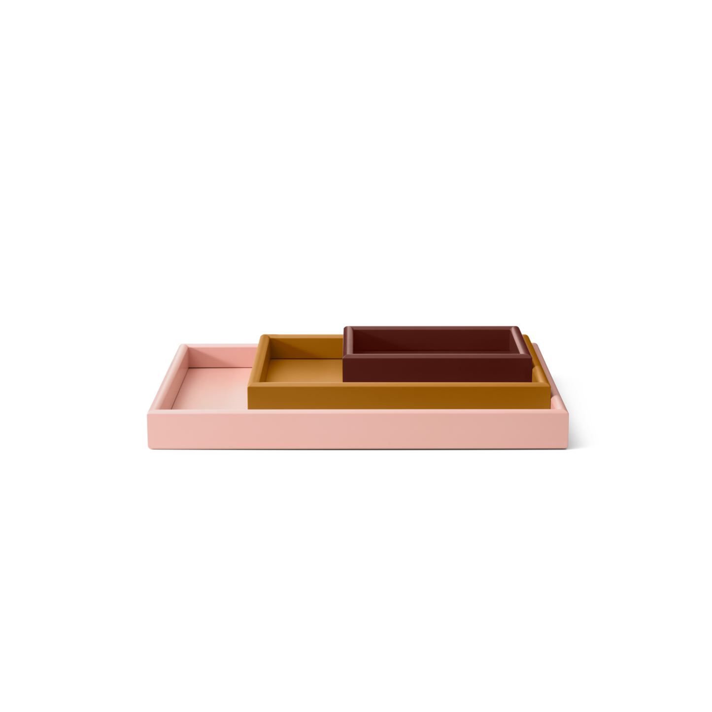 With this set, you get one tray in Medium and one in Small. Choose between two color combinations: Ruby & Masala or Acacia & Amber. The set is ideal for storing and displaying smaller items like bathroom products, jewelry, or keys. Use the Medium tray as a snack tray or for serving your afternoon coffee or tea.