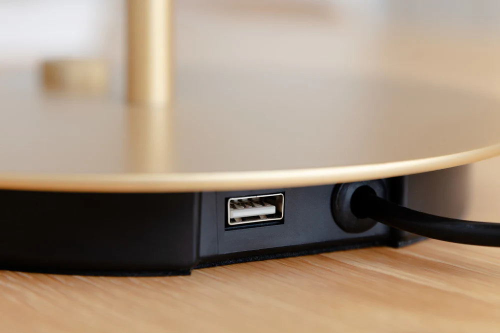 Asteria table has a built-in LED panel with a diffuser ensuring a soft illumination in the room. The brass stem going through the table lamp as a vertical axis reinforces a tight and sleek expression. Asteria table has a hidden USB-port, so you can charge your phone – even when the light is turned off. The lamp is ideal on the desk or as a bedside table lamp but will add elegance to every corner of the home.