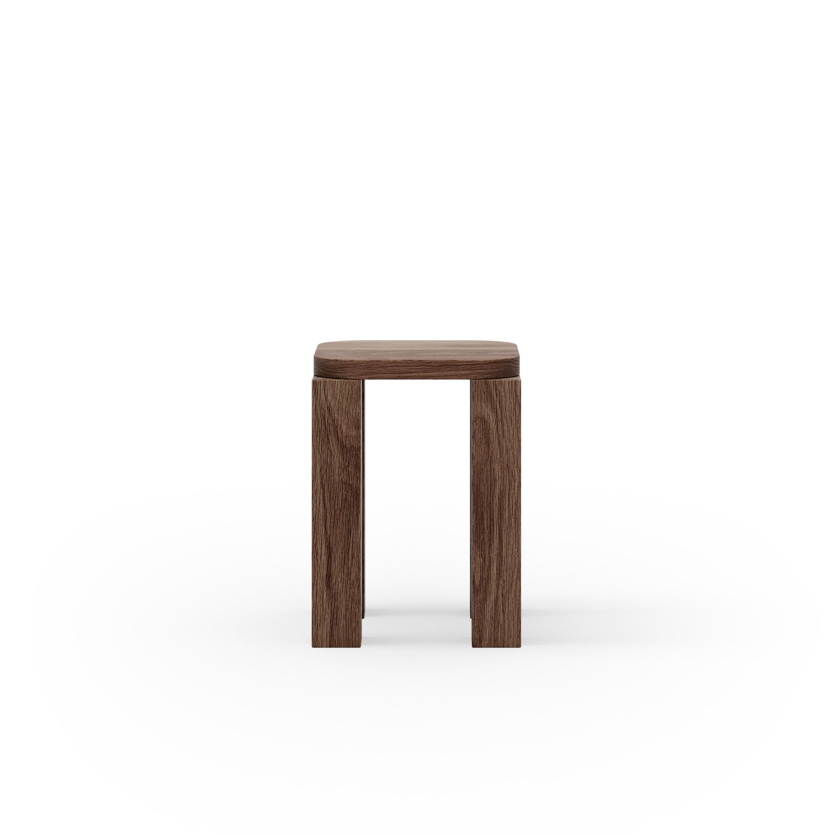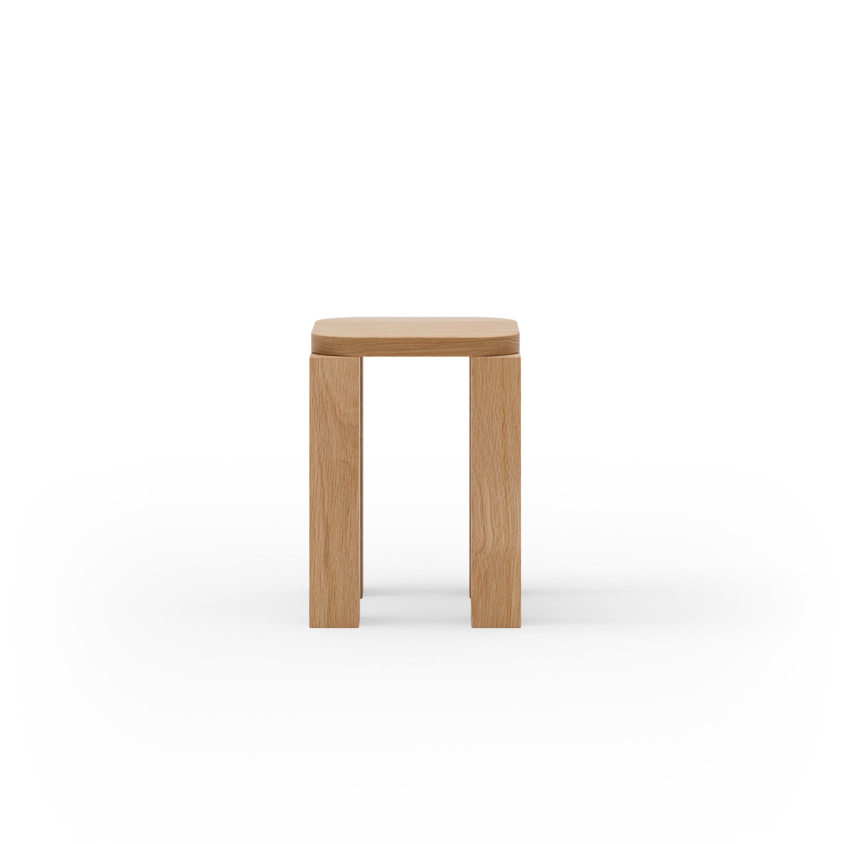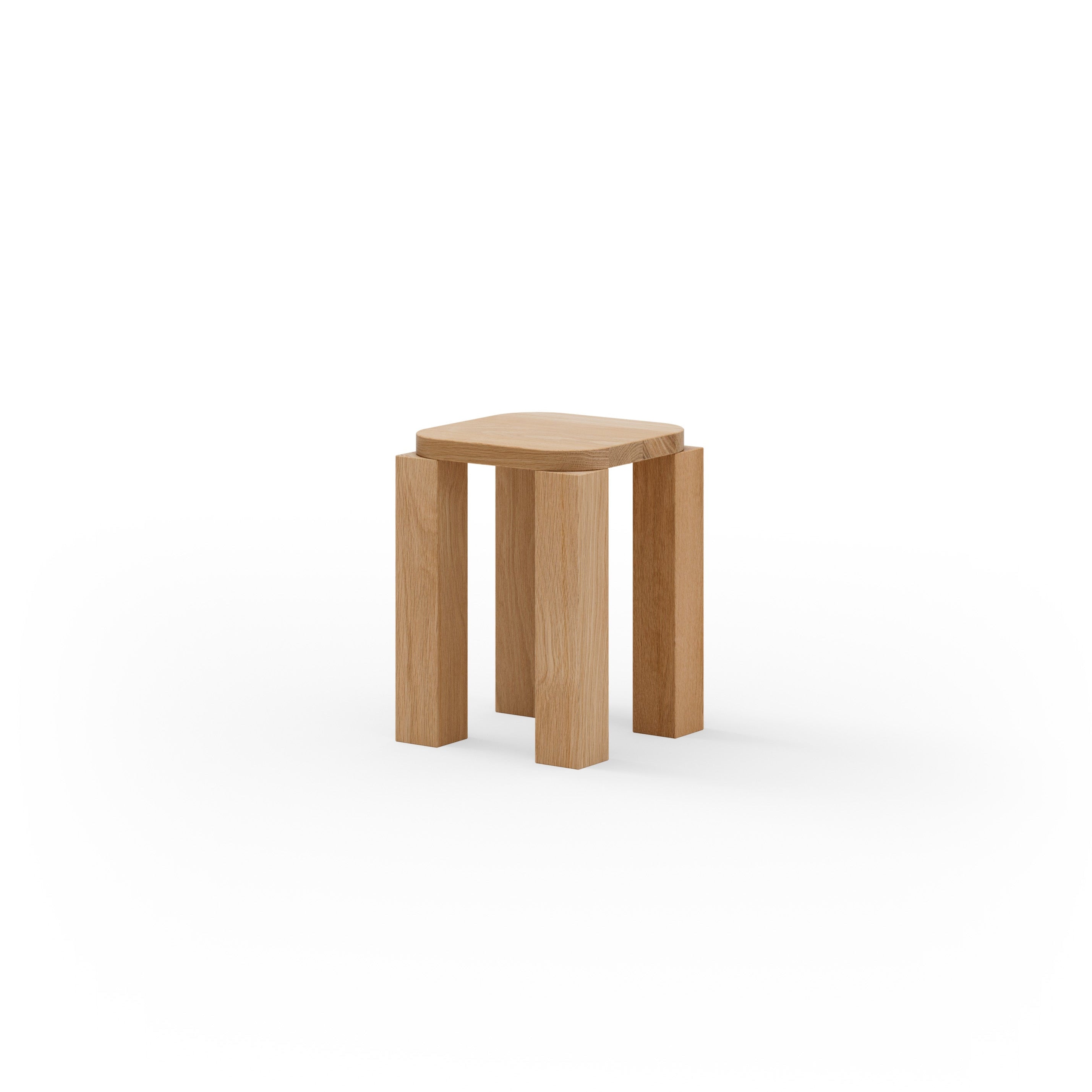 Named after the mythical Titan condemned to hold up the heavens on his shoulders, the solid legs of the Atlas Stool stand strongly as support for the rounded seat. The meeting and contrast between the legs and the seat is central to the design, where each element exaggerates the other giving the stool its distinct presence and brutalist feel. For Atlas, John Astbury has taken inspiration from several influences in architectural history. There are references to porticoes and colonnades, but Atlas builds mainly on the archetypal post-and-lintel construction. Combined with simple geometry, the circle and the square, it is the primary archetypes that together create the stool’s character and composition. The Atlas Stool can fulfil many different purposes, acting as seating or side table, and enriches a space as a stand-alone piece.