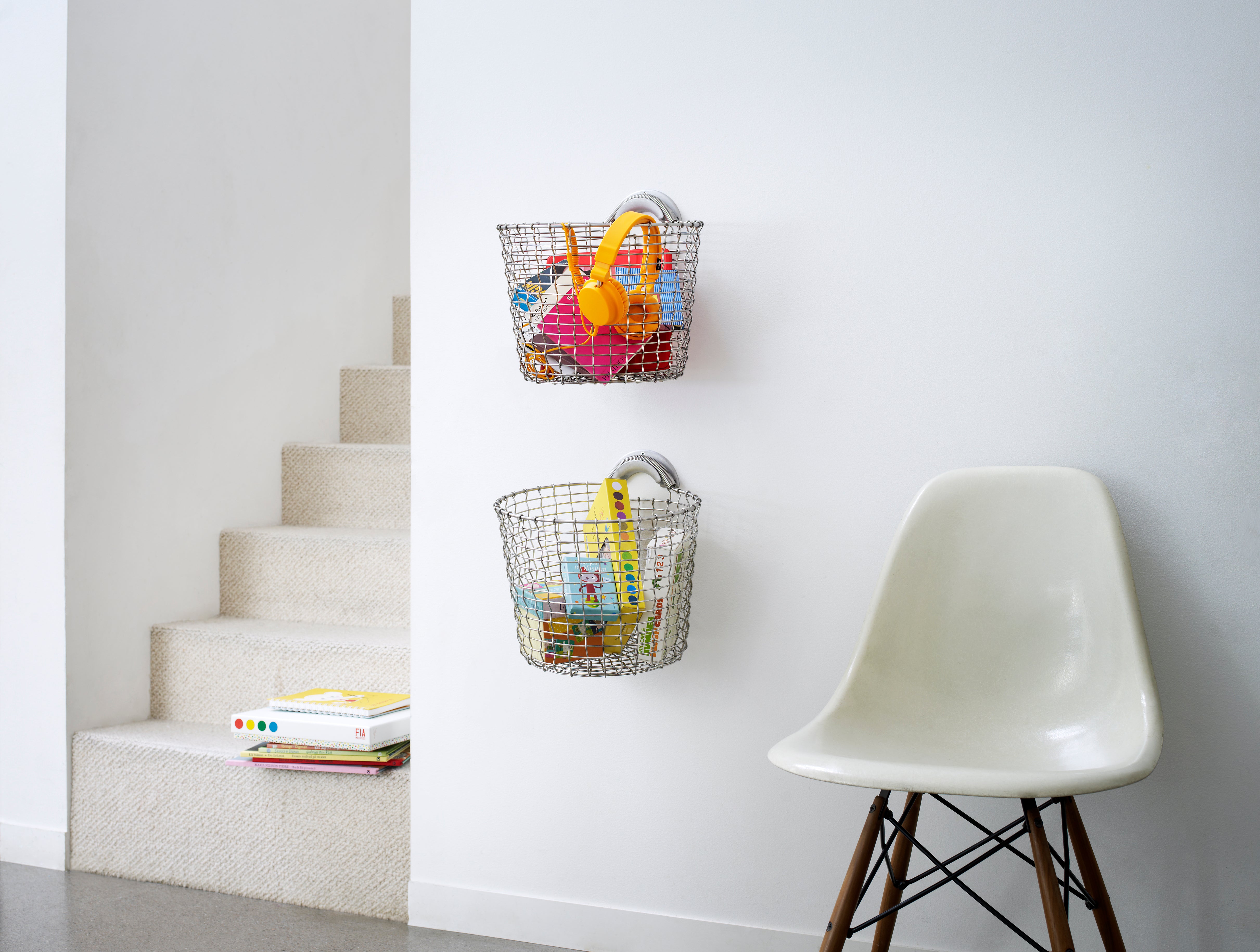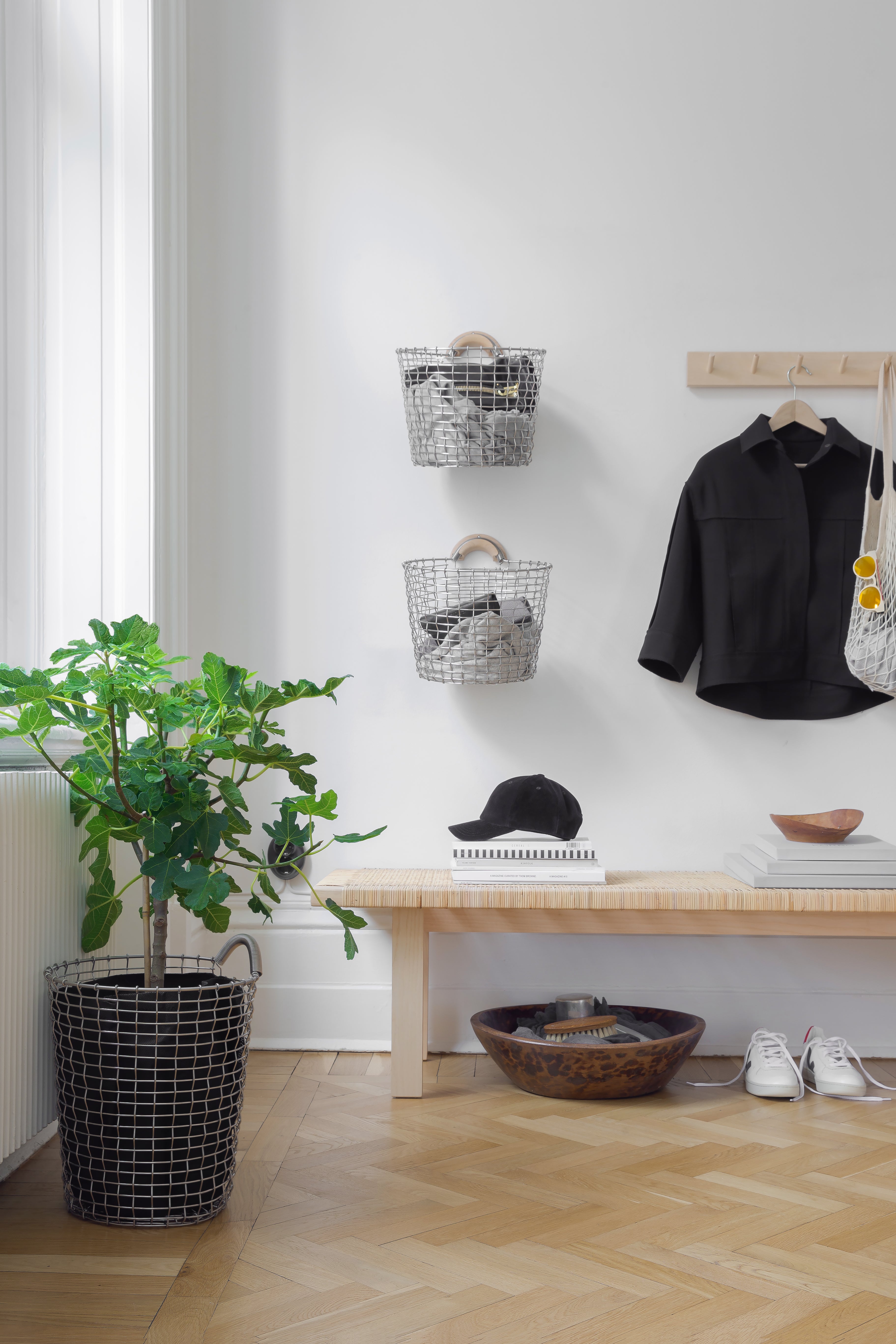 Use the Bin hanger to hang Korbo baskets, for a smart wall mounted storage in the hallway, kids room or anywhere storage is needed.