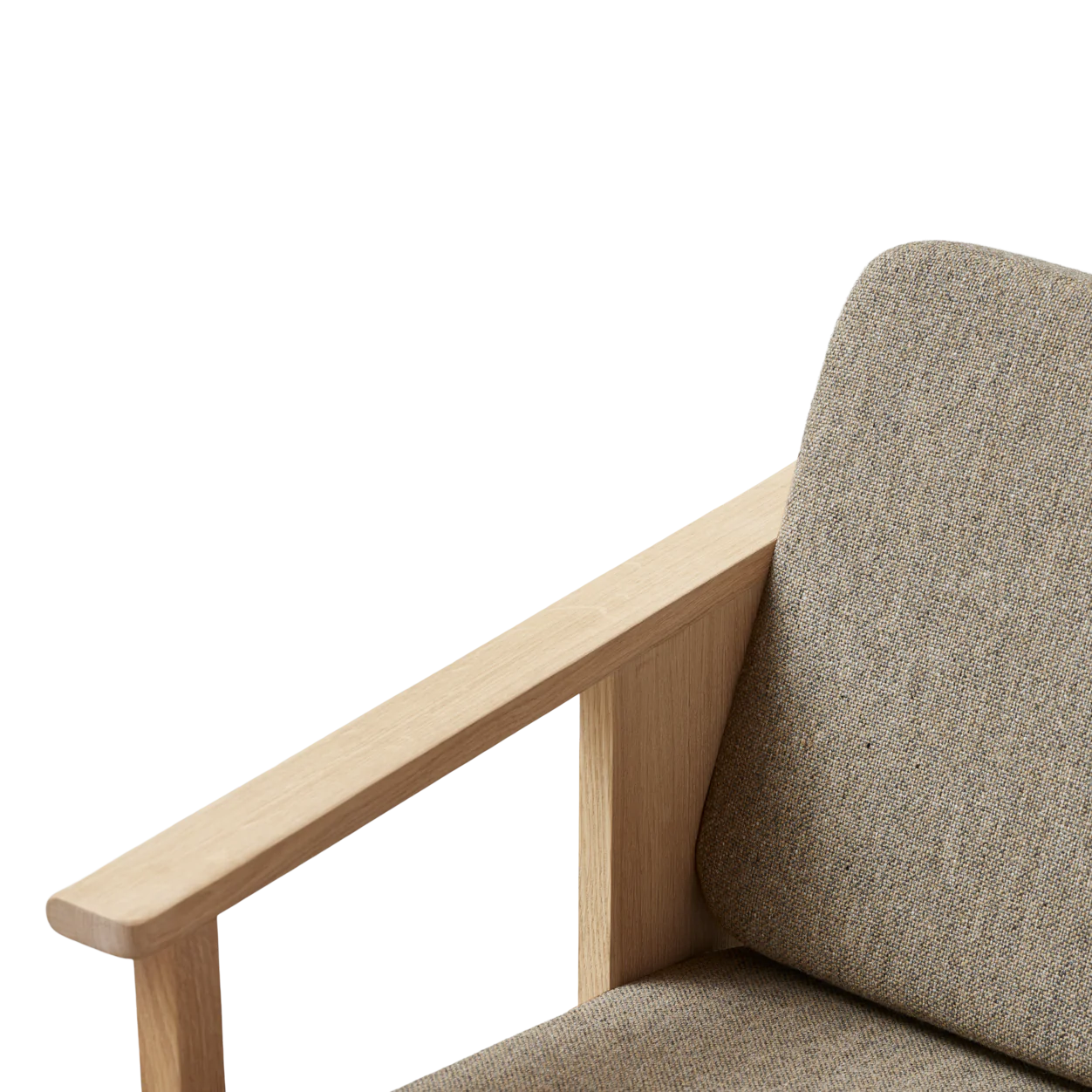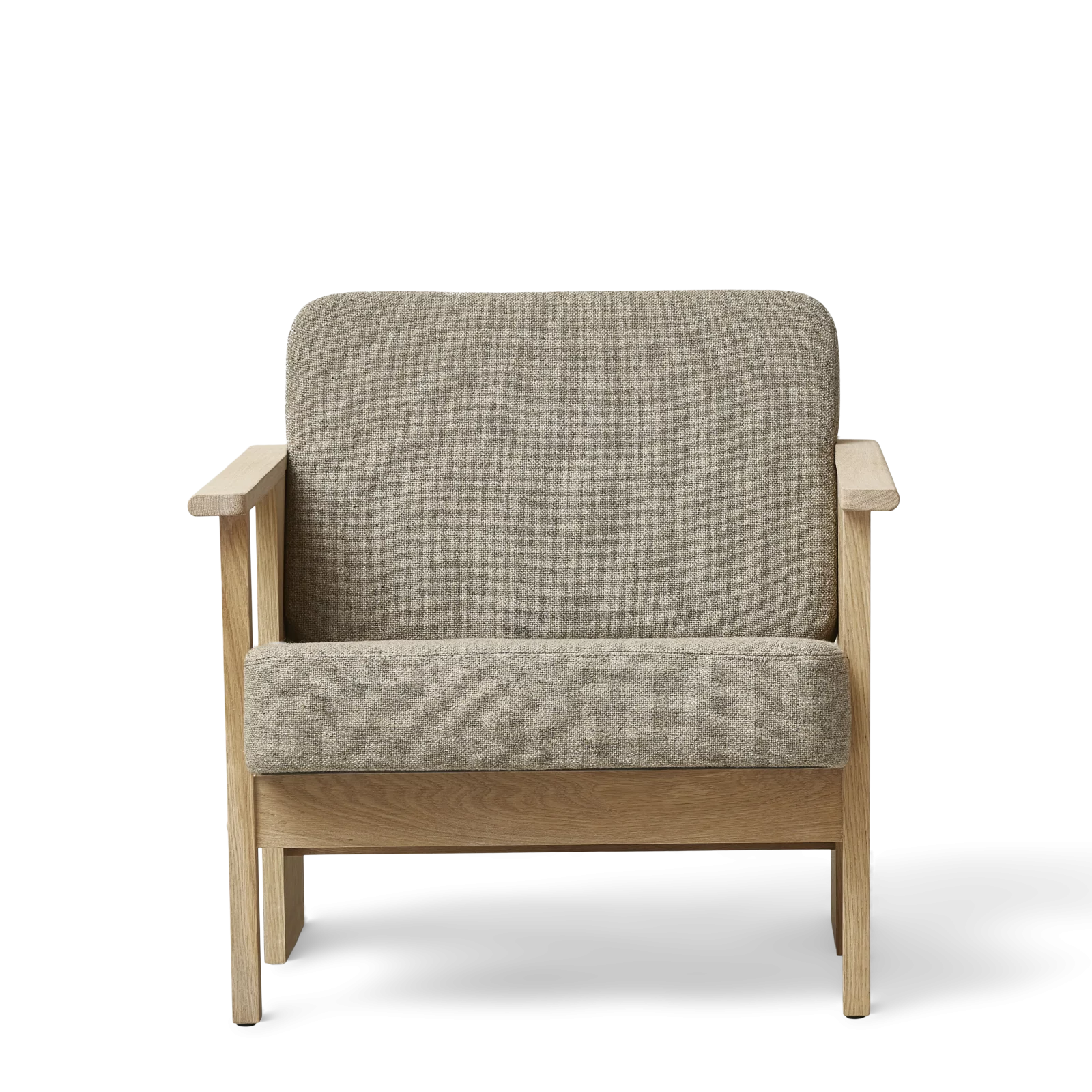 The chair is upholstered with the classic woolen textile Hallingdal 65 in an updated color scale and a traditional pattern. The Hallingdal wool textile adds comfort and tactility to the cubic shape of the Block Lounge Chair. The upholstered seat cushion is snugly fitted to the frame with softly rounded edges. The textile Hallingdal 65, 0227, was developed in partnership with Kvadrat.