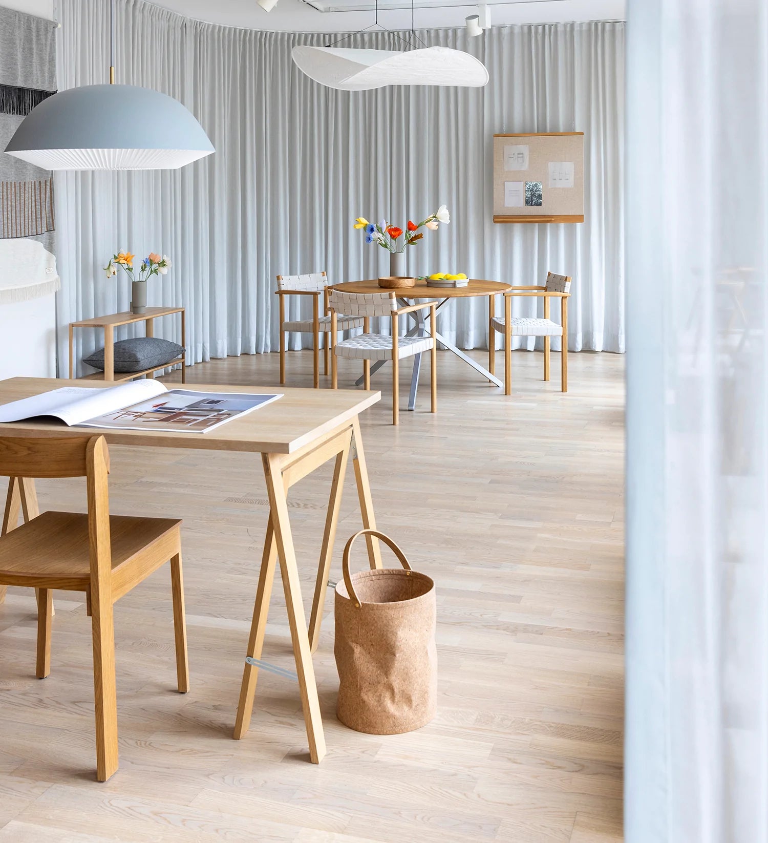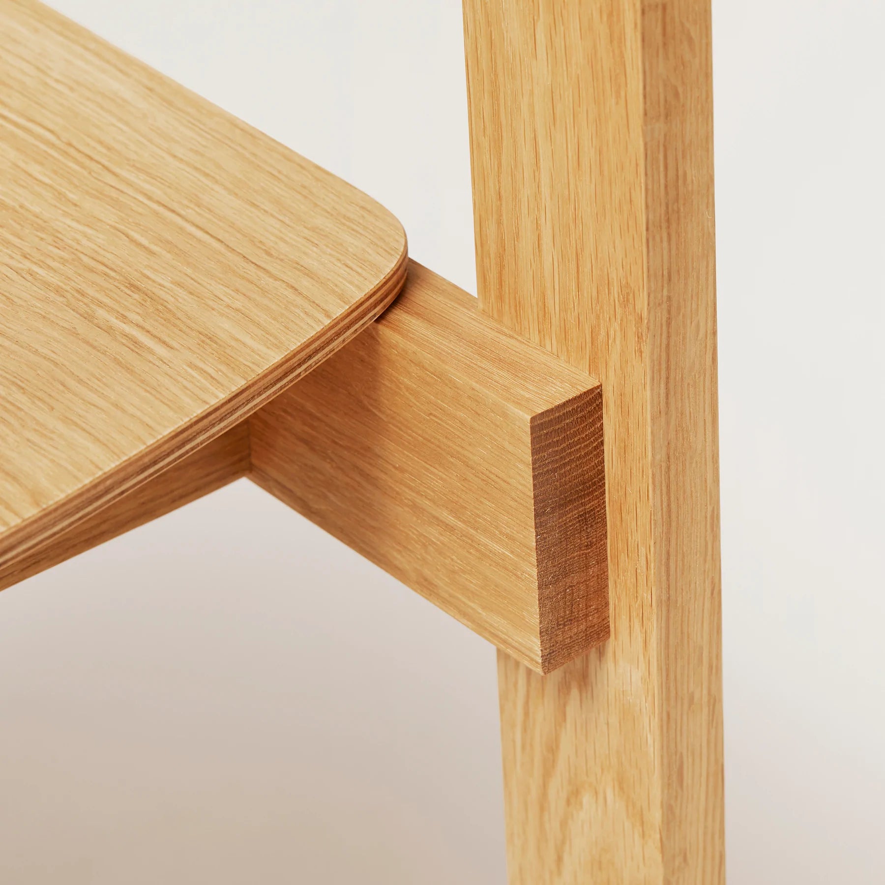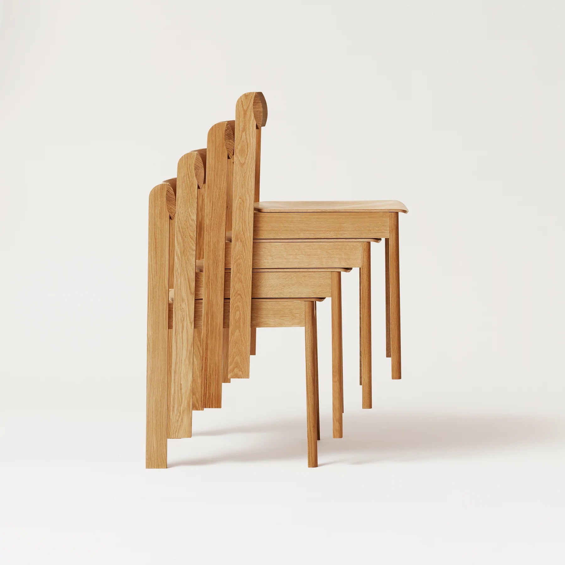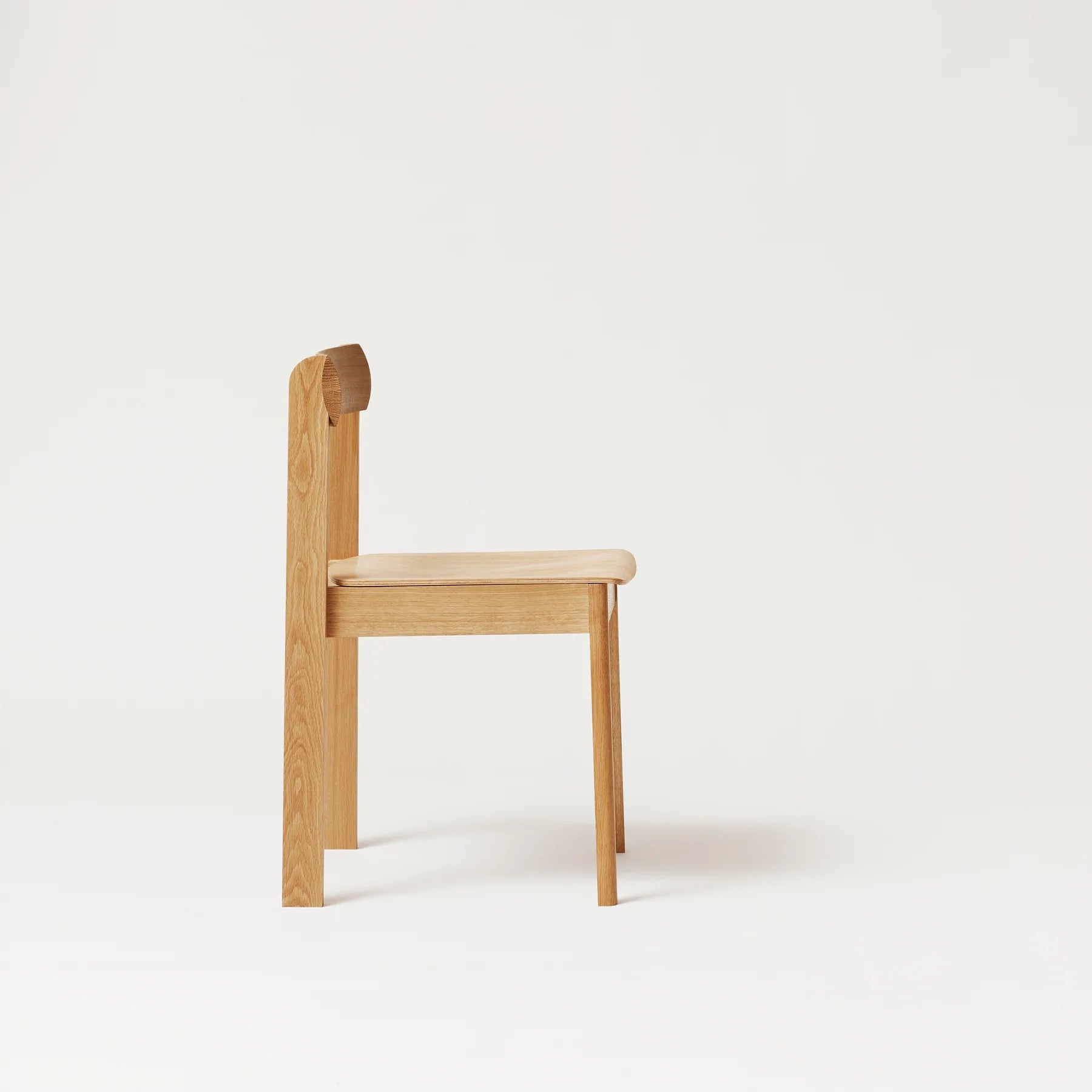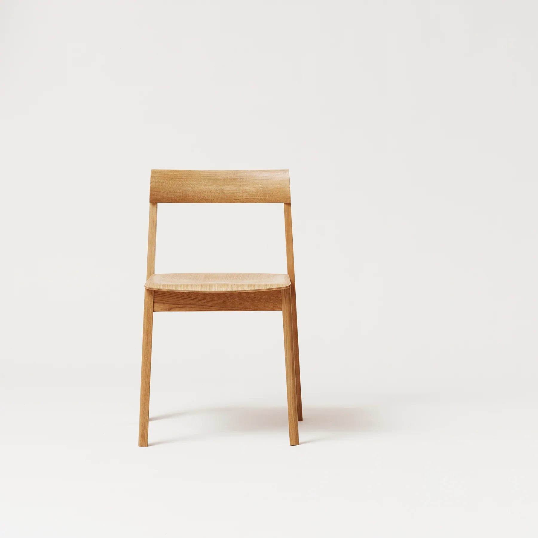 This is an archetypical chair by Form & Refine – a chair made completely out of wood. The extraordinarily shaped seat inspired by the human body supports a good comfort. In addition, the solid organically shaped backrest gives the chair a minimalistic and personal feature. Strong, solid legs combined with the veneer seat add to the surprising lightness and stunning visual sharpness of the chair. The exquisite backrest is made out of one solid piece of wood and steam bent from the front and back. There are no visible screws. You can stack up to five chairs. The chair is made to fit all desires – hospitality, office or private use. It is made of local certified wood.