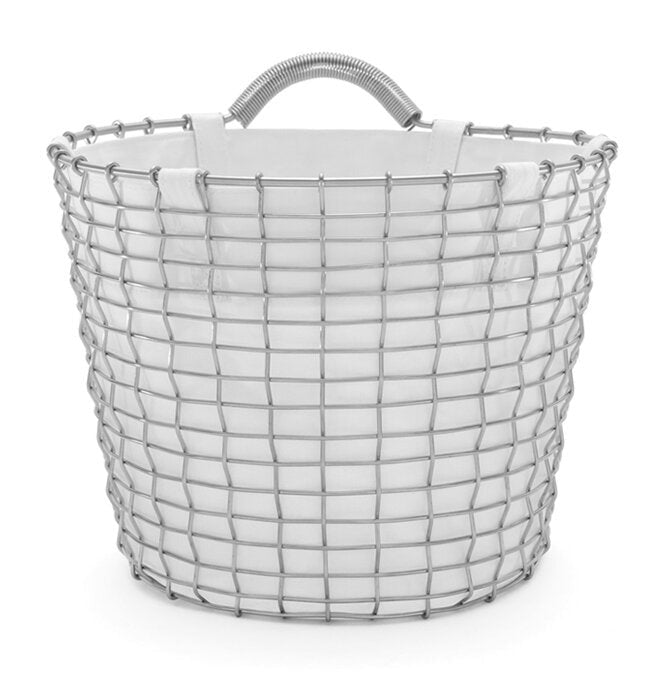 Galvanized steel has effectively been used for more than 150 years. By adding a physical barrier of zinc to the wire, the basket is protected from corrosion and gives it a beautiful matte patina over time.