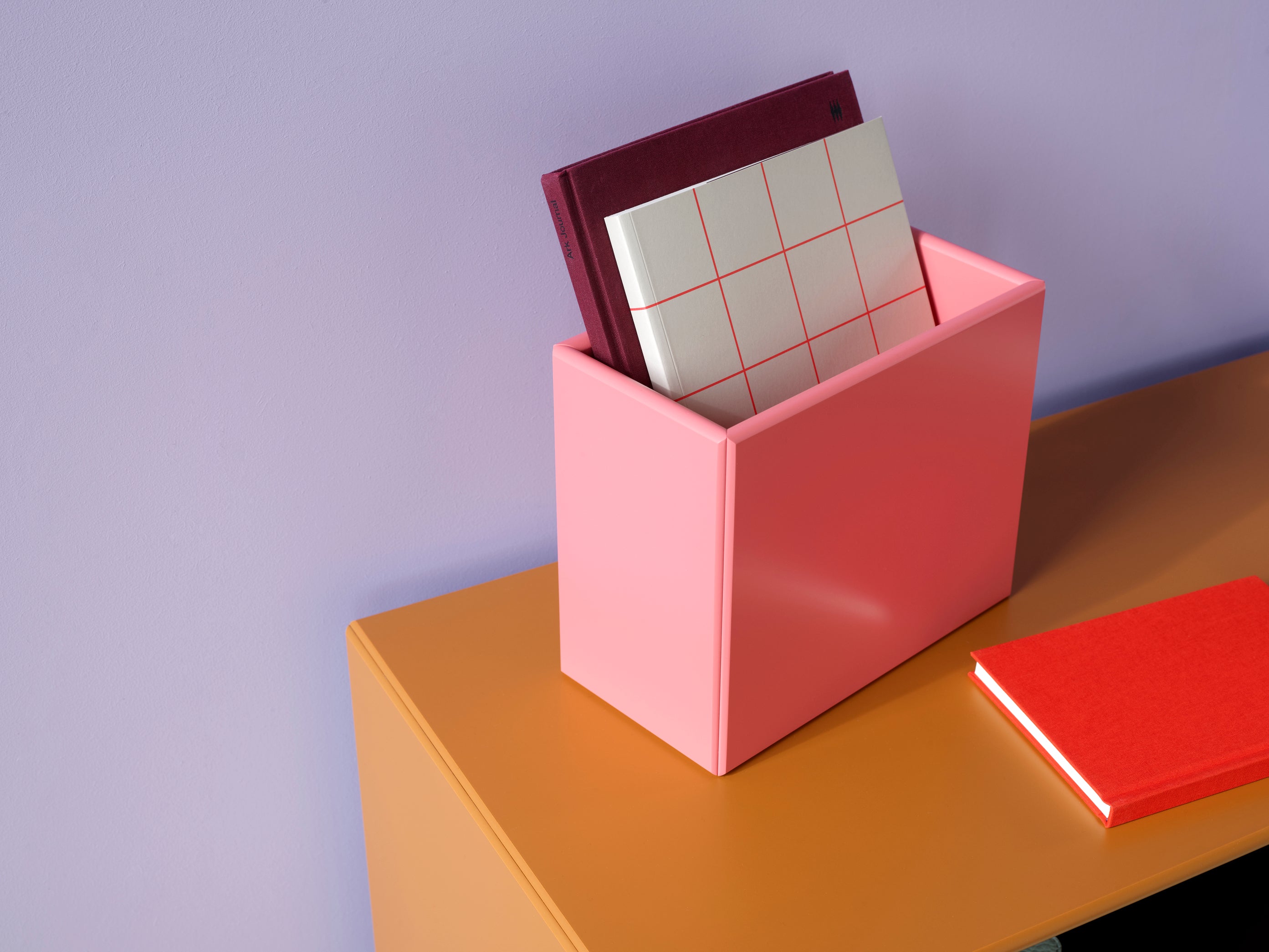 COLLECT is the physical inbox on your work desk in the home office for mail, papers, magazines and the like. Turn the module into a shelf to place your computer on during virtual meetings by using it horizontally.