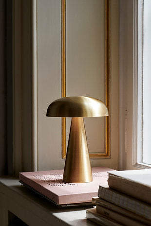 The base and shade is made from extruded aluminium or brass. Battery compartment is made from moulded ABS.