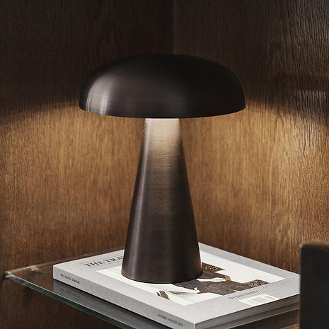 Match lighting to mood with Como SC53, a portable table lamp from Space Copenhagen. Crafted from anodized aluminum, Como’s sturdy base tapers up towards a softy curved, mushroom-shaped shade. This battery-powered lamp can operate for eleven hours at the highest setting. It is easily recharged with a magnetic USB cable or a charging tray.