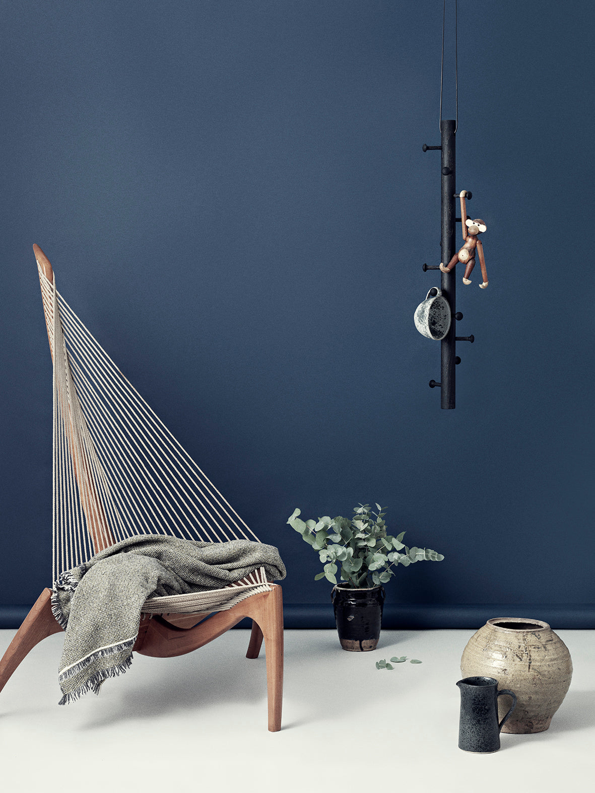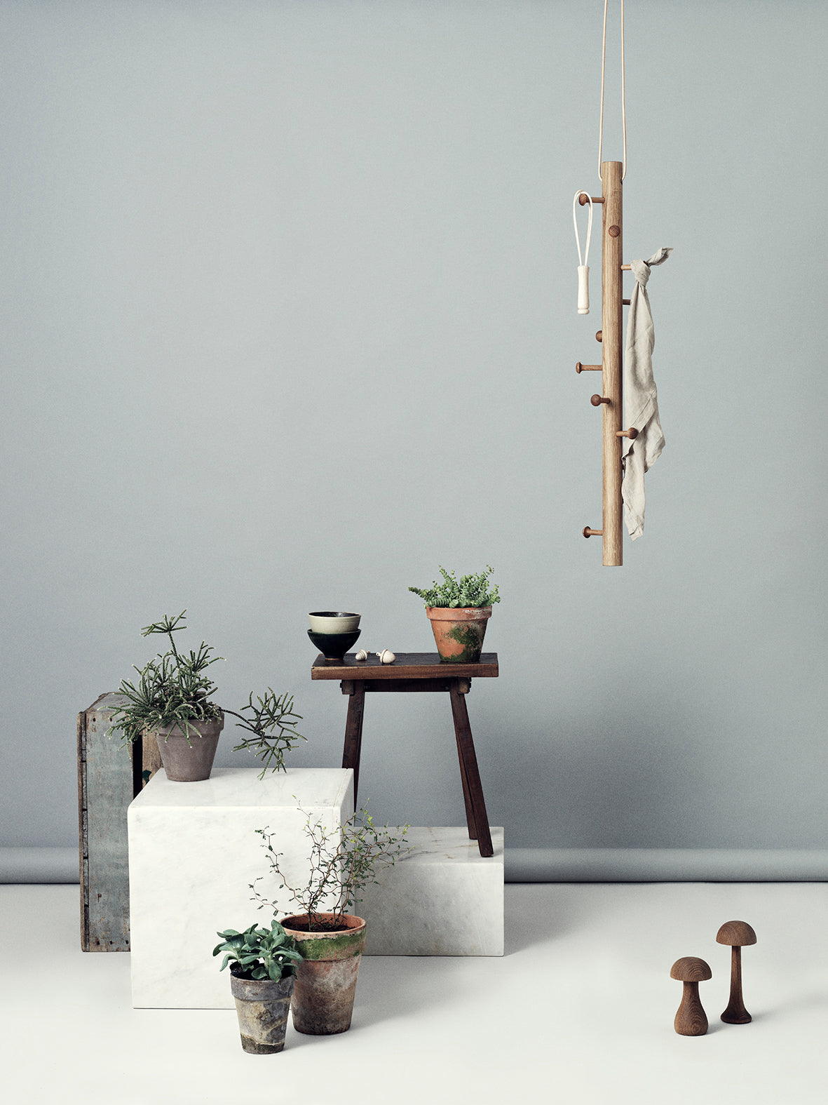 Copenhanger is a coat rack hanging from the ceiling, and it comes with 2 meters of natural tanned 5 mm leather cord. When you place jackets, scarfs etc. on the hanger it creates a perfect balance.