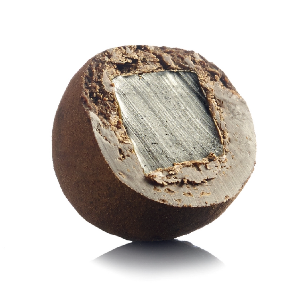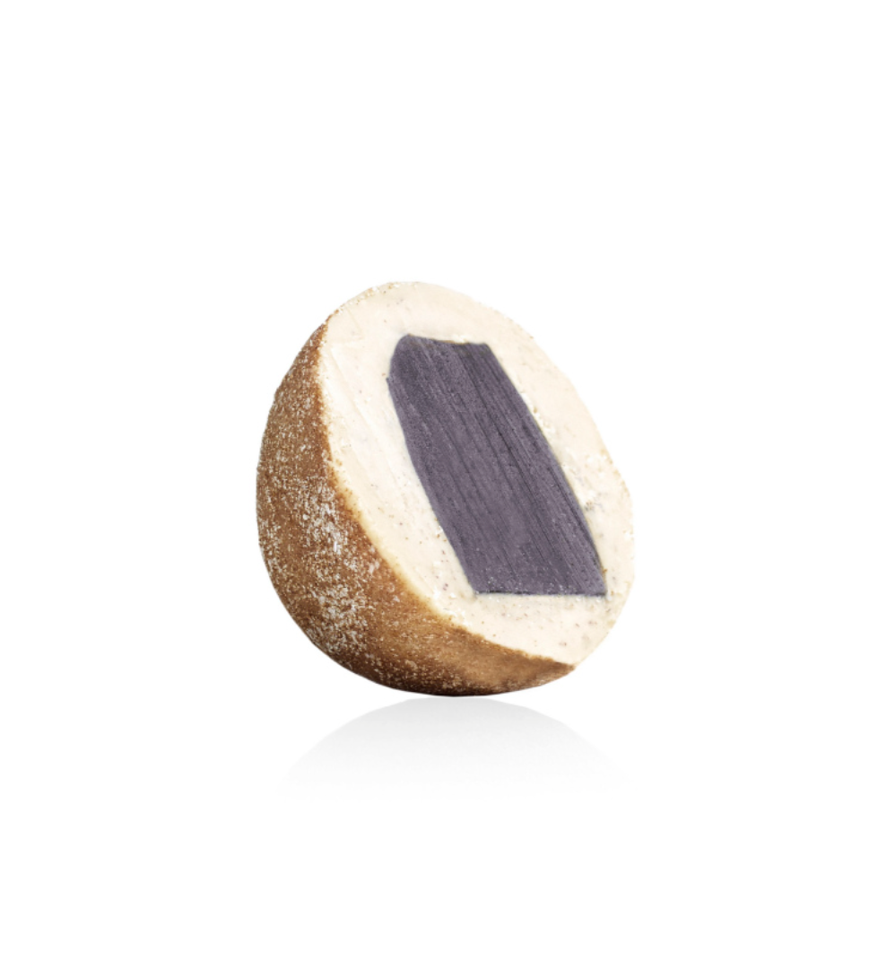 A daring pairing of white chocolate and a salty licorice core. As the creamy white chocolate melts in your mouth, small pockets of intriguing raw licorice powder are revealed, making it a perfectly balanced sweet-salty experience.