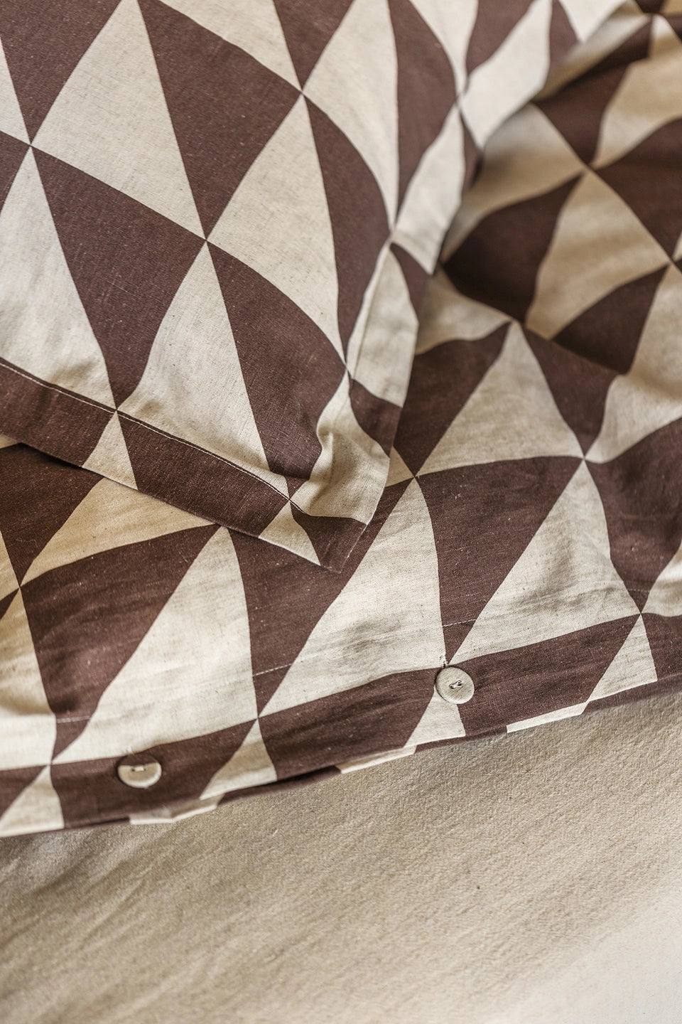 - Pillowcase with side opening and flap, bottom opening with fabric buttons on duvet cover