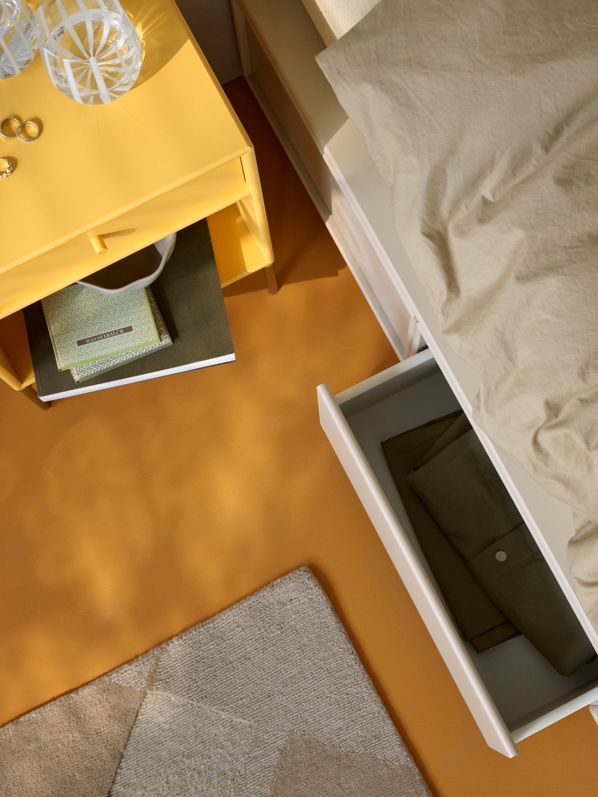 Do you need an elegant and functional nightstand? DREAM is the small bedside table standing by your side when you fall asleep and wake up. The nightstand consists of one drawer and one shelf which makes it ideal as a bedside table in the bedroom for books, a glass of water, glasses or the alarm clock.