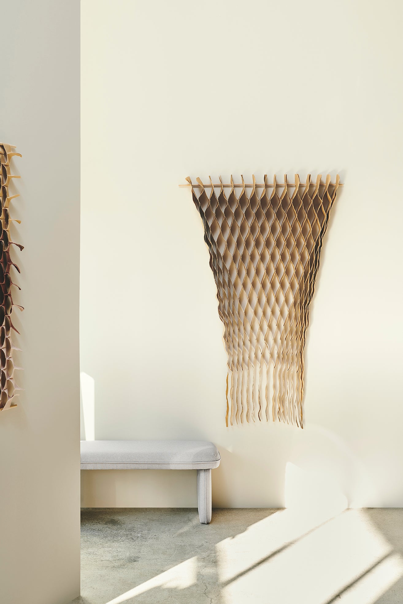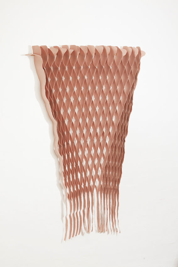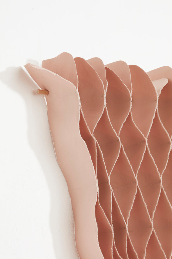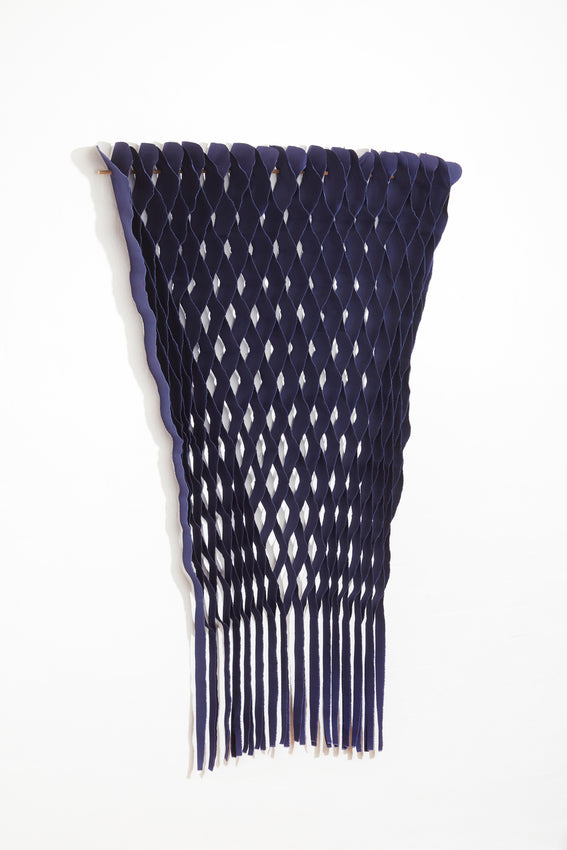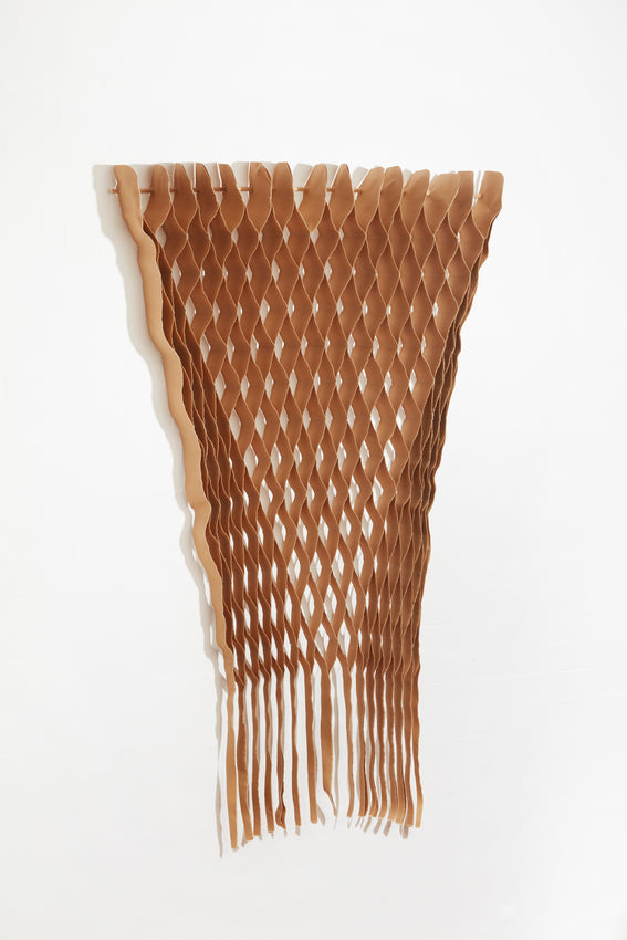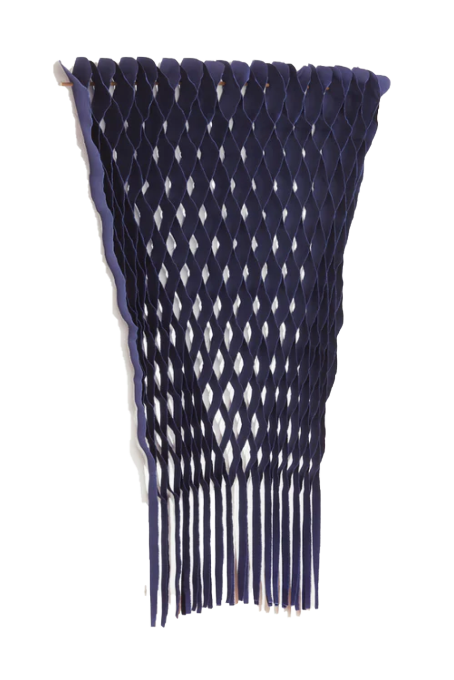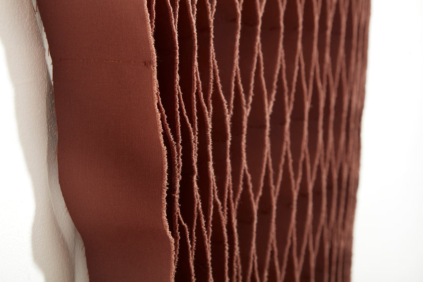 The FLOW Collection is a series of handmade textile art with roots in haute couture's flowing design techniques, combined with selected up-cycled textiles from the design industry. This gives the collection a sensuous 3D effect with added tactility and shadow play – depending on the angle from which you view the work.