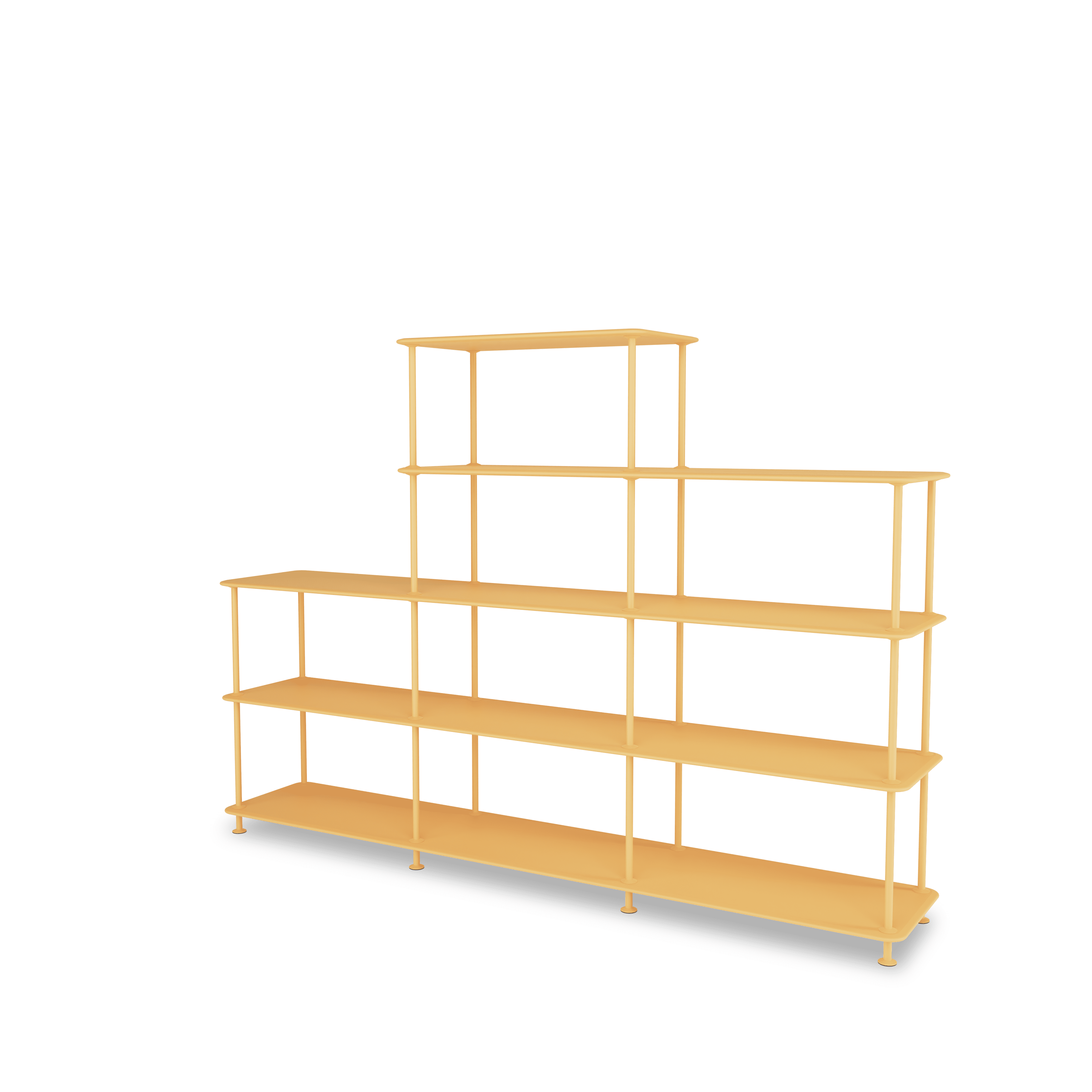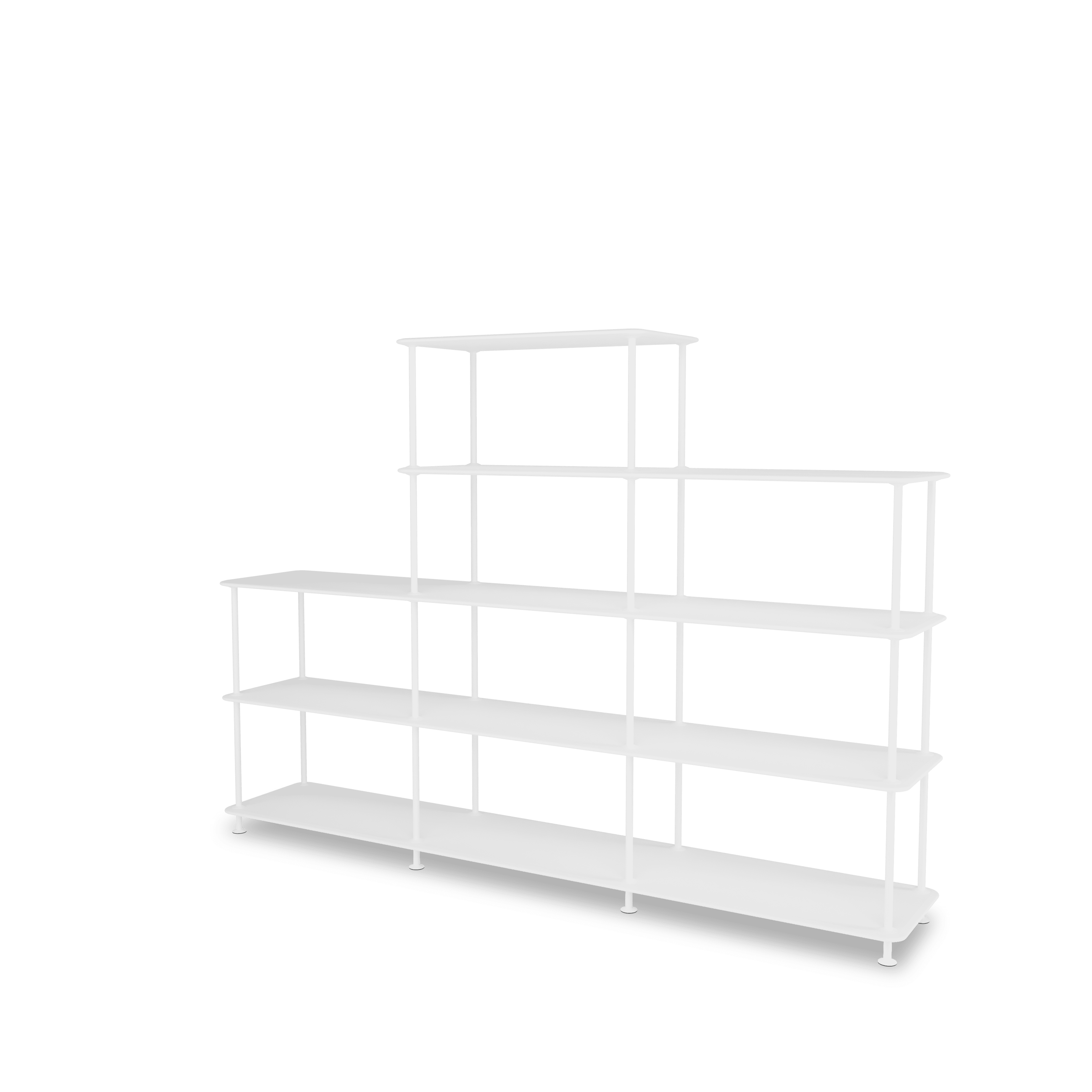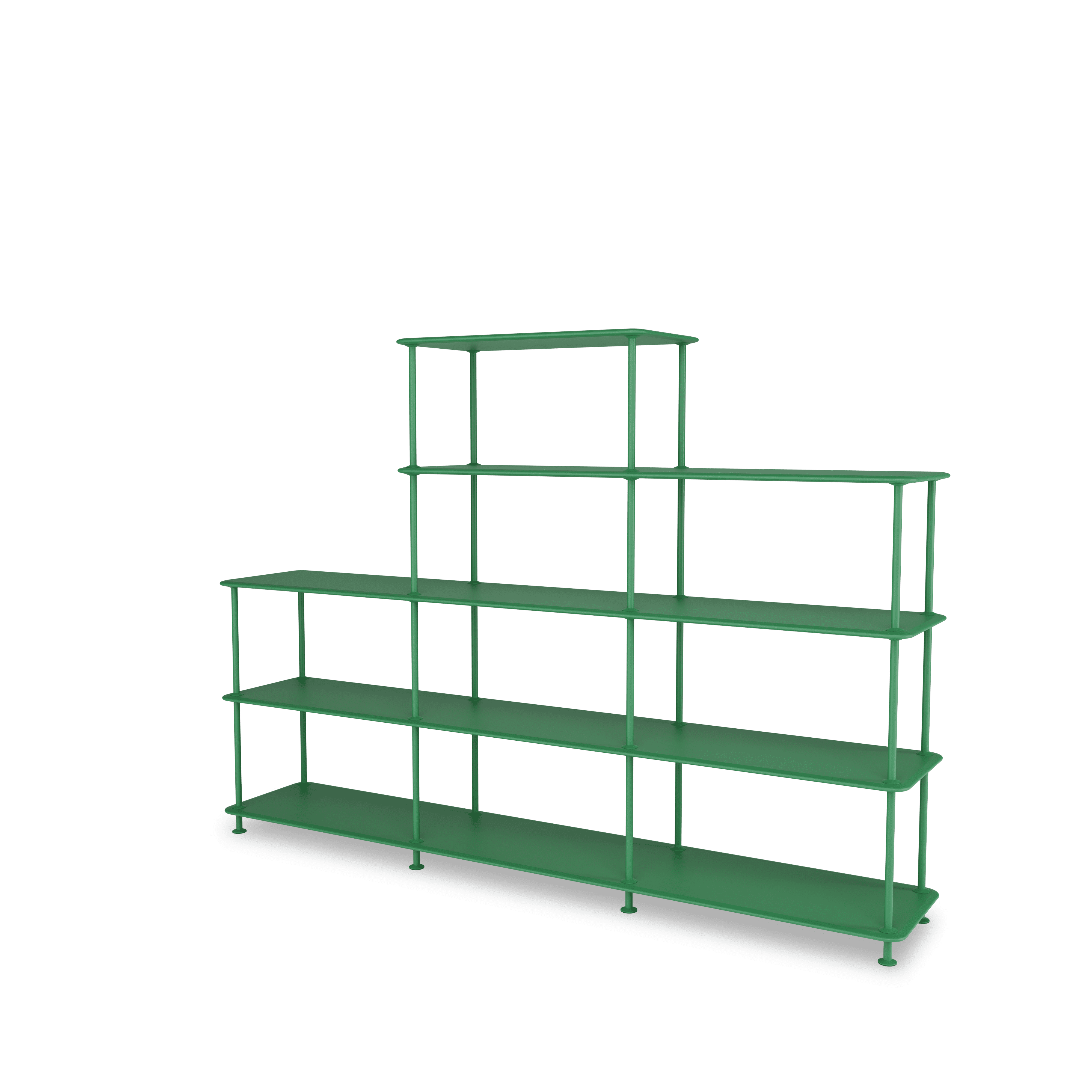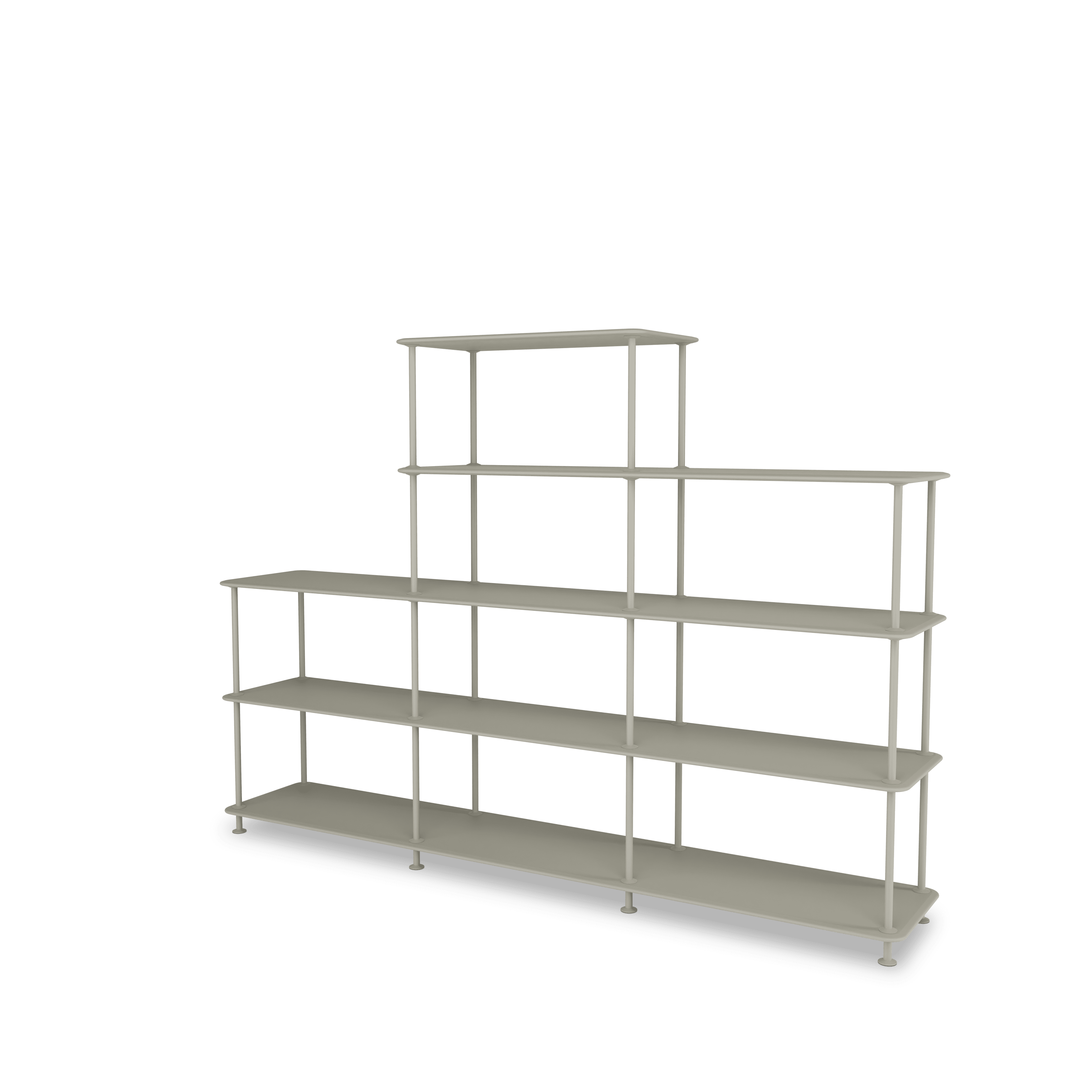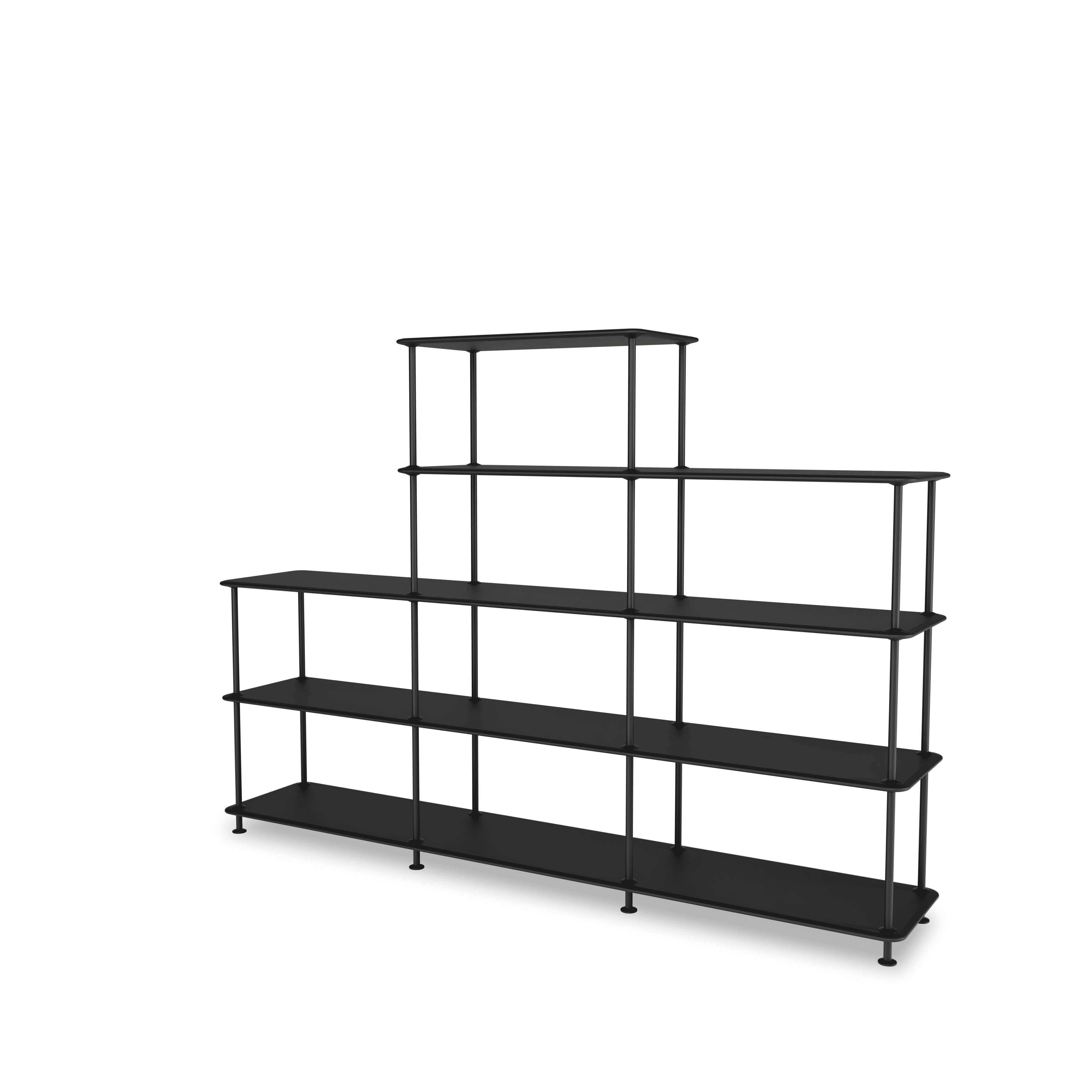 The Montana Free 342000 is a sophisticated display shelf featuring three sections of varying heights, bringing a modern edge to any office space. Perfect for showcasing products and other brand material, it fits seamlessly into both contemporary and traditional professional environments.