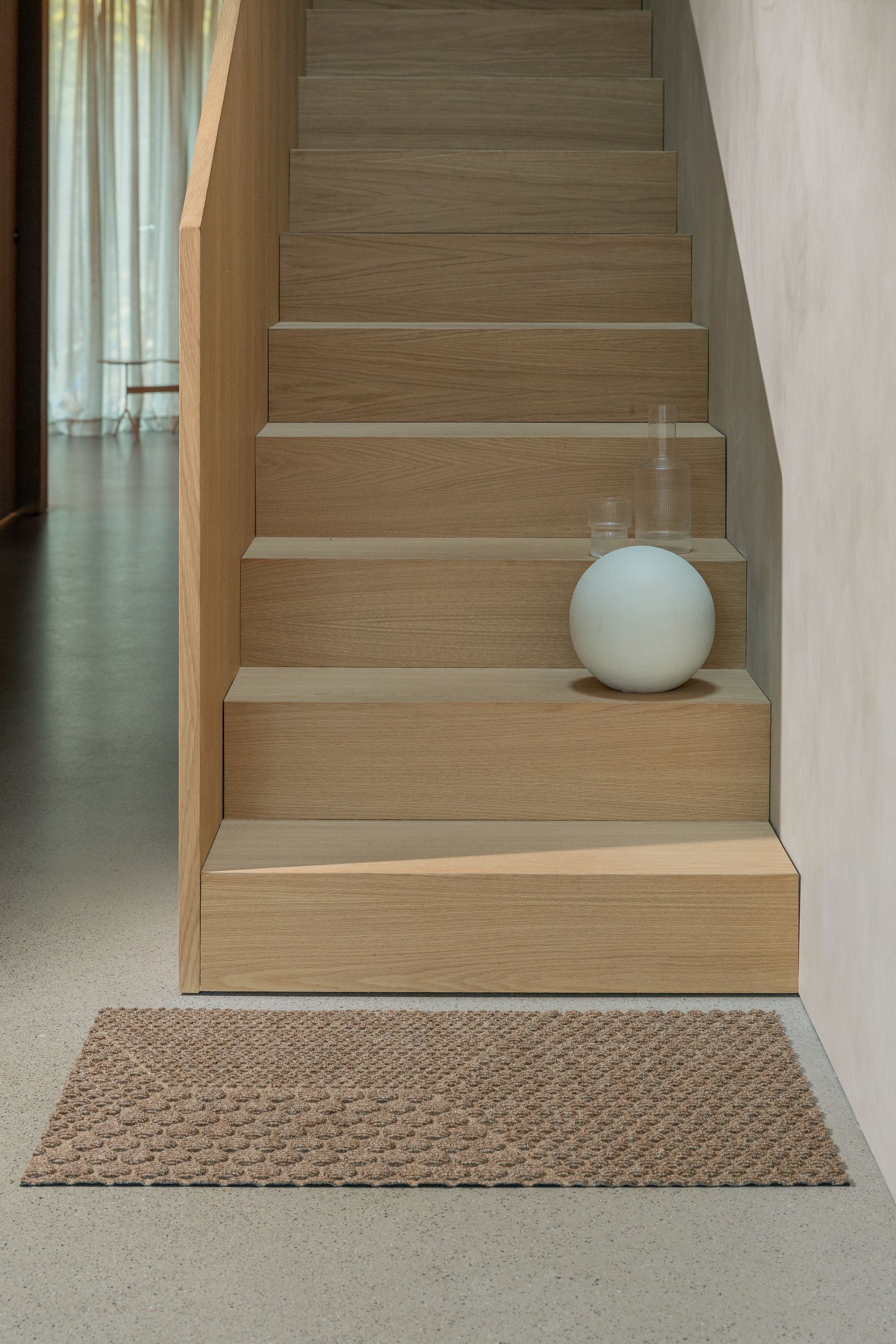 Shake or vacuum the mat regularly. Rinse or wash the mat at 40 ° C if necessary. Use a gentle detergent and spin the mat at low speed. We recommend laying the mat flat on the floor when drying.
