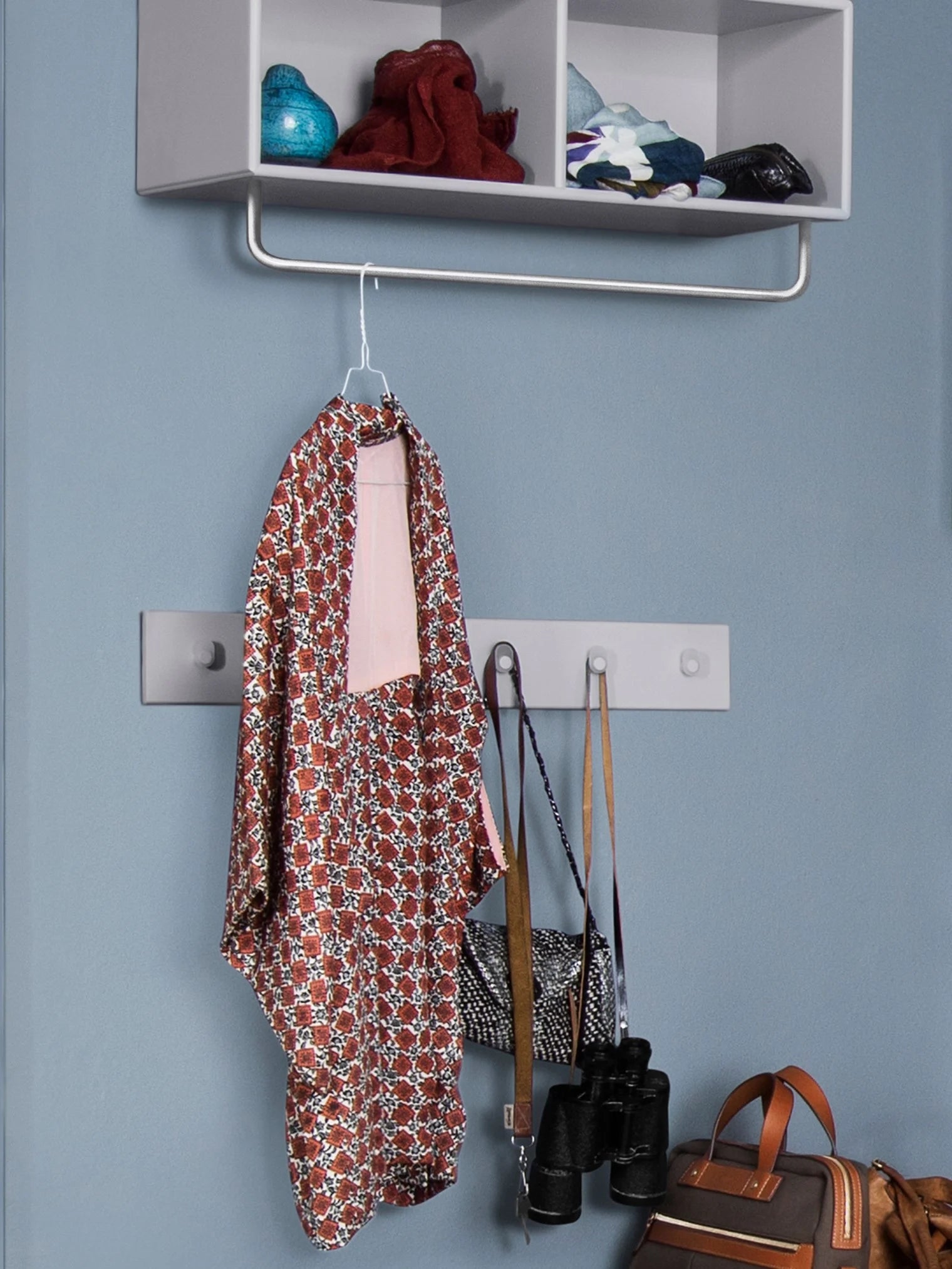 Montana Coat Racks are available in 41 curated lacquer colors. Combine the rack with a shoe bench for your home entrance.