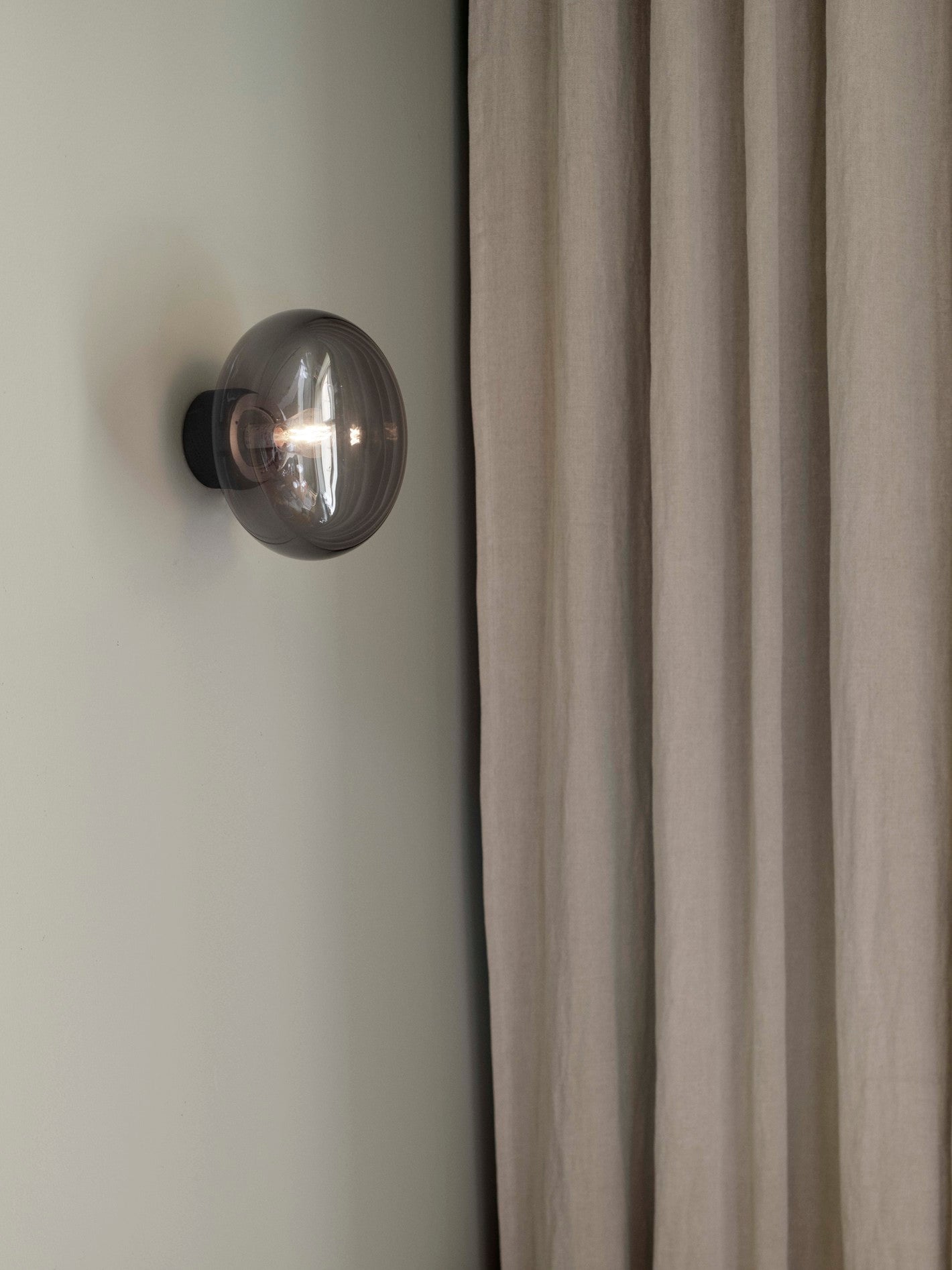 Inspired by autumn days spent hunting for mushrooms; it is only appropriate to extend the Karl-Johan series into the darkest parts of the home. A simple support in black stained or smoked oak allows the curved glass form to bounce a soft light around the room. The Karl-Johan Wall Lamp demands you to curl up with a book, spending those growing evenings beside a comforting illumination.