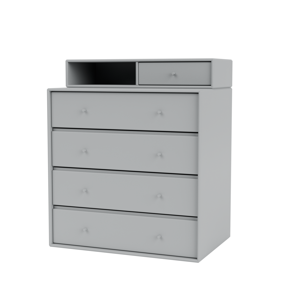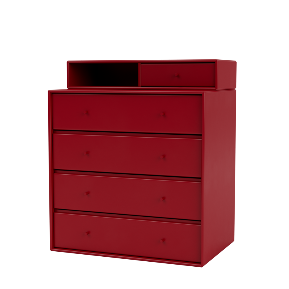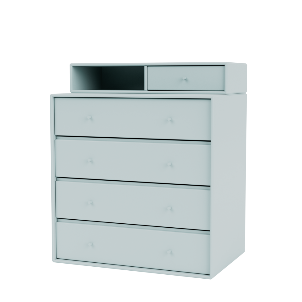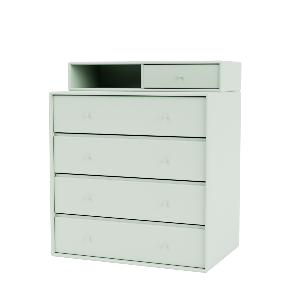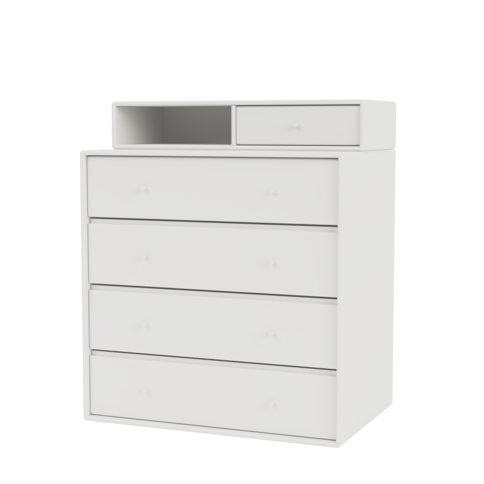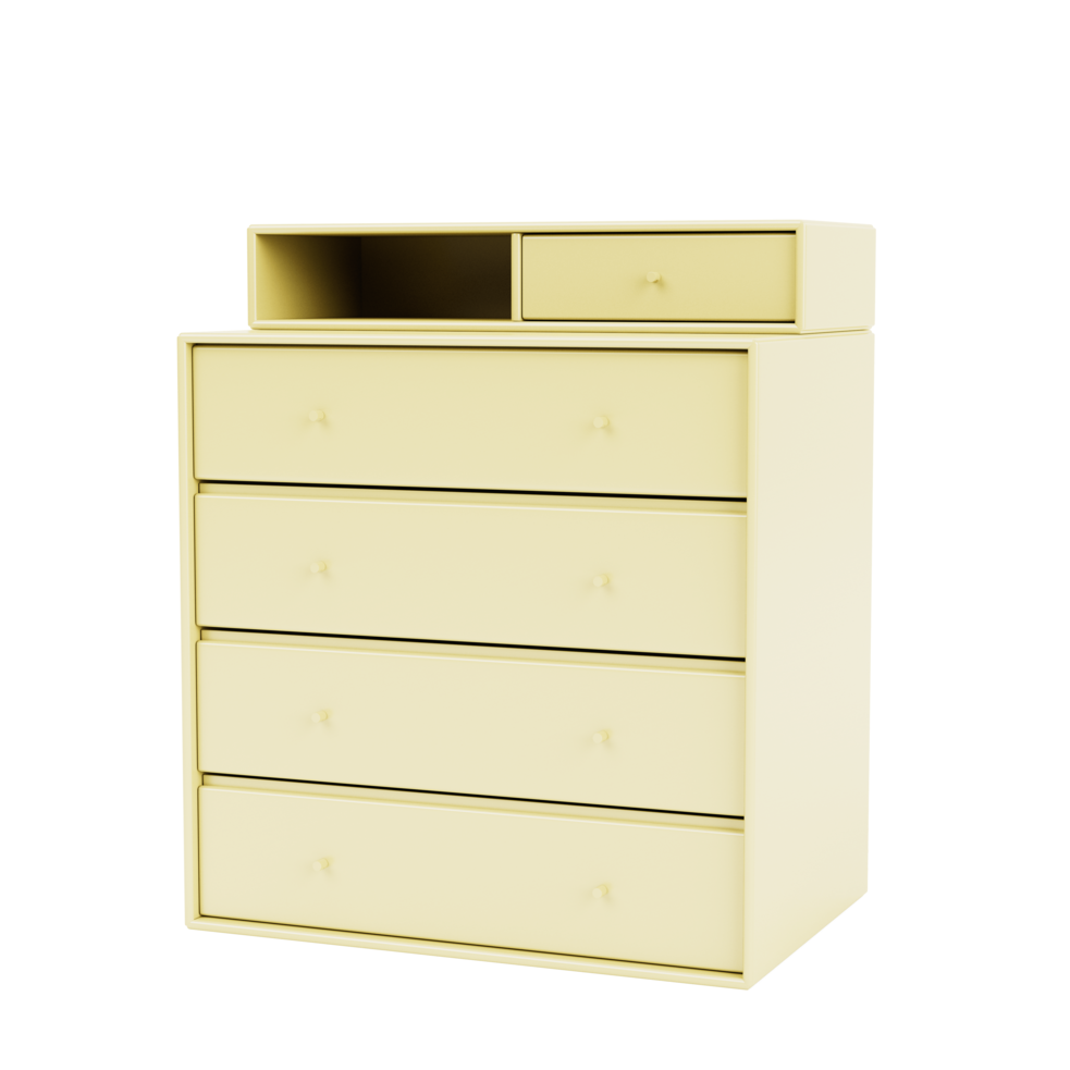 KEEP is composed by a module with four drawers and a smaller module containing one drawer and an open shelf. This chest of drawers is ideal to keep everything in order in the bedroom, living room or in the hall. If you eventually desire a new look just move away the top module and use it separately.