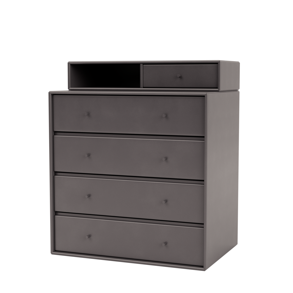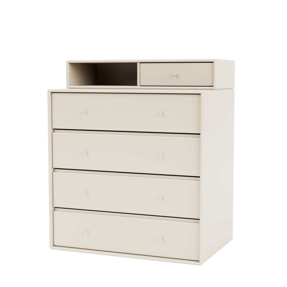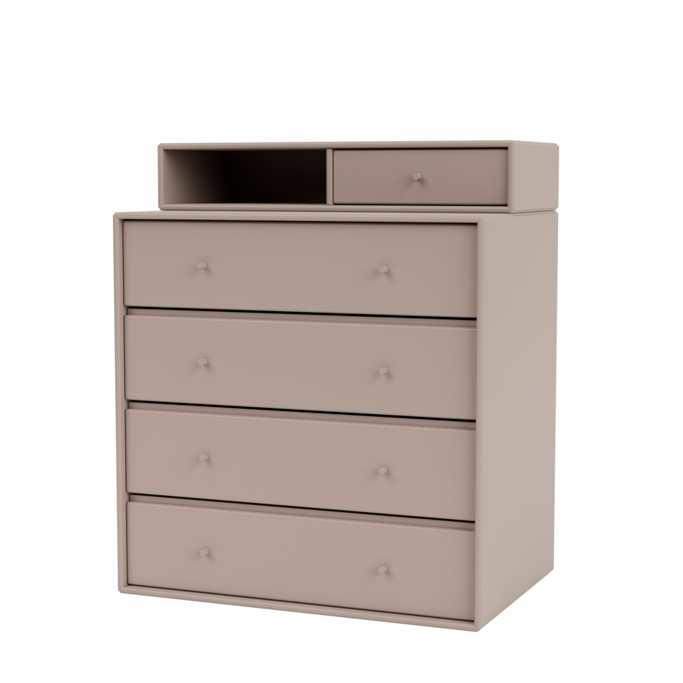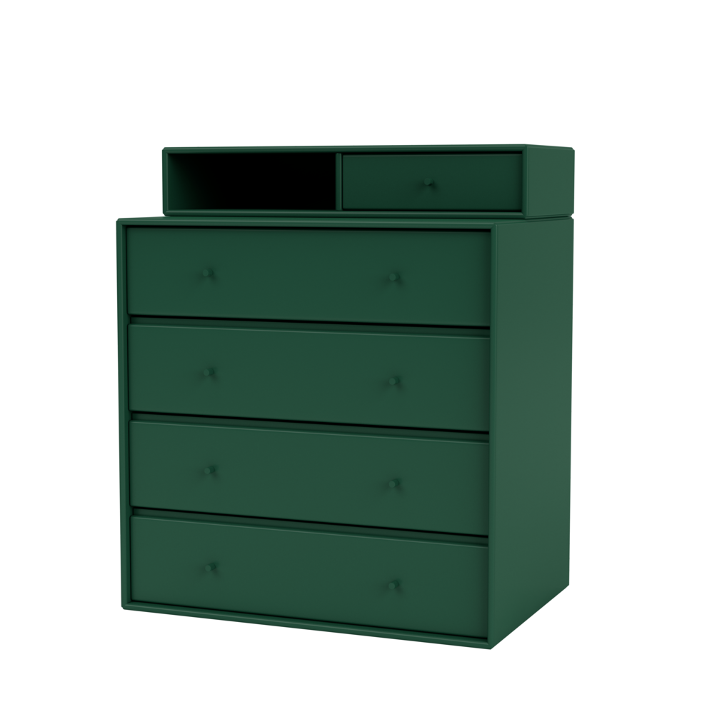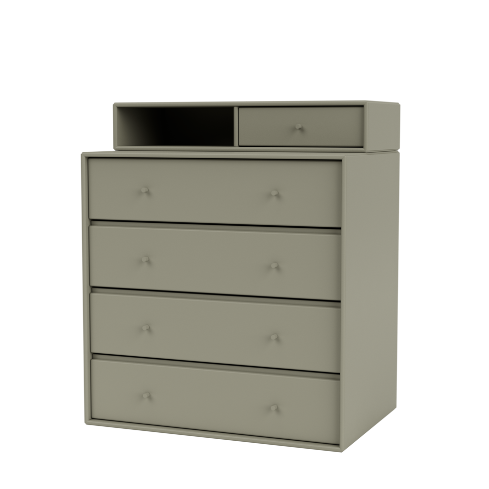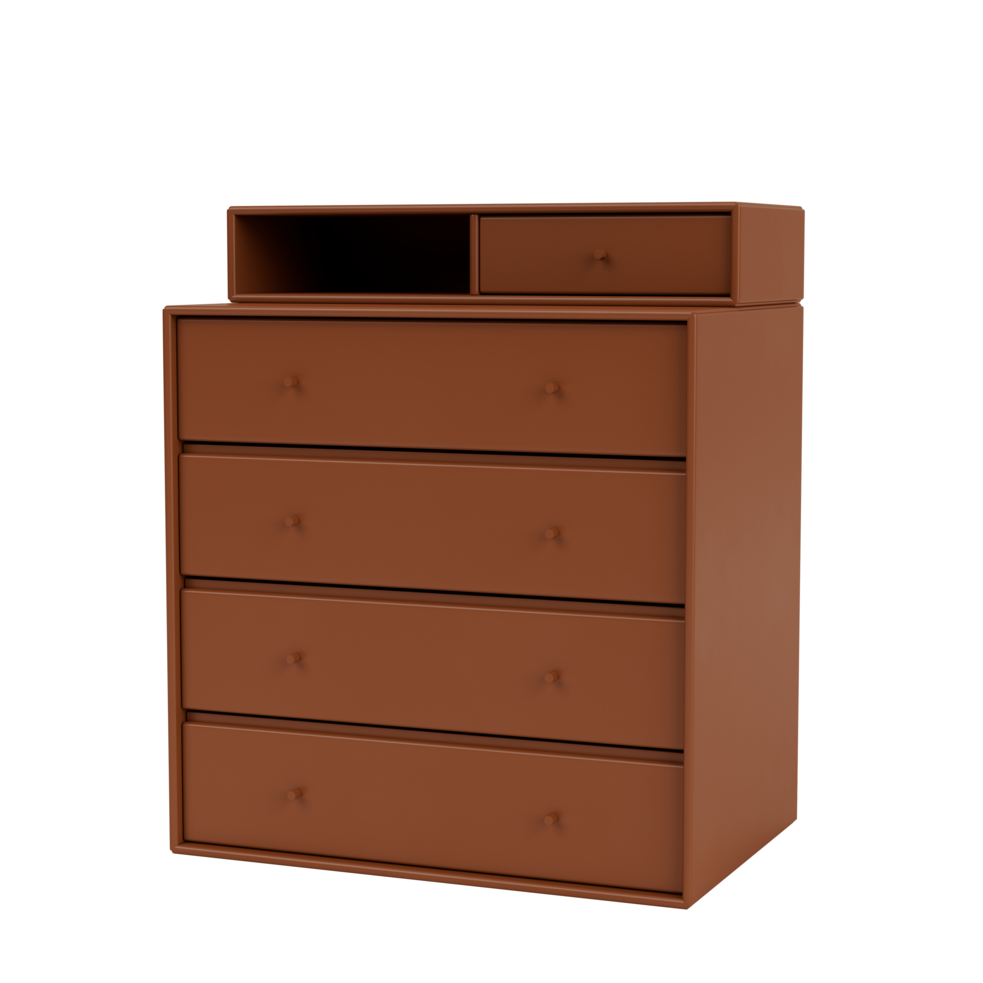 KEEP is composed by a module with four drawers and a smaller module containing one drawer and an open shelf. This chest of drawers is ideal to keep everything in order in the bedroom, living room or in the hall. If you eventually desire a new look just move away the top module and use it separately.