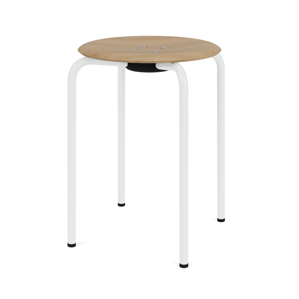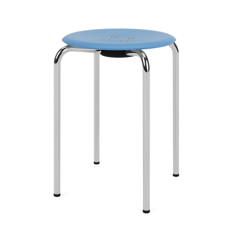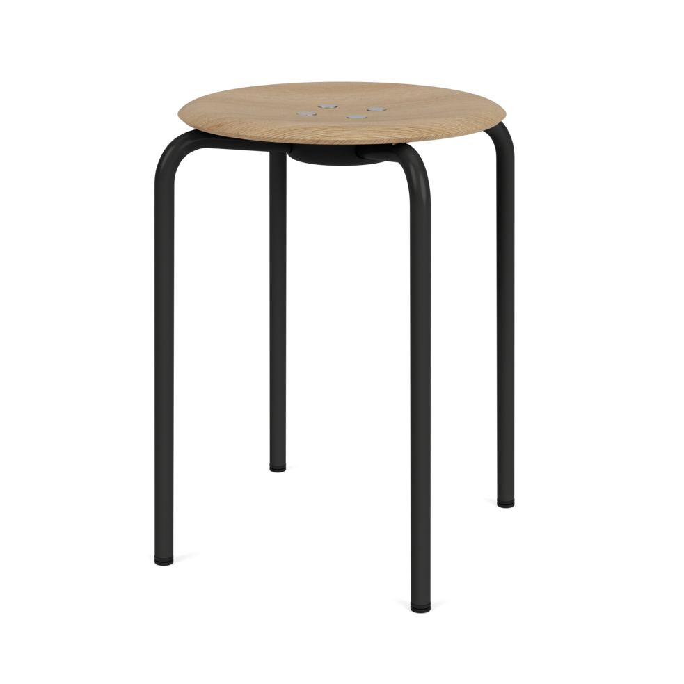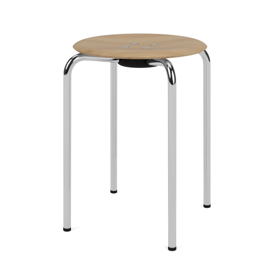 The shell stool is available with seat in Nature Oak and lazure in eight Montana colors – Pine, Azure, Hokkaido, Rhubarb, Shadow, Black, Oyster and Snow. The tubular frame is available in either chrome or powder-coated in the same eight Montana colors as the shell chair.