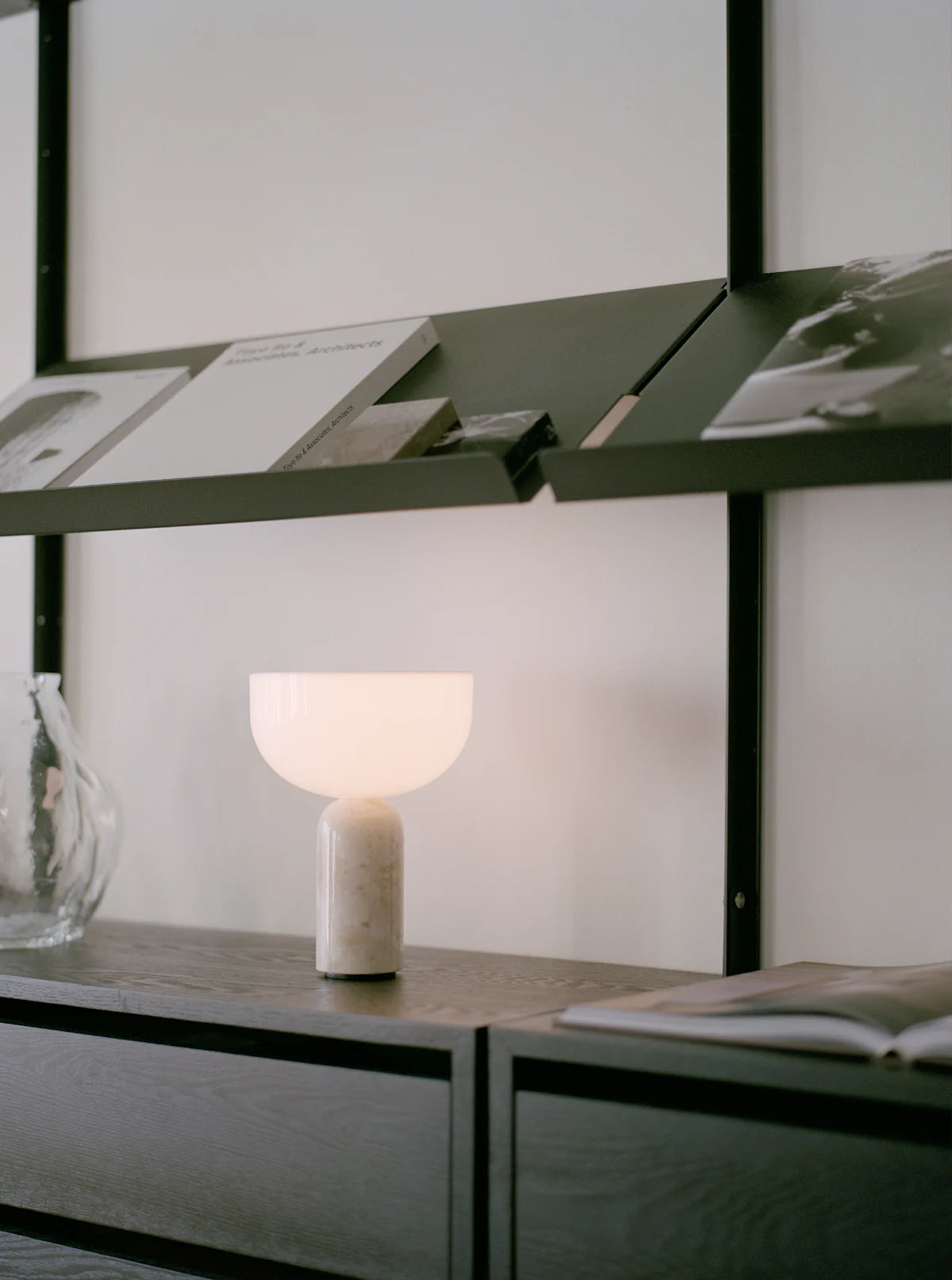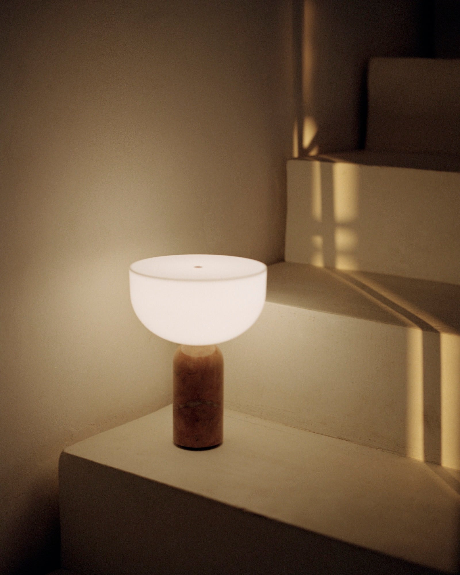 Balancing bold forms, the Kizu Table Lamp intrigues the eye with its sculptural composition, and this portable version of the lamp is no exception. Materials and expression are as we know them, but this cordless, smaller size is easy to move around where light is needed. With marble as the bearing element, the lamp obtains natural stability, and the polished stone feels comfortable to the touch.