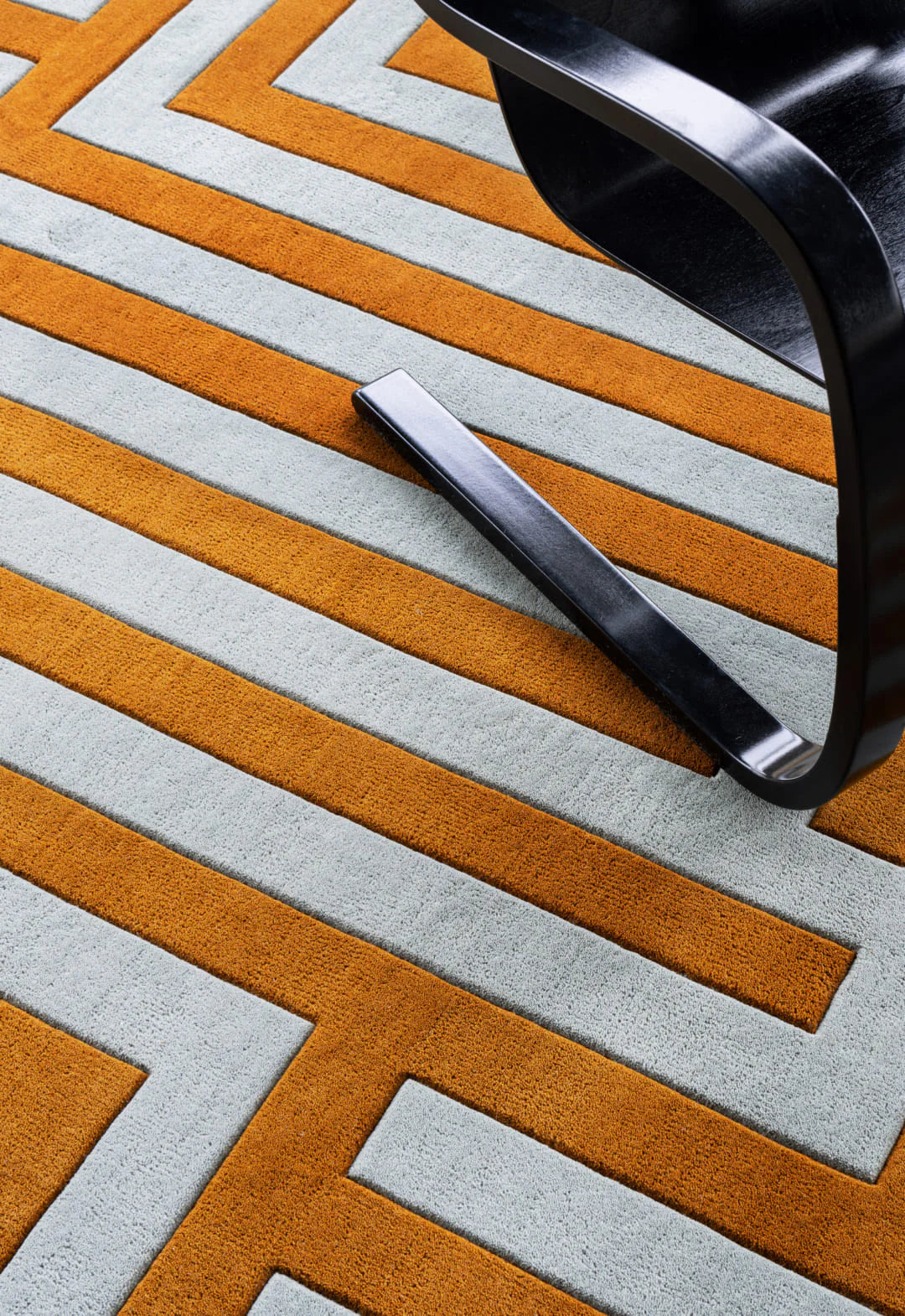 First introduced in 2016, the Letters rug has been updated with a new selection of colors—including teal, ochre, rust red, beige, and yellow. These carefully selected tones ensure the rug integrates seamlessly with various interiors and materials. The labyrinthine design of the Letters rug creates a graphic effect, making it a striking centerpiece in any room. Hand-tufted in premium wool, the rug combines luxurious texture with durability, and its new colorways offer a modern take on a classic design.