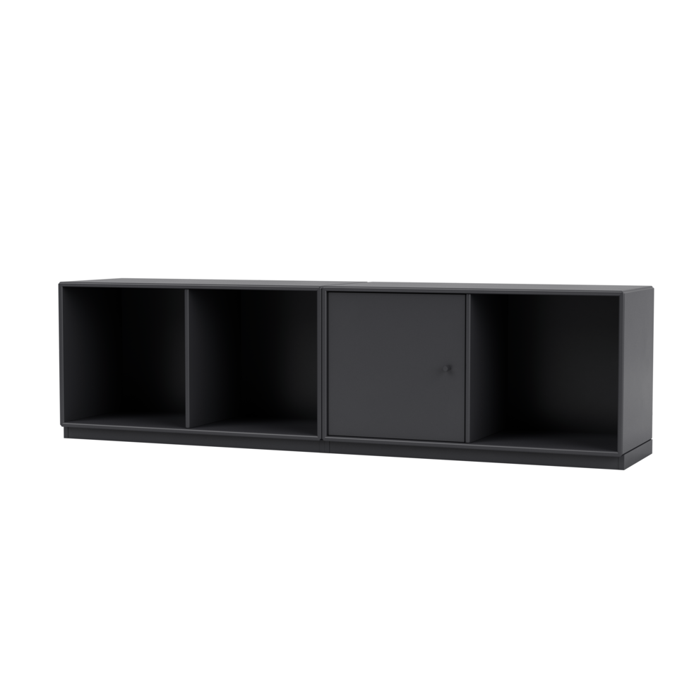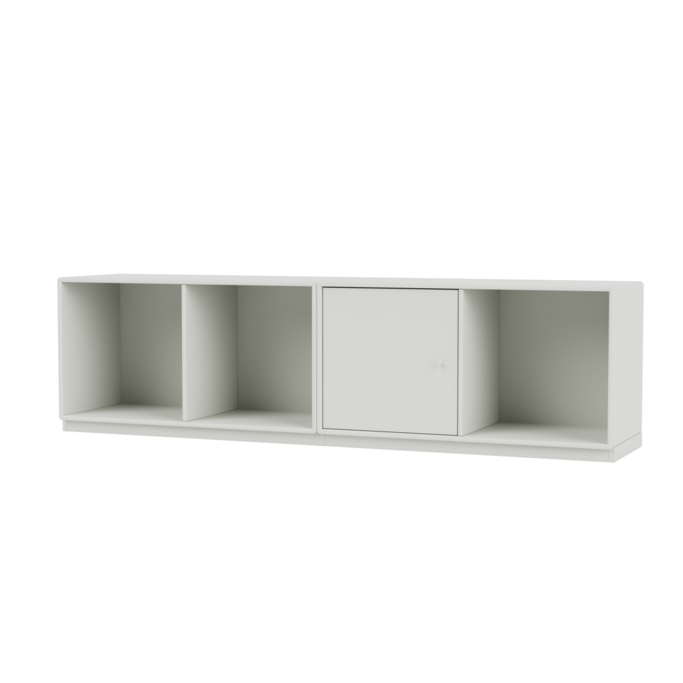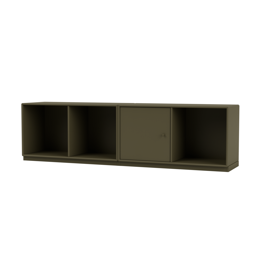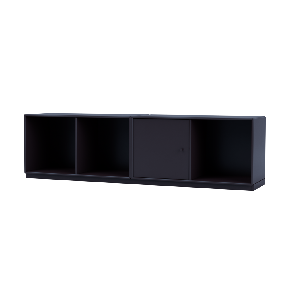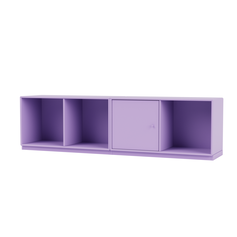 The storage solution consists of three open shelves and one cabinet without interior shelves. This cabinet is available with suspension rails or a plinth. Choose between the 41 lacquer colors from Montana.