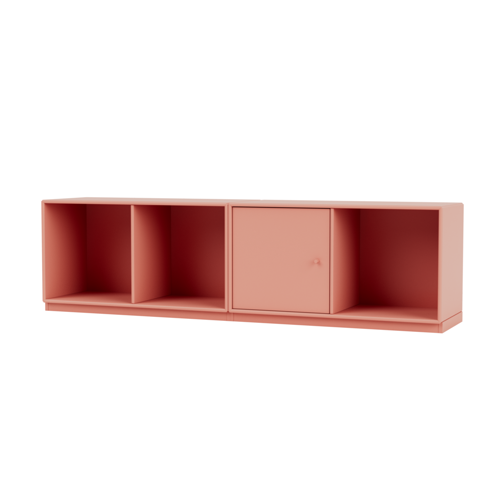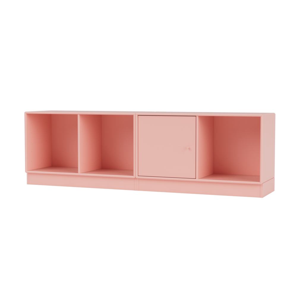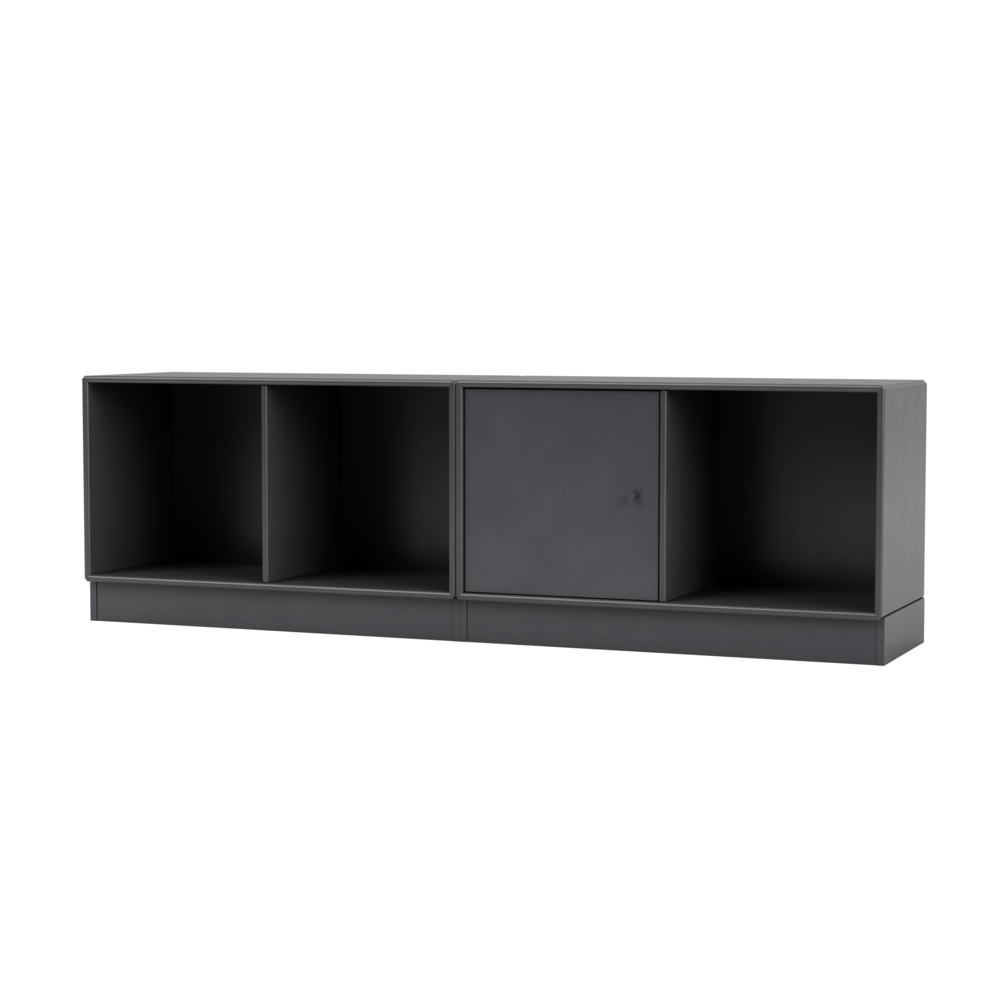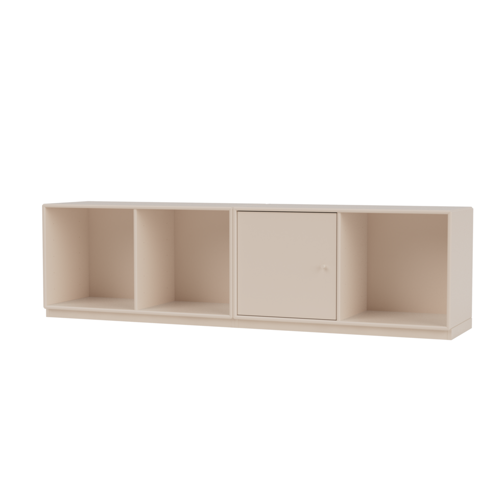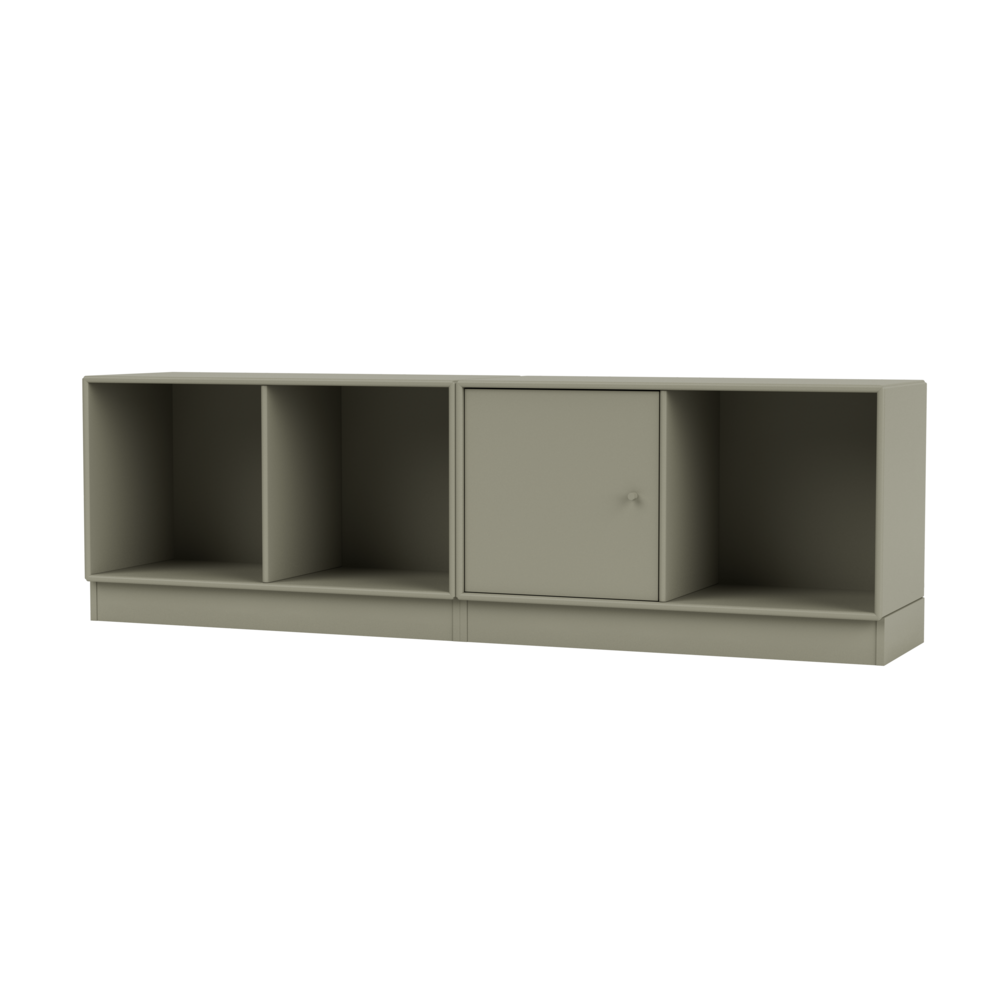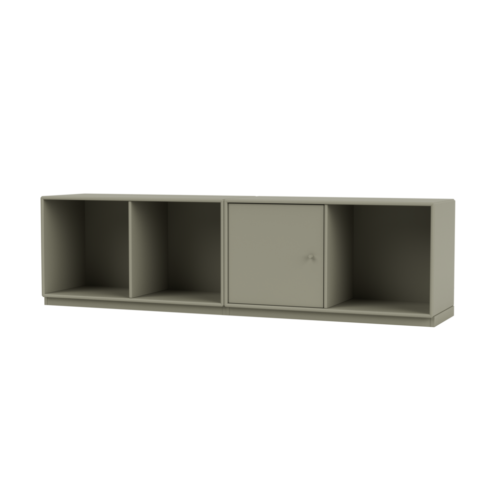 The storage solution consists of three open shelves and one cabinet without interior shelves. This cabinet is available with suspension rails or a plinth. Choose between the 41 lacquer colors from Montana.