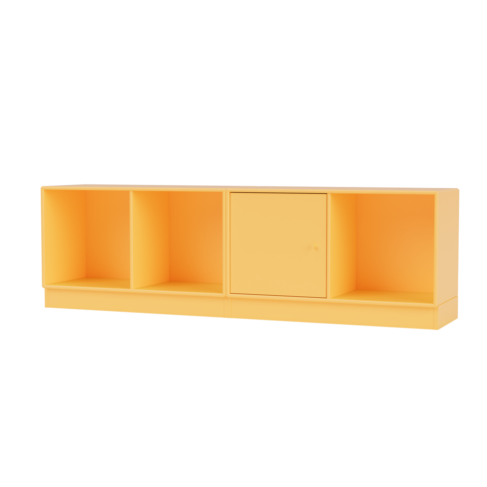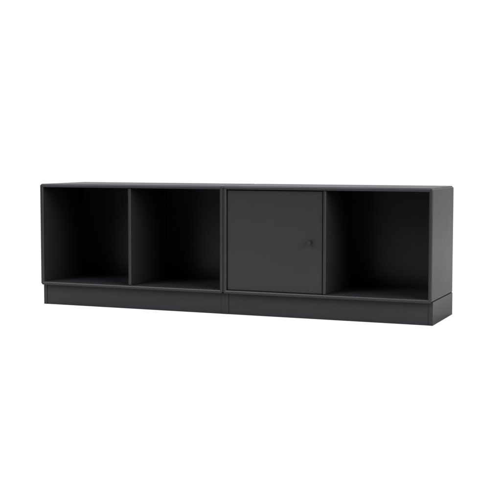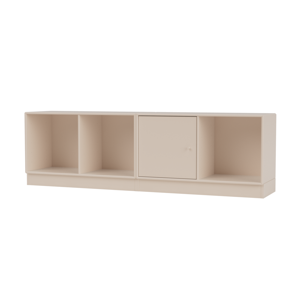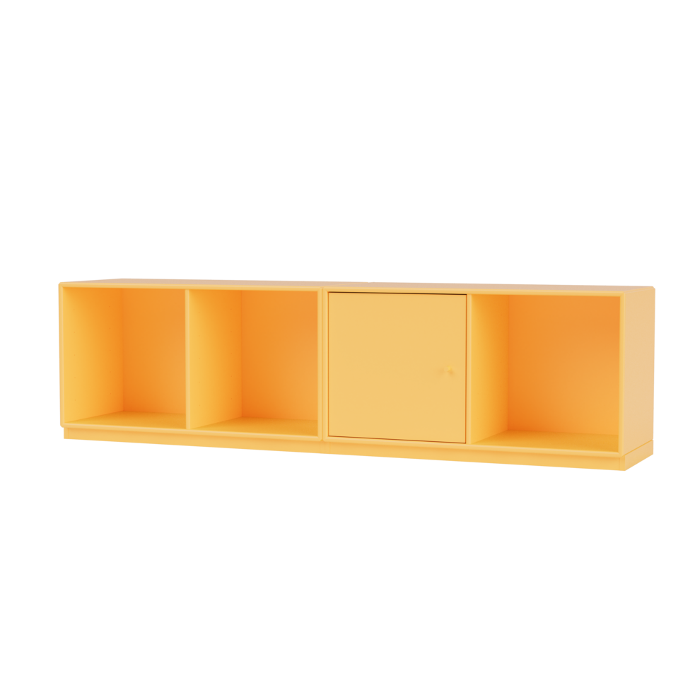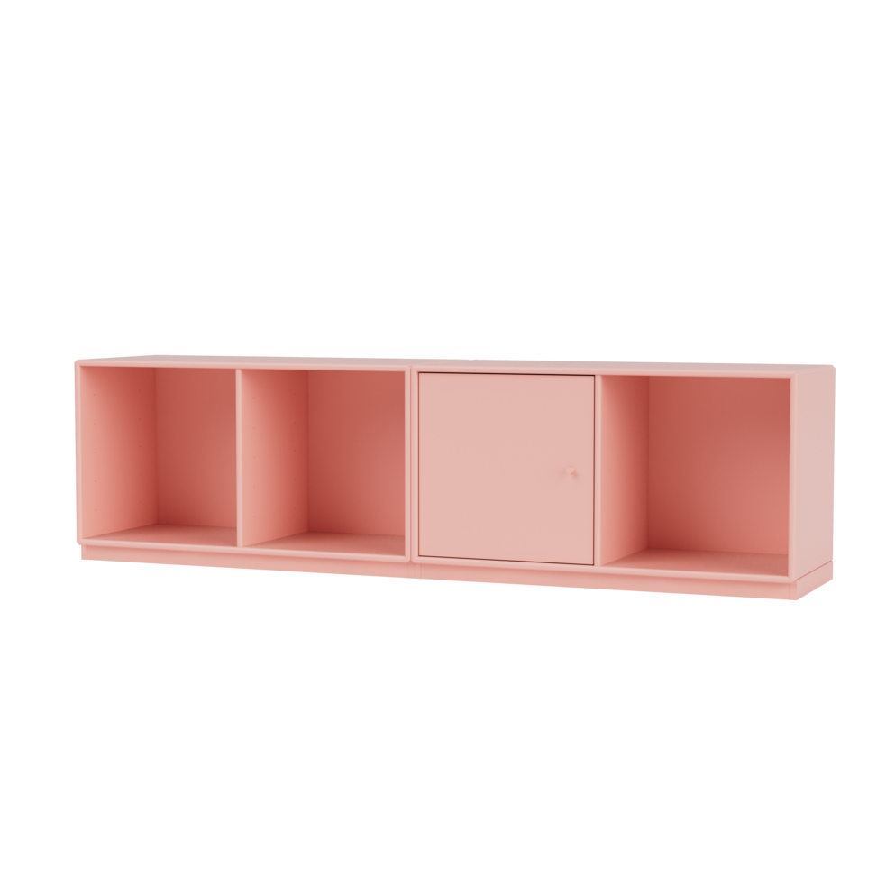 The storage solution consists of three open shelves and one cabinet without interior shelves. This cabinet is available with suspension rails or a plinth. Choose between the 41 lacquer colors from Montana.