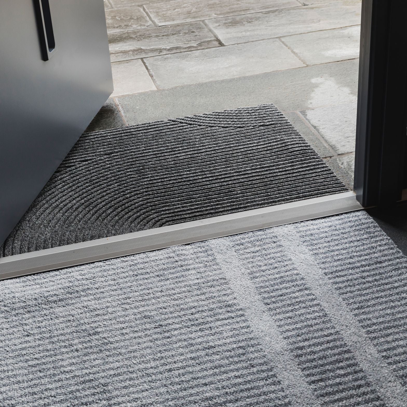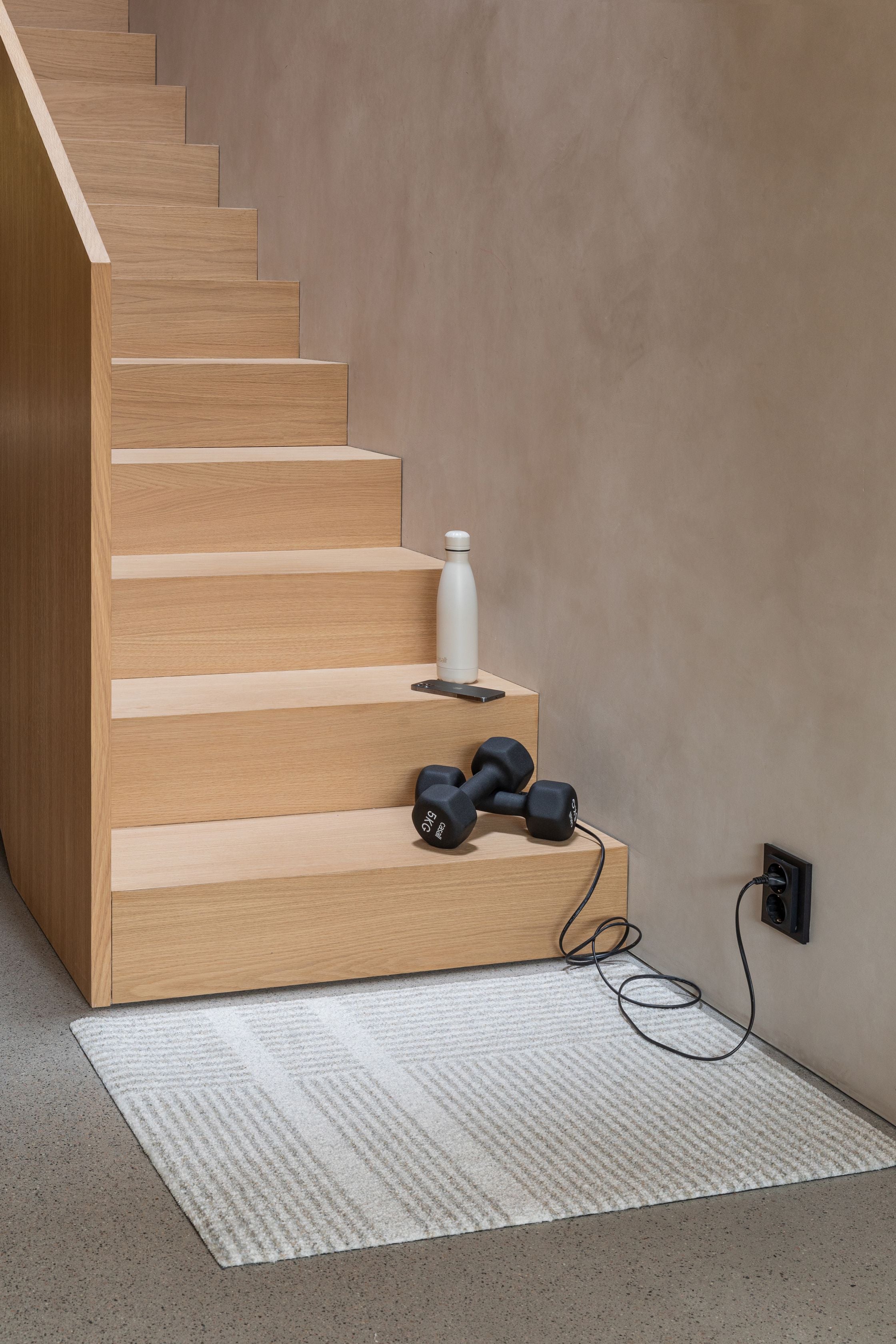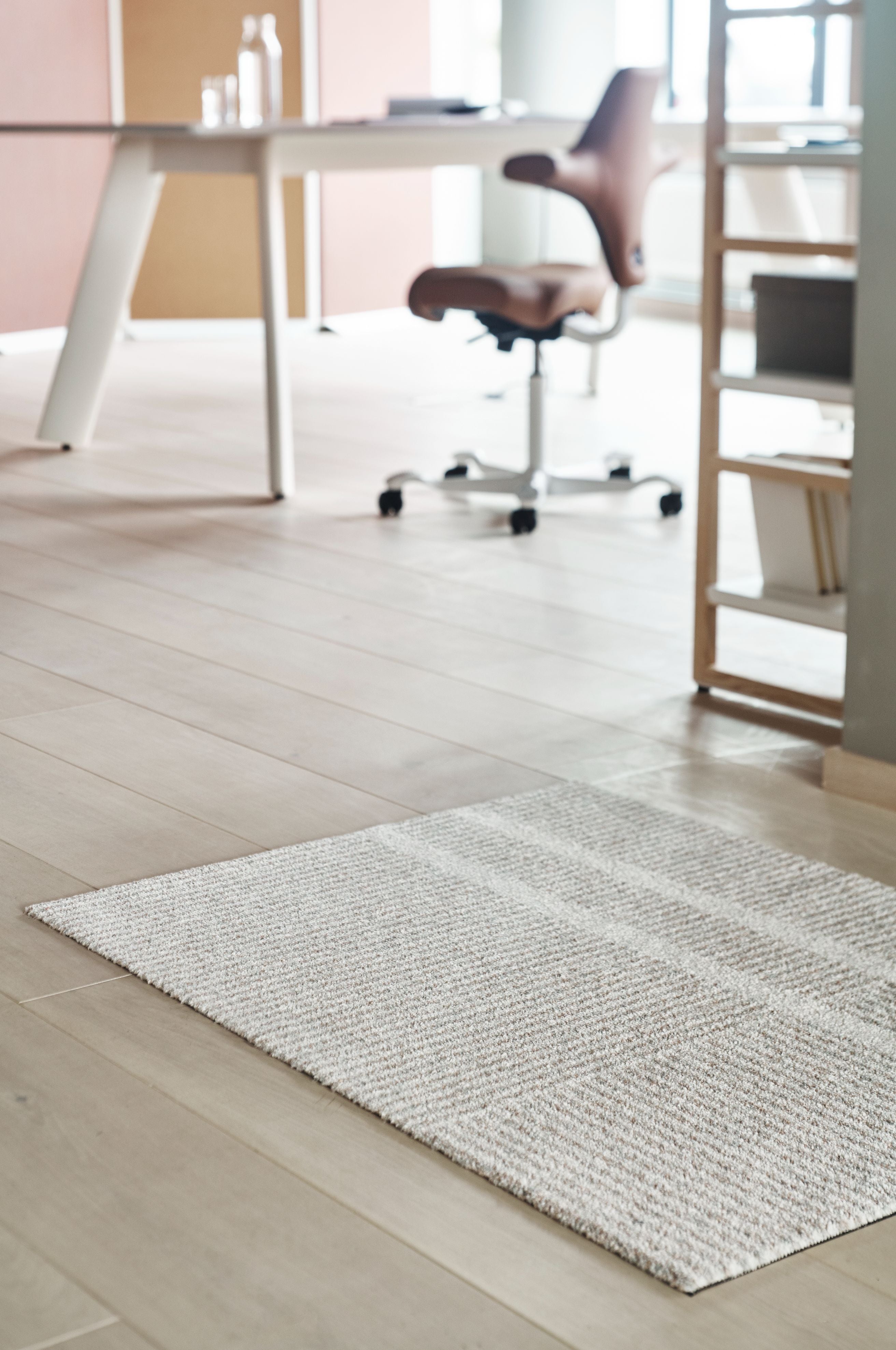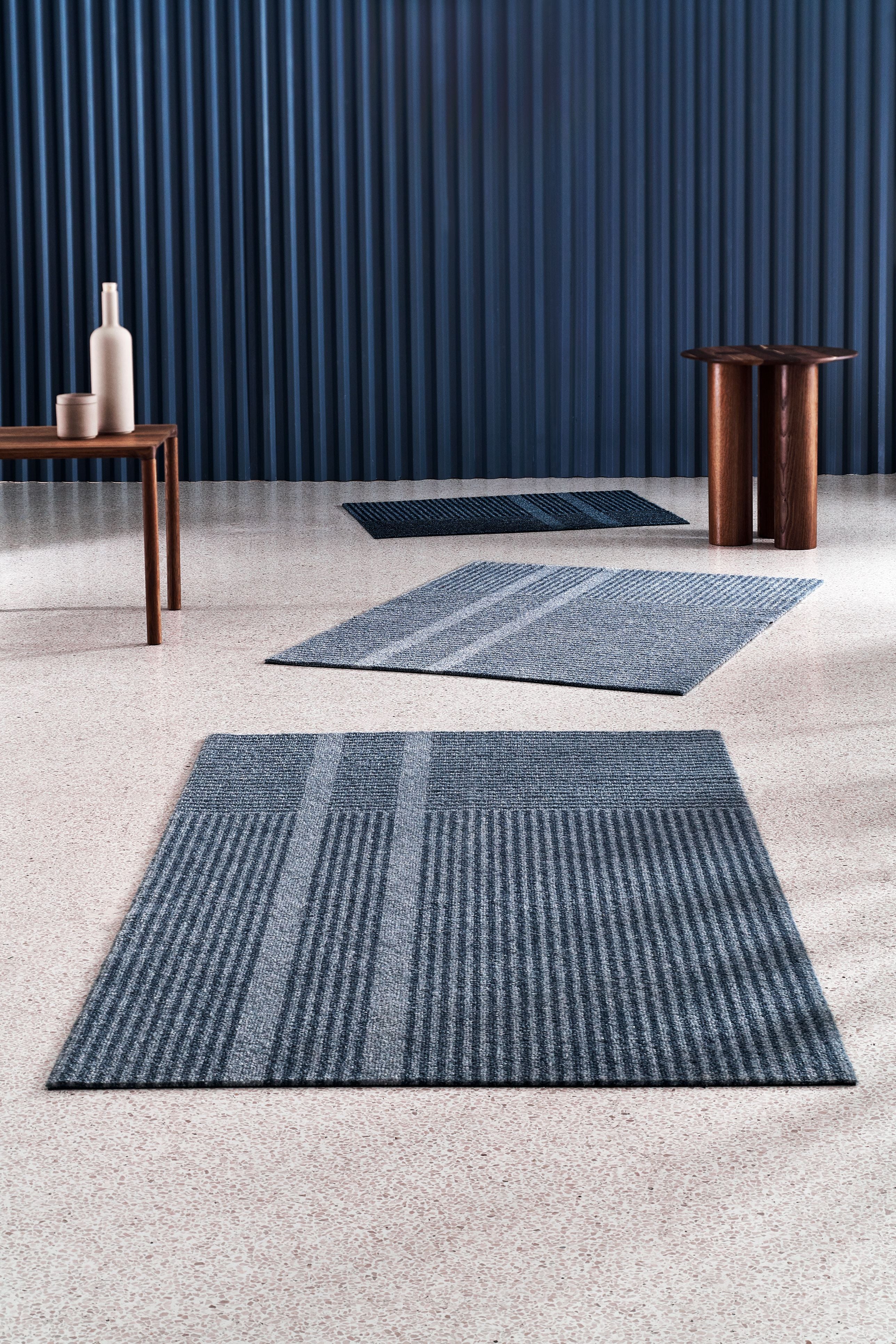 Løype is inspired by the fresh trails of cross-country skiing. A ski track crosses the mat in a simple, graphic pattern, creating a beautiful dialogue between light and shadow. The result is both classic and modern, with melange hues efficiently hiding grit and grime. A solid everyday object!