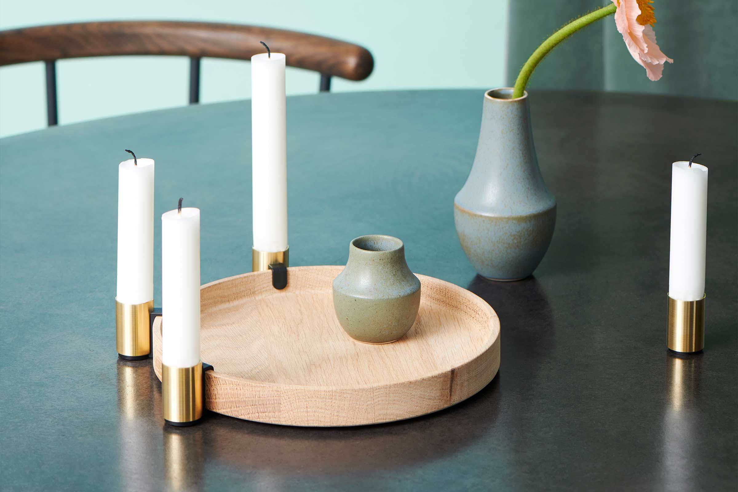 LUNA can be used as an everyday candleholder on the dining table with nuts or fruit, or it can be decorated for the holiday seasons. The small candleholders are movable, or can even be removed.