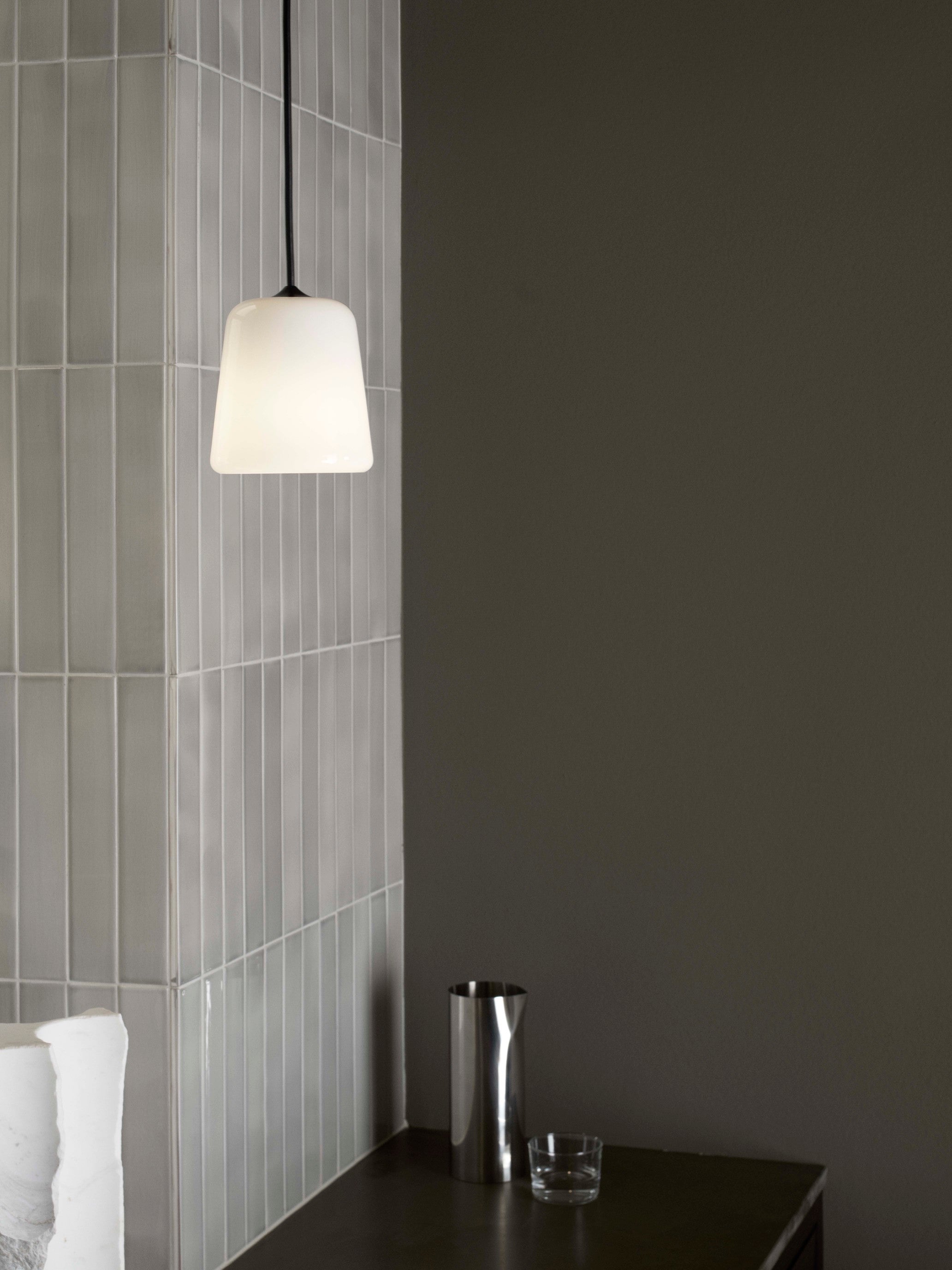 The Material Pendant highlights the power of simplicity in form. Through this simplicity, it can become a standout piece within a room, or be used to complement those around it. From the warmth of oak and cork, to the roughness of concrete and marble, the richness of terracotta, and the radiance of yellow steel, the Material Pendant offers a versatile addition to any space.