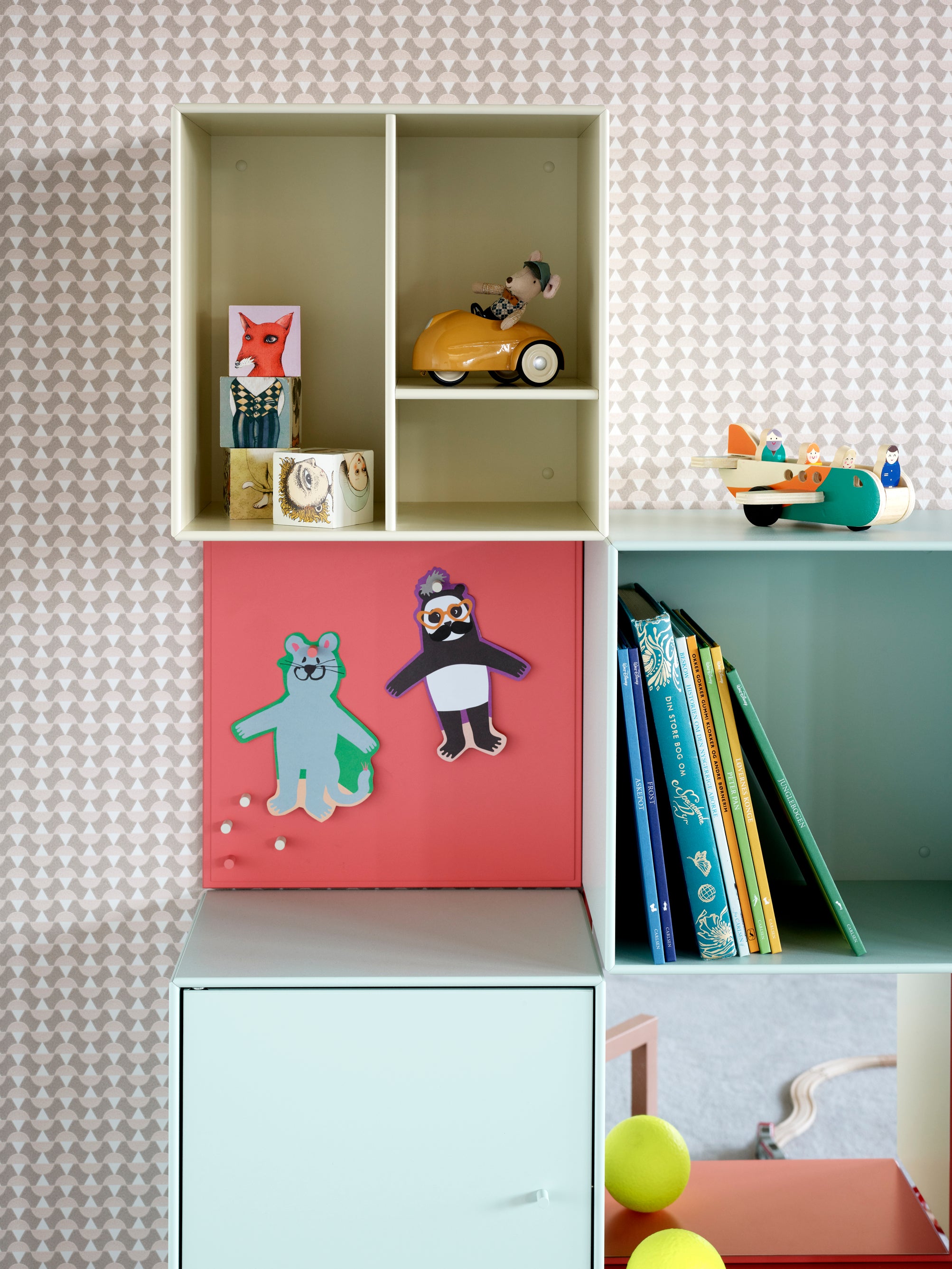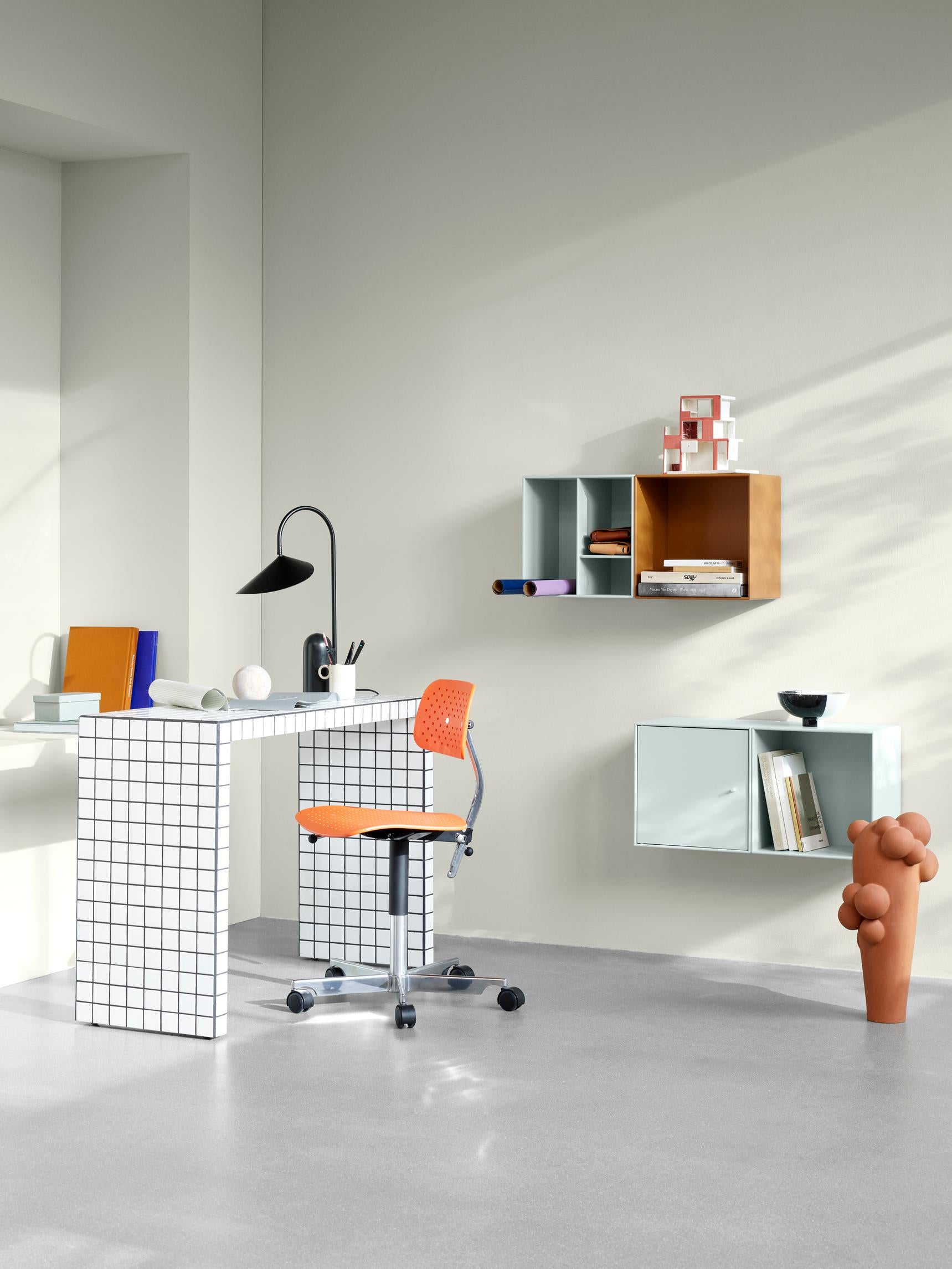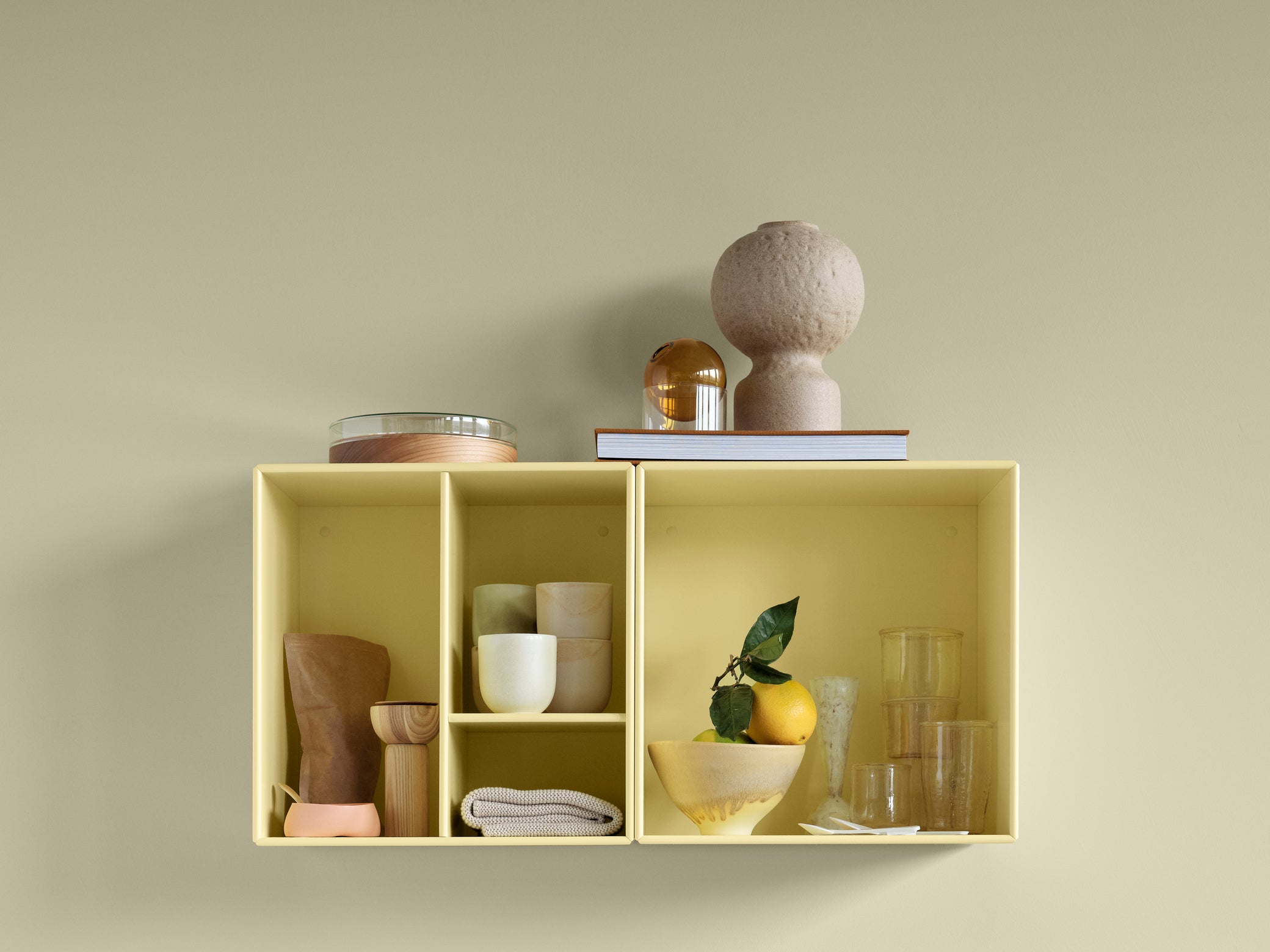 Montana Mini is a series of uncomplicated, versatile storage modules. The series is available in many variants with shelves, drawers and accessories: Mirrors, top panels, notice board and a plinth – all in 10 matching colors. Montana Mini is only 0.3 inches thick and appears slimmer than the original Montana 0.4 inches system. The series is certified with the EU Ecolabel.