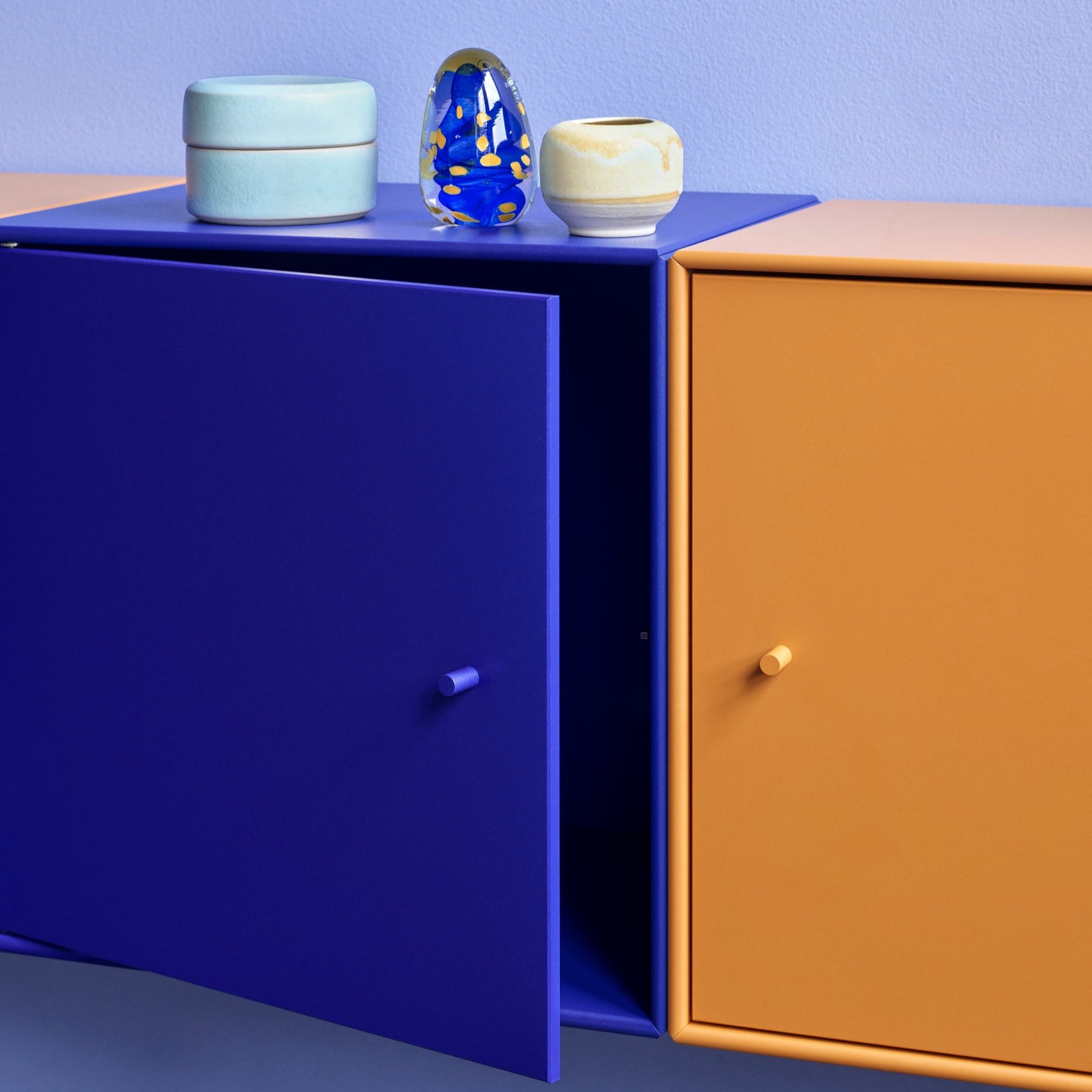 The Montana Mini with door is the perfect storage module. The door is on this version right-hinged. Montana Mini is available in 10 matching lacquer colors. With the flexible mounting it is possible to flip the module so that the door becomes left-hinged.
