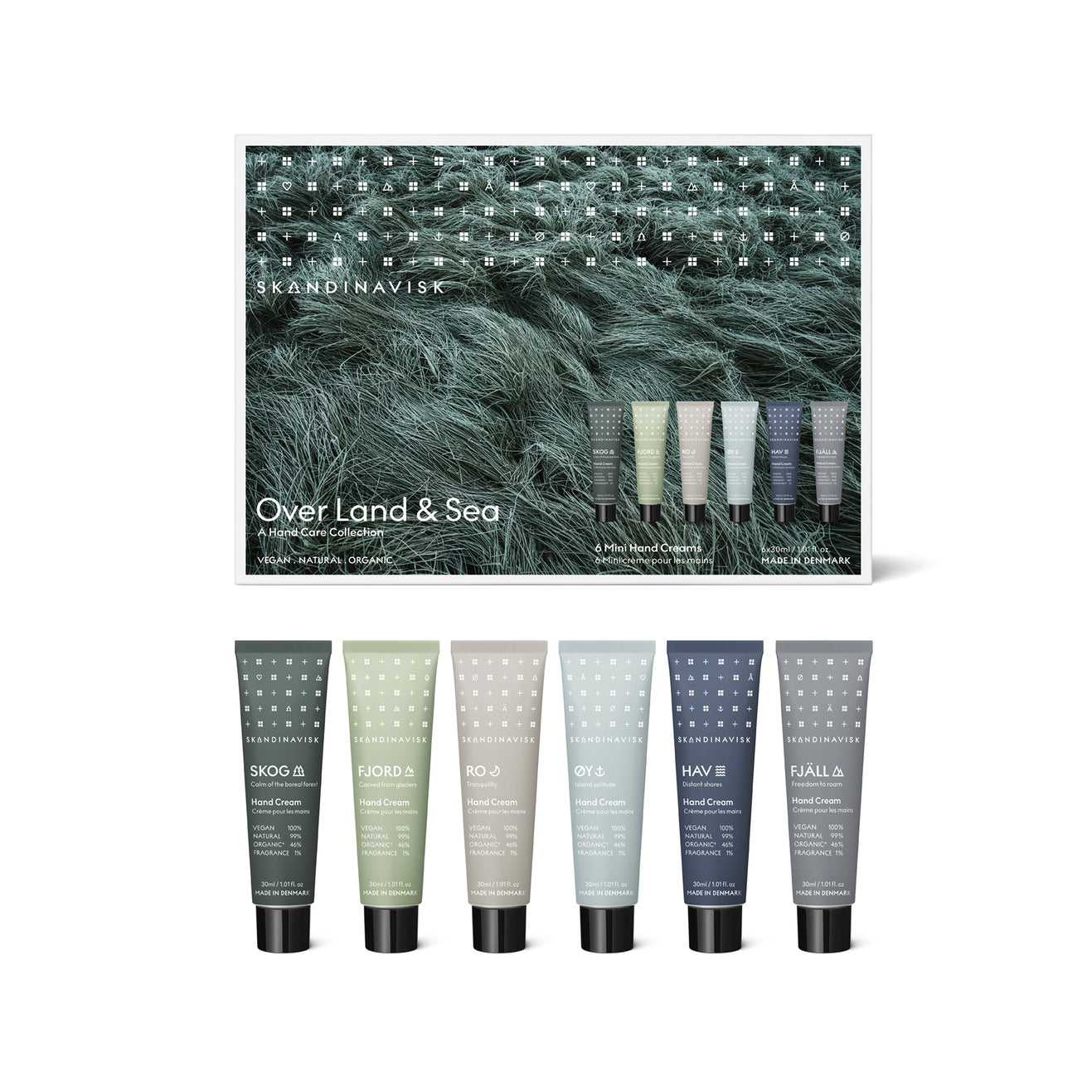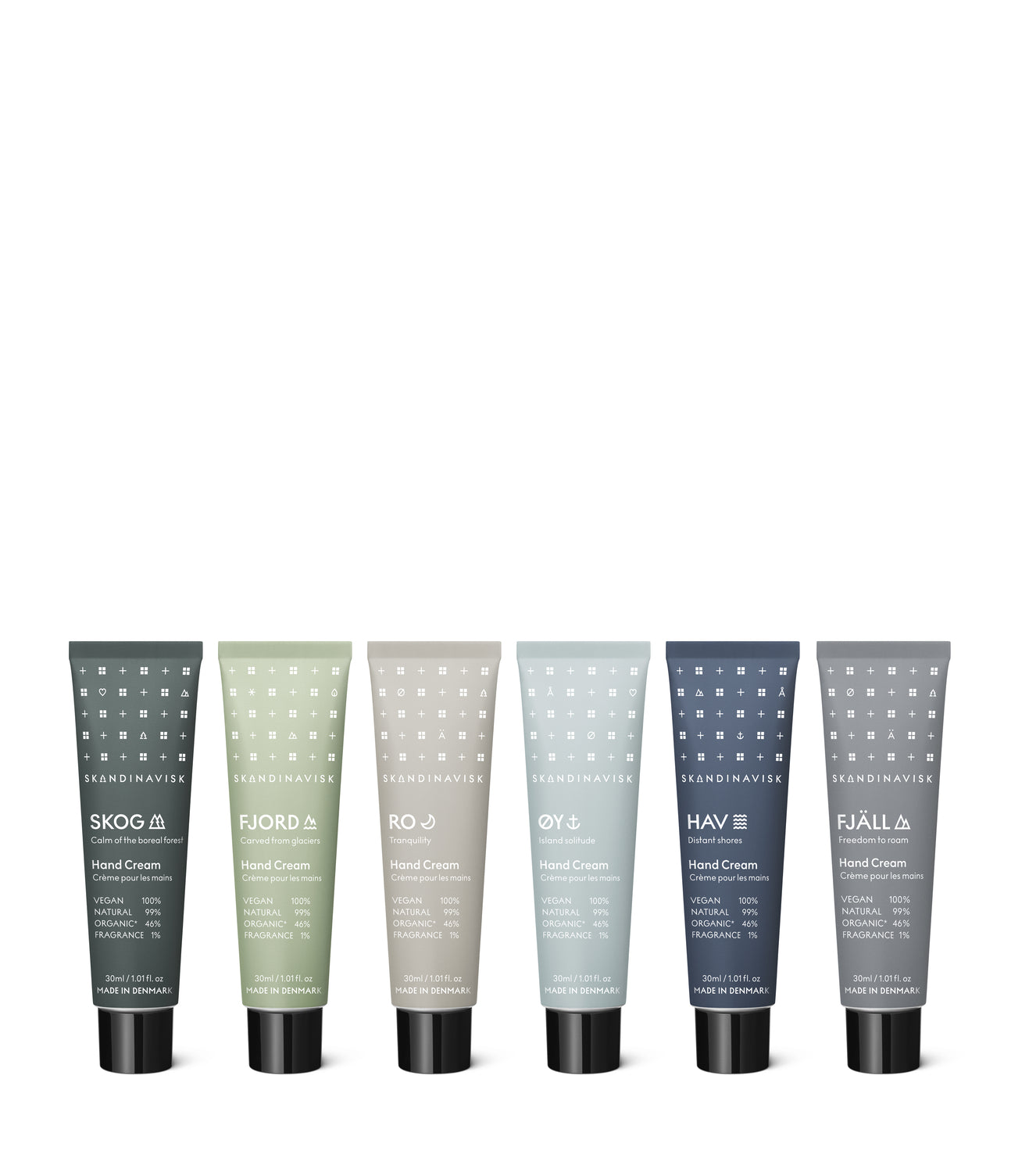 Our Wood & Water Giftset contains one 30ml tube of each of our 4 mini hand cream fragrances: SKOG, FJORD, ØY, and HAV.