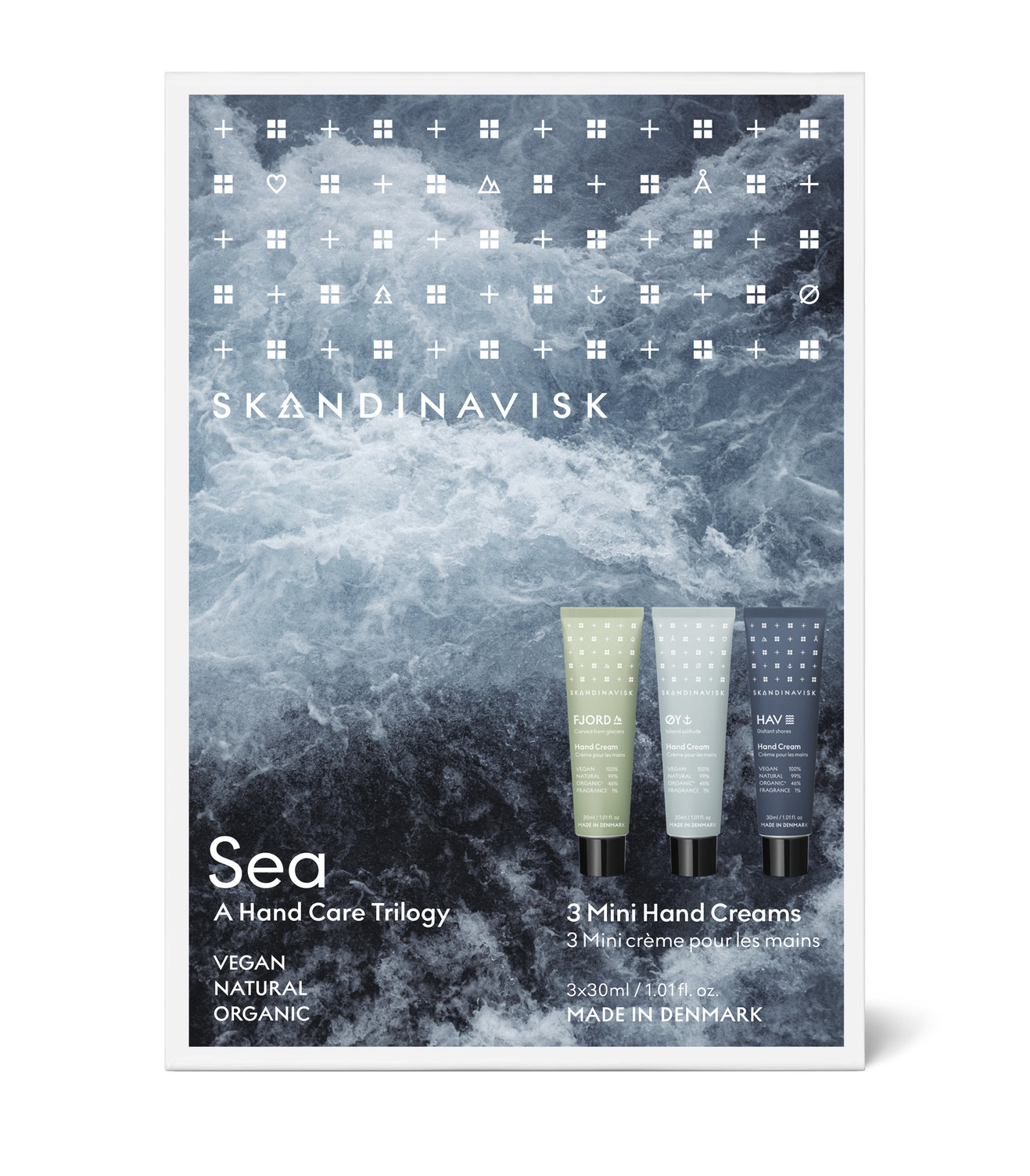 Our SEA Giftset contains one 30ml tube of each of our 3 mini hand cream fragrances: FJORD, ØY, and HAV.