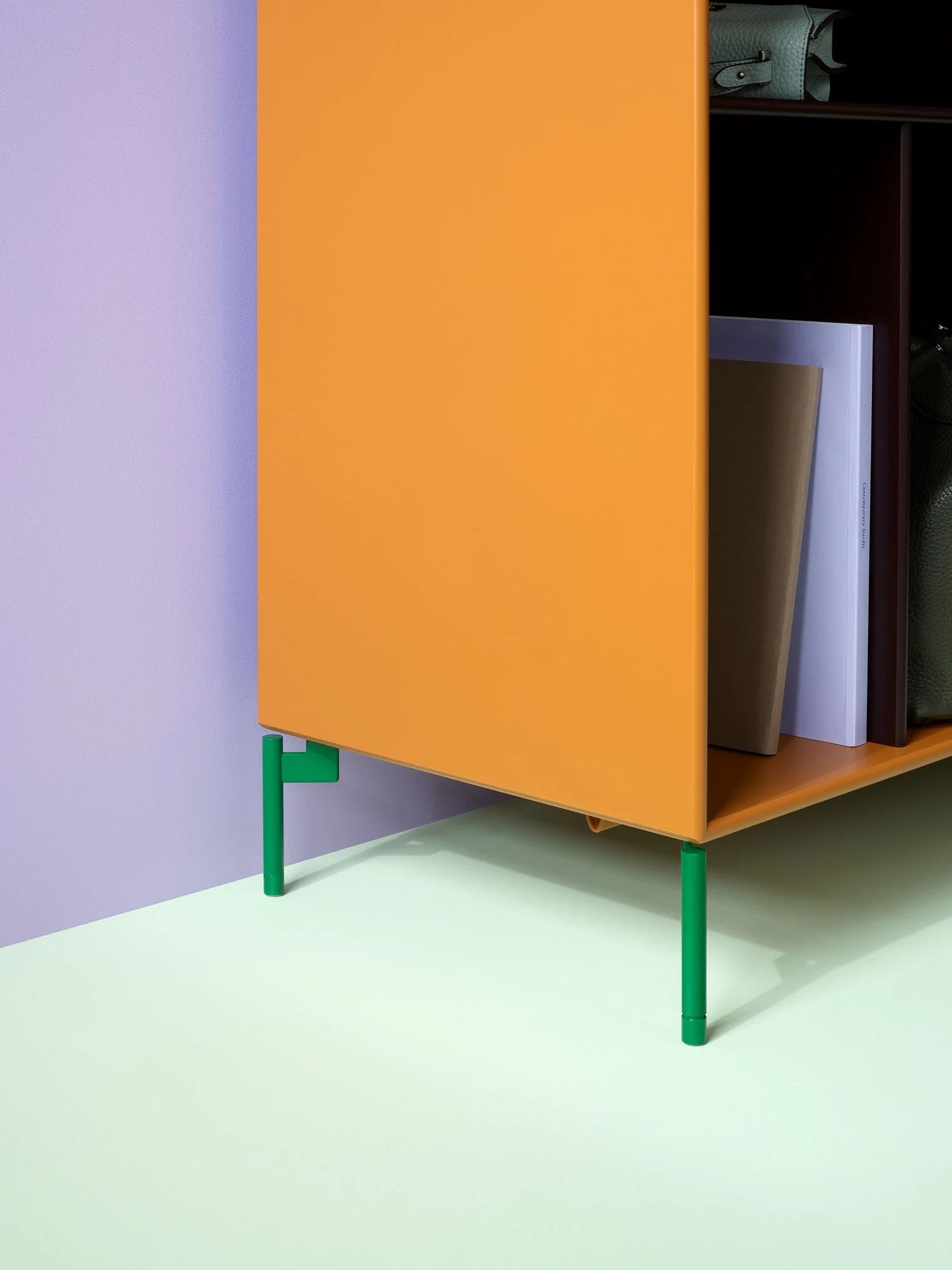 This is a set of 4 classic Montana legs. The legs fit all the Montana shelving modules in 12 mm MDF and are available in matte chrome, brass, or lacquered in the colors Snow, Black, Parsley, Rosehip, Flint, and Mushroom.