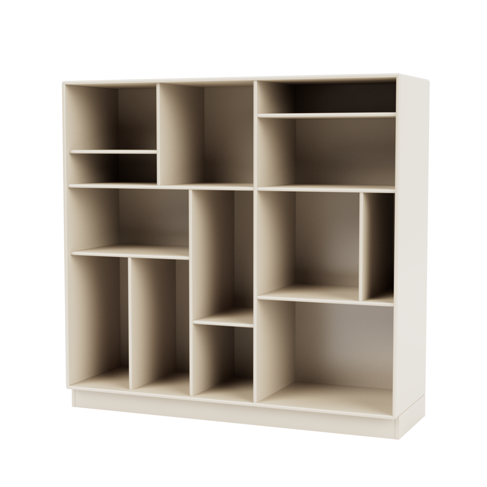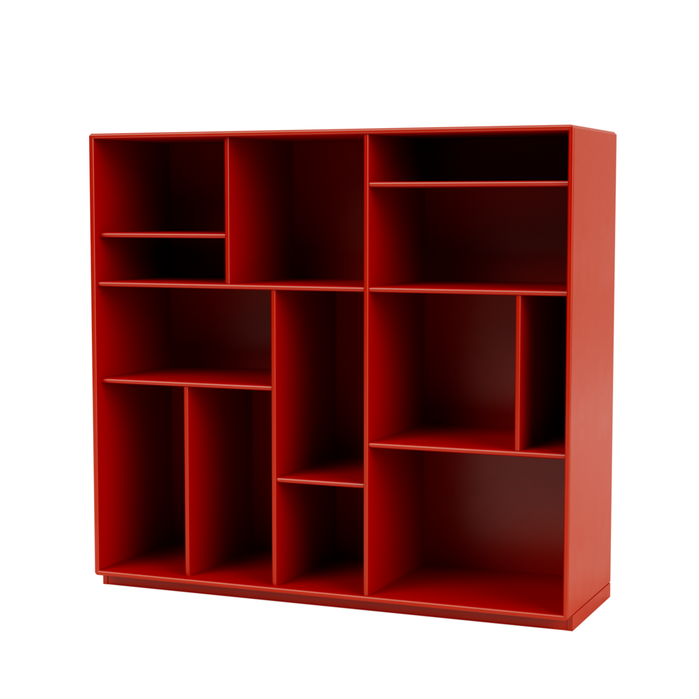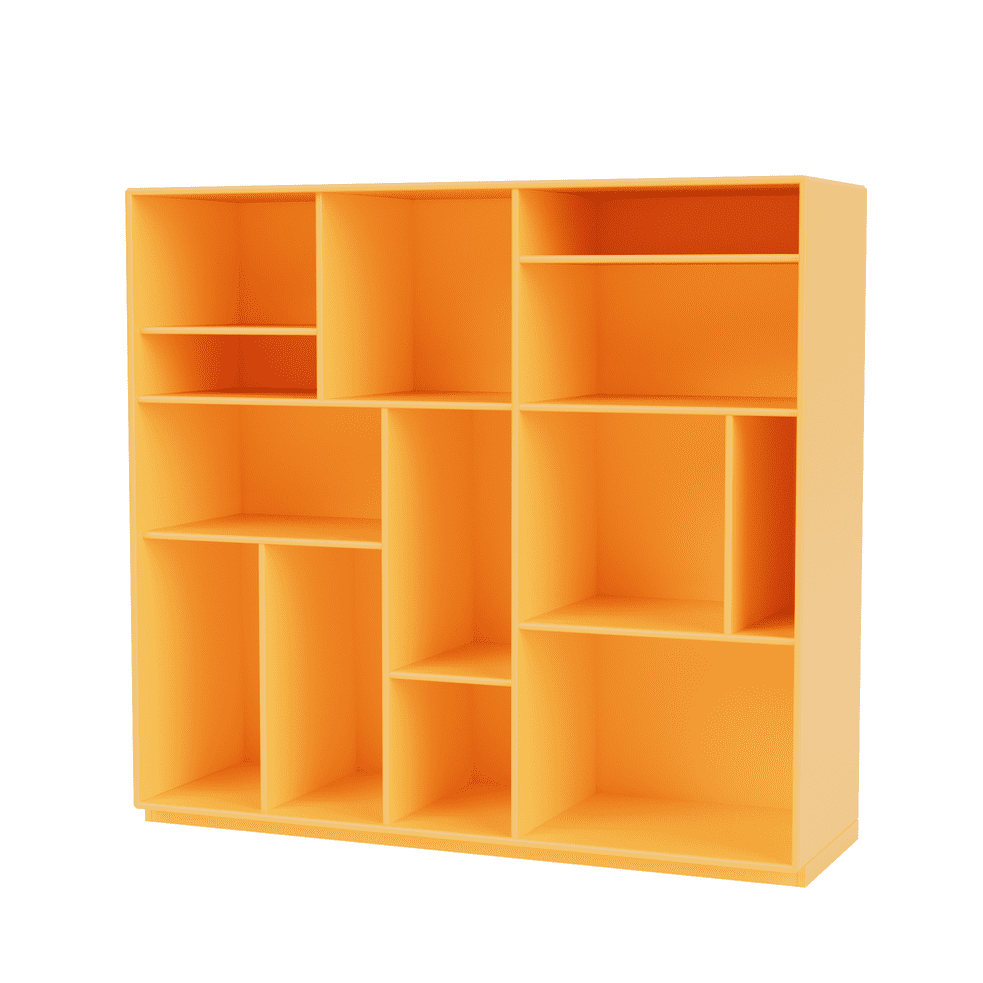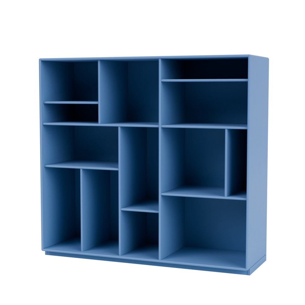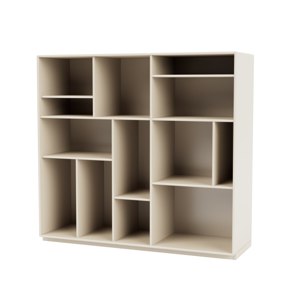 A high board with a modern expression from the Montana Mega series. Display shelf with 13 open compartments. The asymmetric design and the varying shapes and sizes of the different sections can be styled in multiple ways. Fill it with a collection of magazines, your favorite books, a few green plants, and a bouquet of flowers. No matter how you choose to use the storage space it will be a display out of the ordinary.
