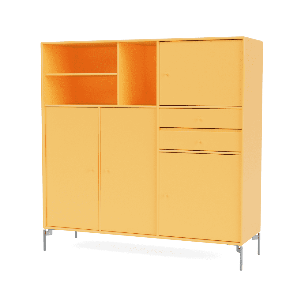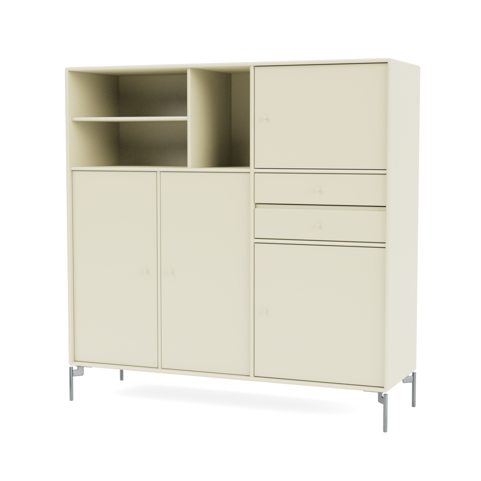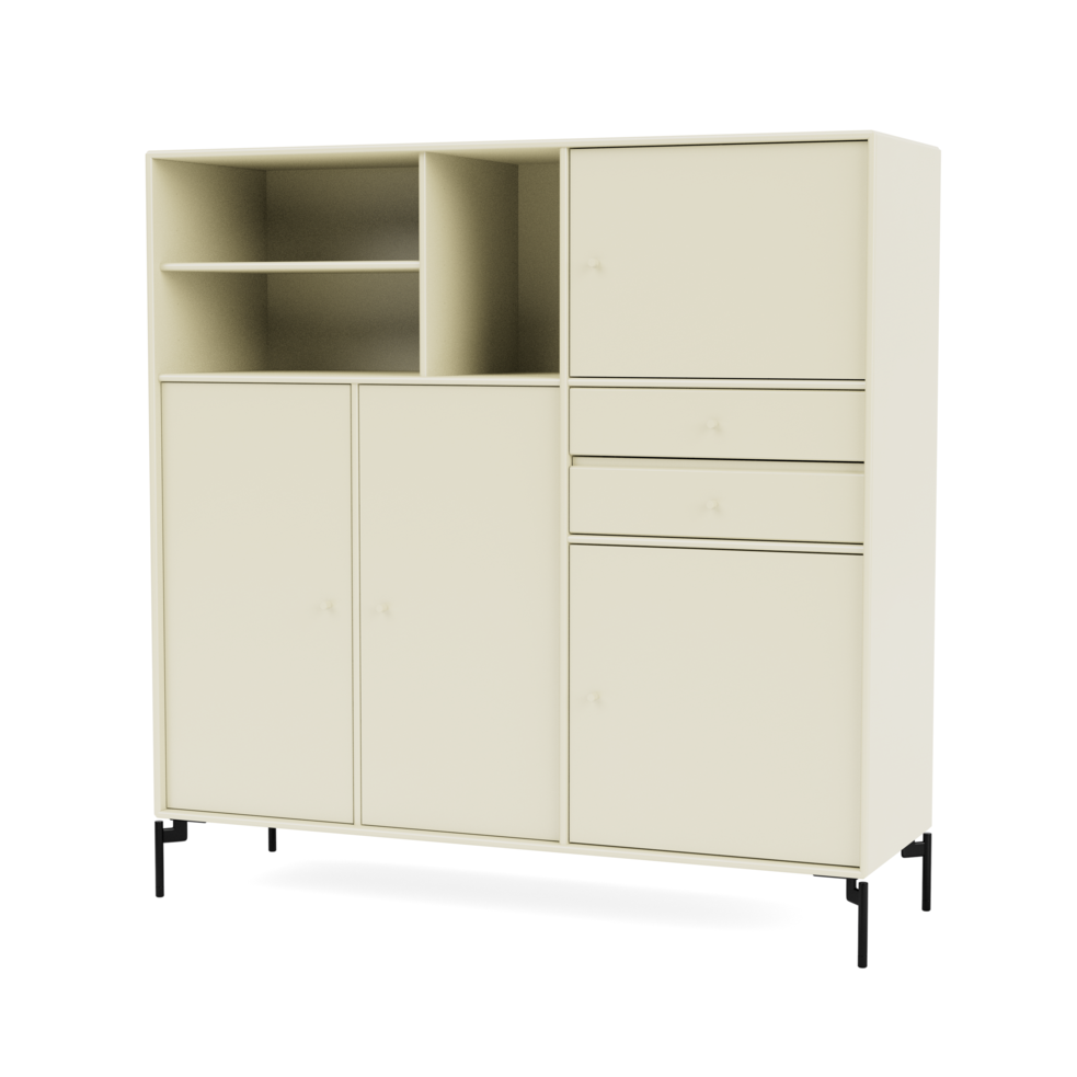 This sideboard has four compartments with doors, three shelves and two drawers. This all adds up to plenty of storage space and a versatile piece of furniture. This sideboard in the Montana Mega series is especially well-suited for the larger rooms in your home for example the living room, the dining room, the bedroom or even a large guest room. With the Montana Mega sideboard we make it easy for you to choose.