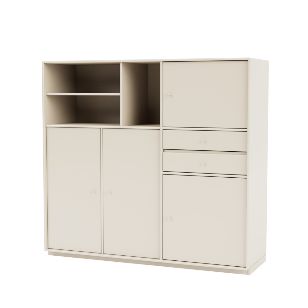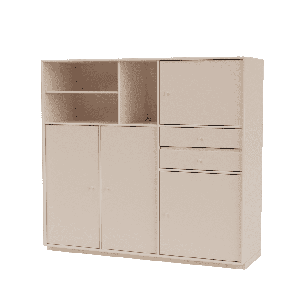 This sideboard has four compartments with doors, three shelves and two drawers. This all adds up to plenty of storage space and a versatile piece of furniture. This sideboard in the Montana Mega series is especially well-suited for the larger rooms in your home for example the living room, the dining room, the bedroom or even a large guest room. With the Montana Mega sideboard we make it easy for you to choose.