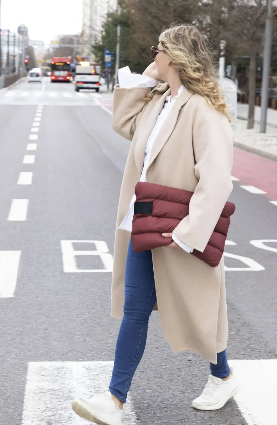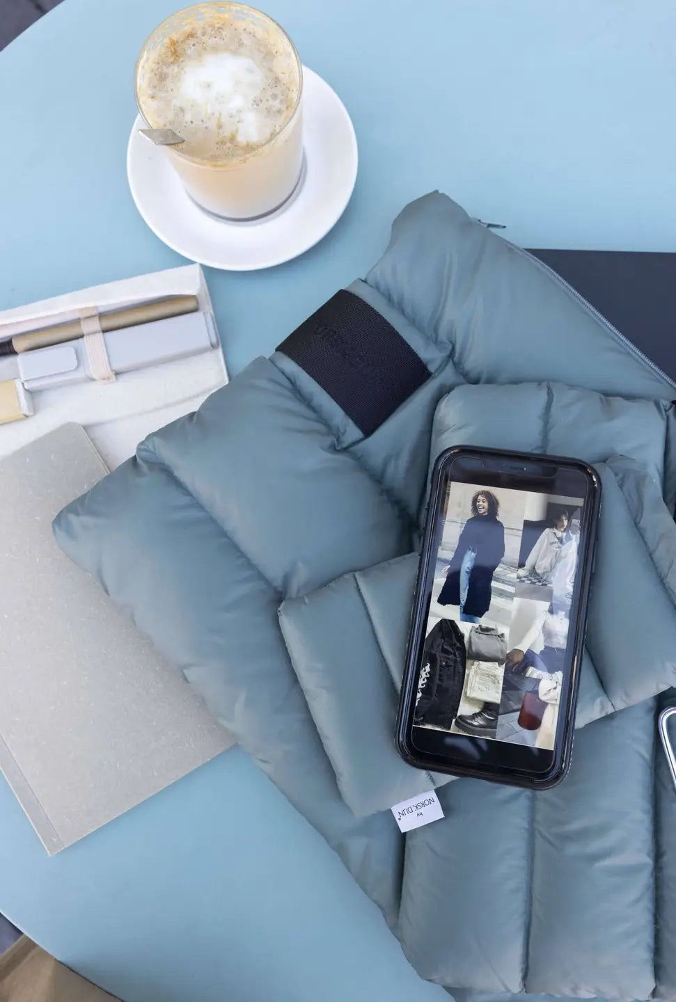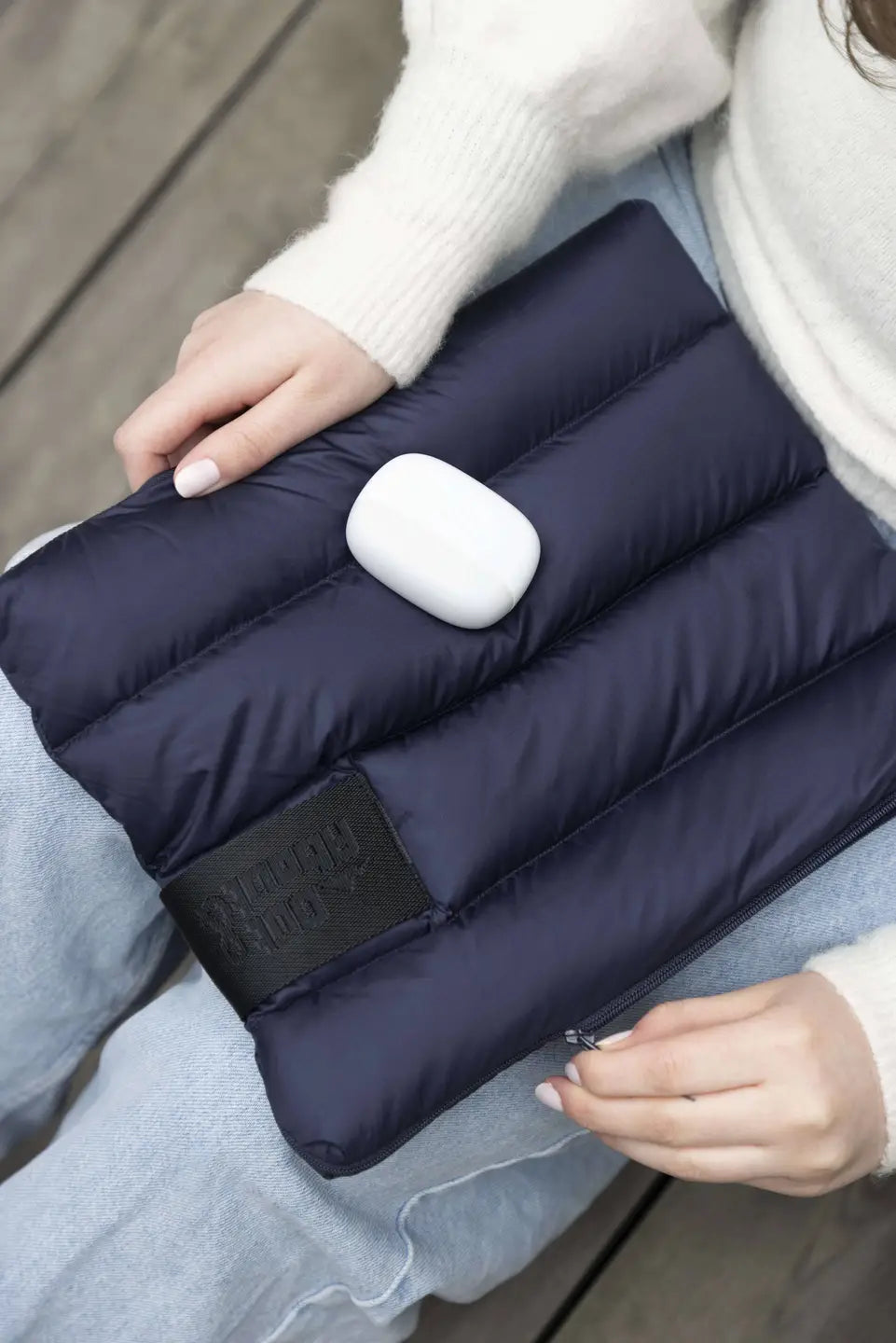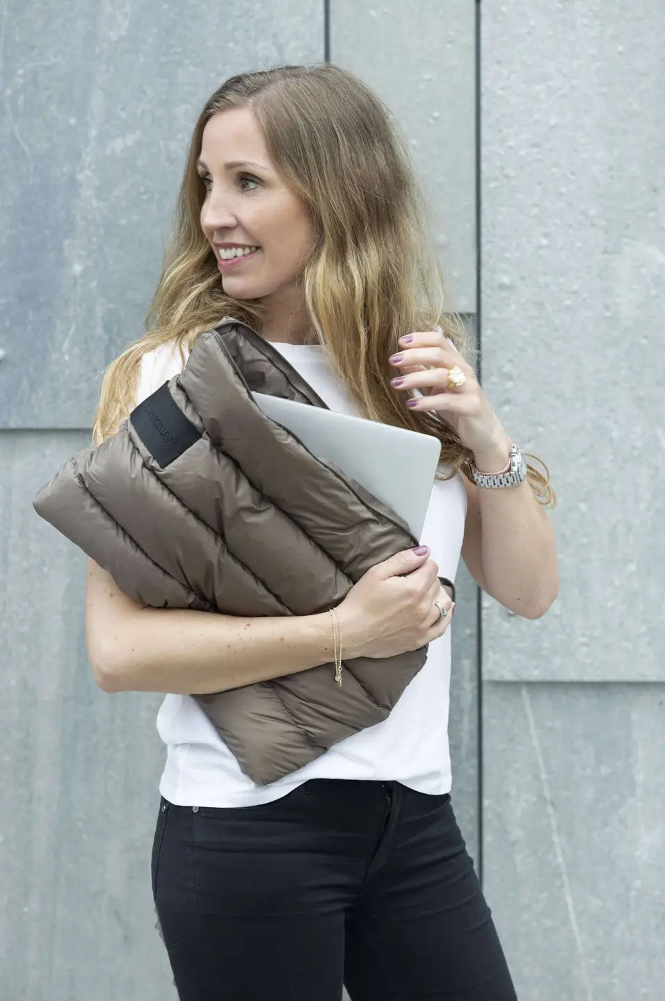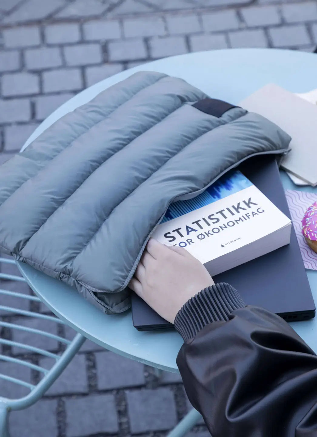 Laptop bag from Out&About with down cover. Available in fresh colors and fits a 17" laptop. The bag closes with a zip at the top and has a small pocket on the inside.