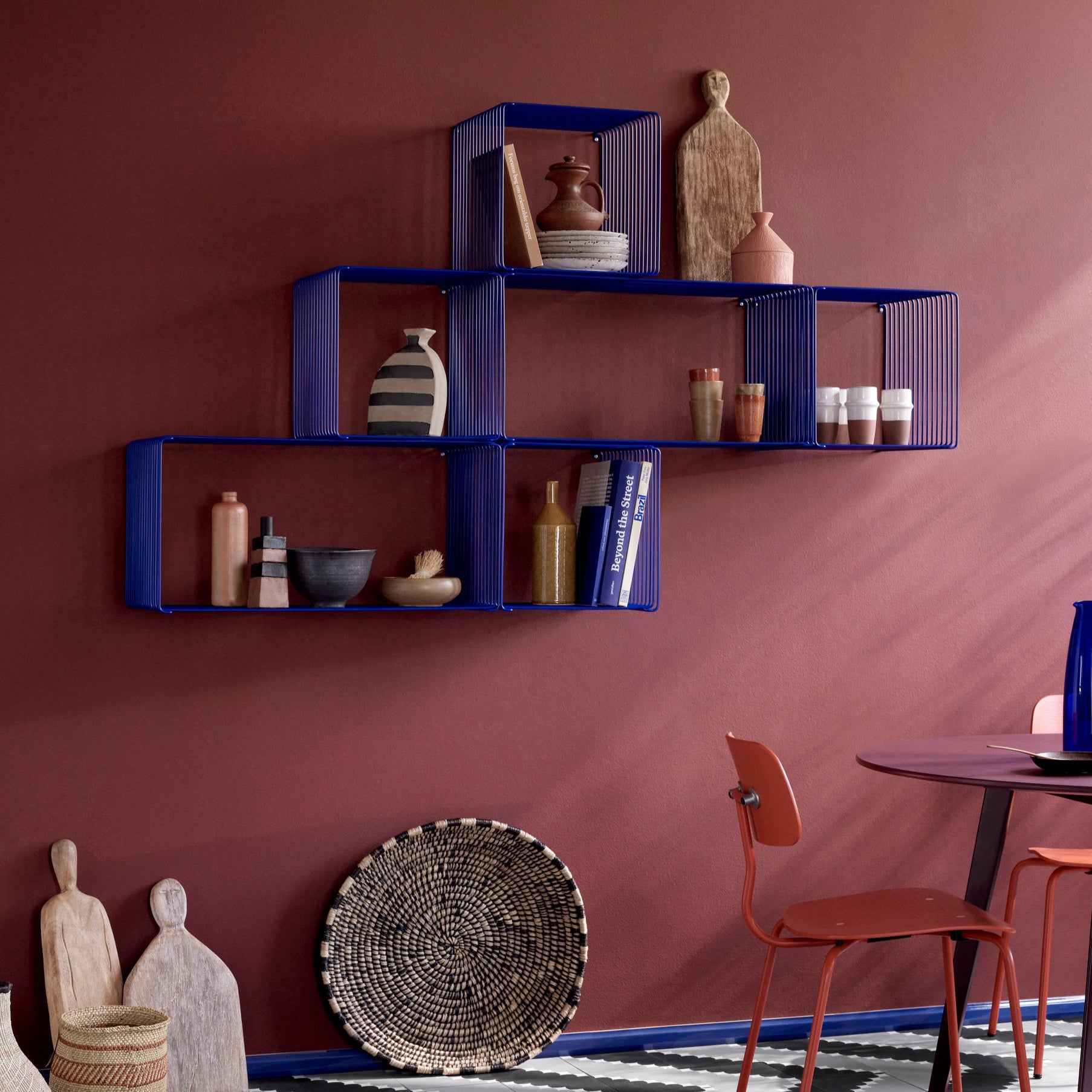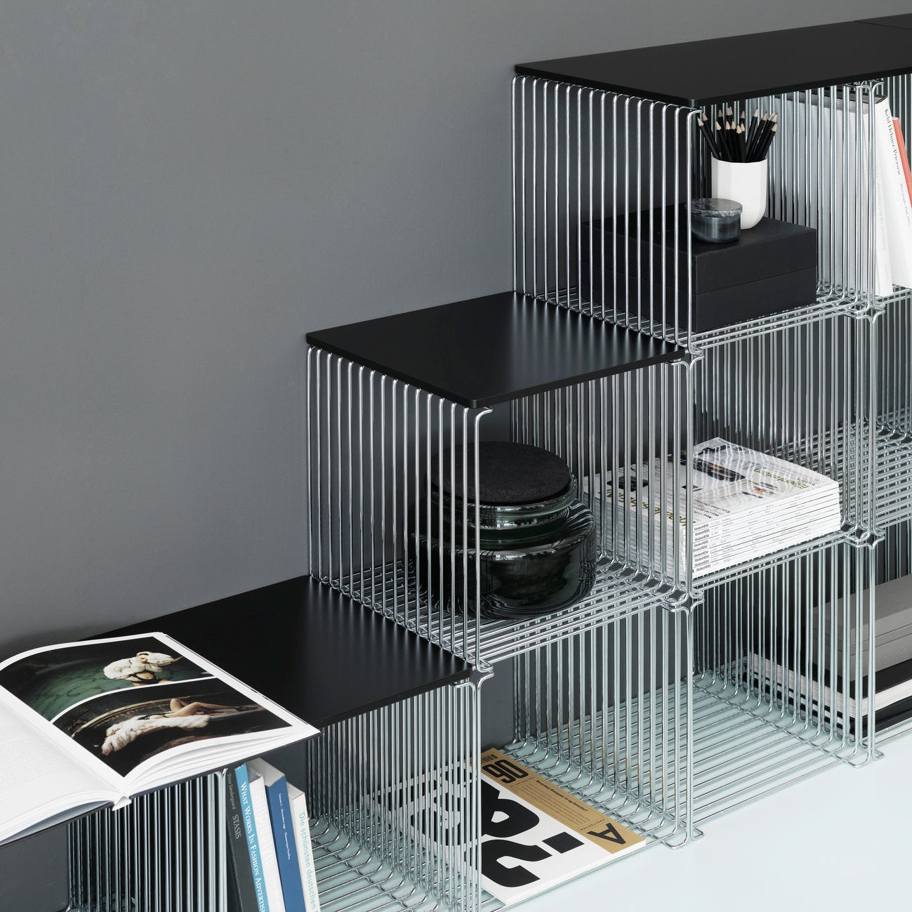 Panton Wire is raw yet elegant, light yet industrial in its design. The Panton Wire Single can be used individually or in combination with other products from the Panton Wire series – on the floor or hanging on the wall. A composition of several Panton Wire Units is an ideal solution as a room divider in a foyer that gives the room style along with practical storage possibilities.