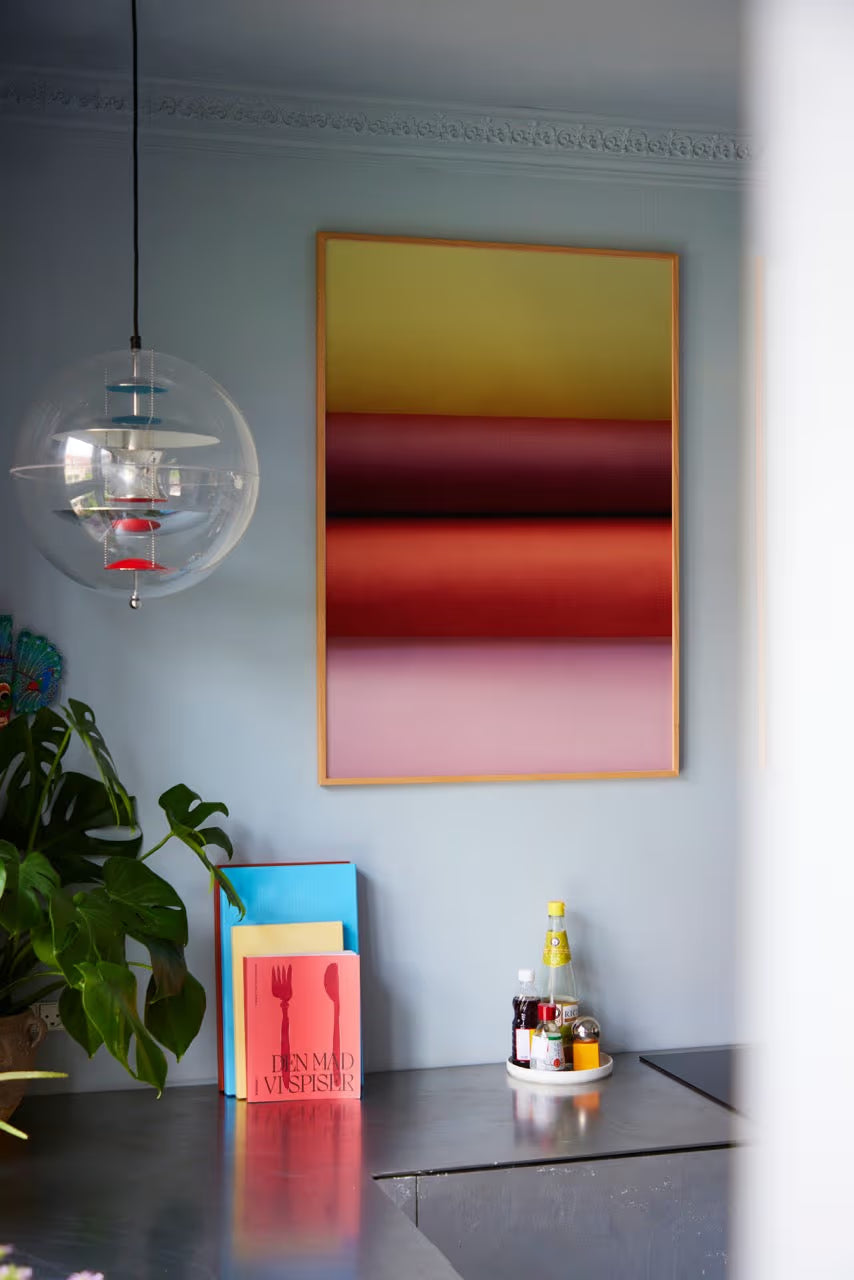 Paper Curves is a photographic print collection from the Dutch duo Raw Colour that highlights colour surfaces, paper texture and lens physics. Crafted by hand from rolled paper compositions, the analogue nature of the creative process is enhanced by points of focus and blur created by a shifting photographic depth of field. Paper Curves - Warm 02 creates constrast by mixing yellow, pink, and tonal shades of red.