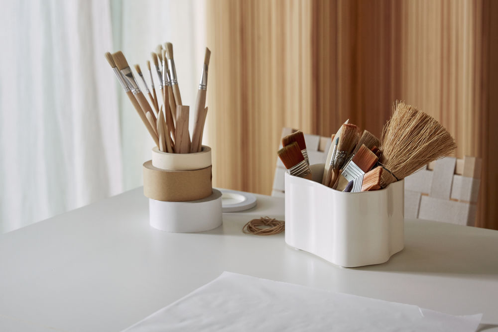 Although the plant pot featured in the Artek presentation at the Paris World Fair in 1937, it never went into serial production. The pot is handmade from ceramic, a material central to the Aalto’s building vocabulary.
