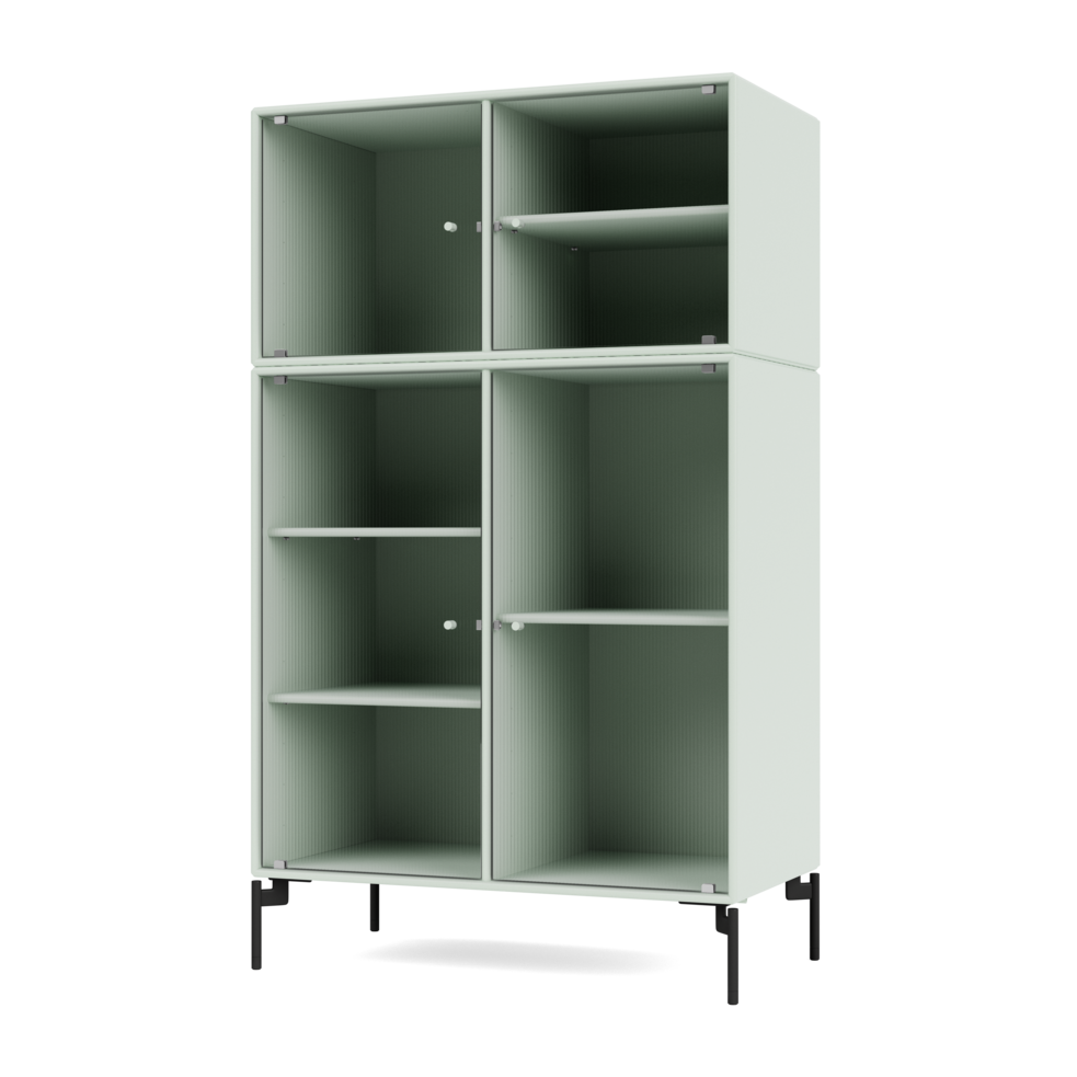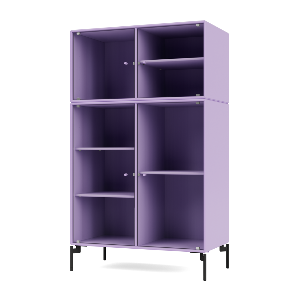 The cabinet has 4 movable shelves with carriers that make it easy to arrange and rearrange the shelves as needed. It comes in Montana's 41 lacquer colors and the handles are powder coated in the same color as the cabinet.