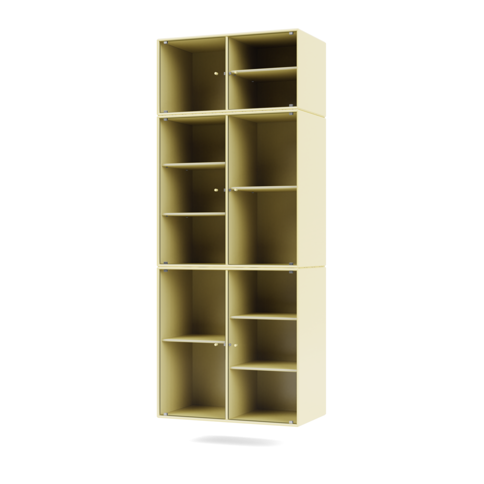 The cabinet has 7 movable shelves with carriers that make it easy to arrange and rearrange the shelves as needed. It comes in 41 lacquer colors and the handles are powder coated in the same color as the cabinet.