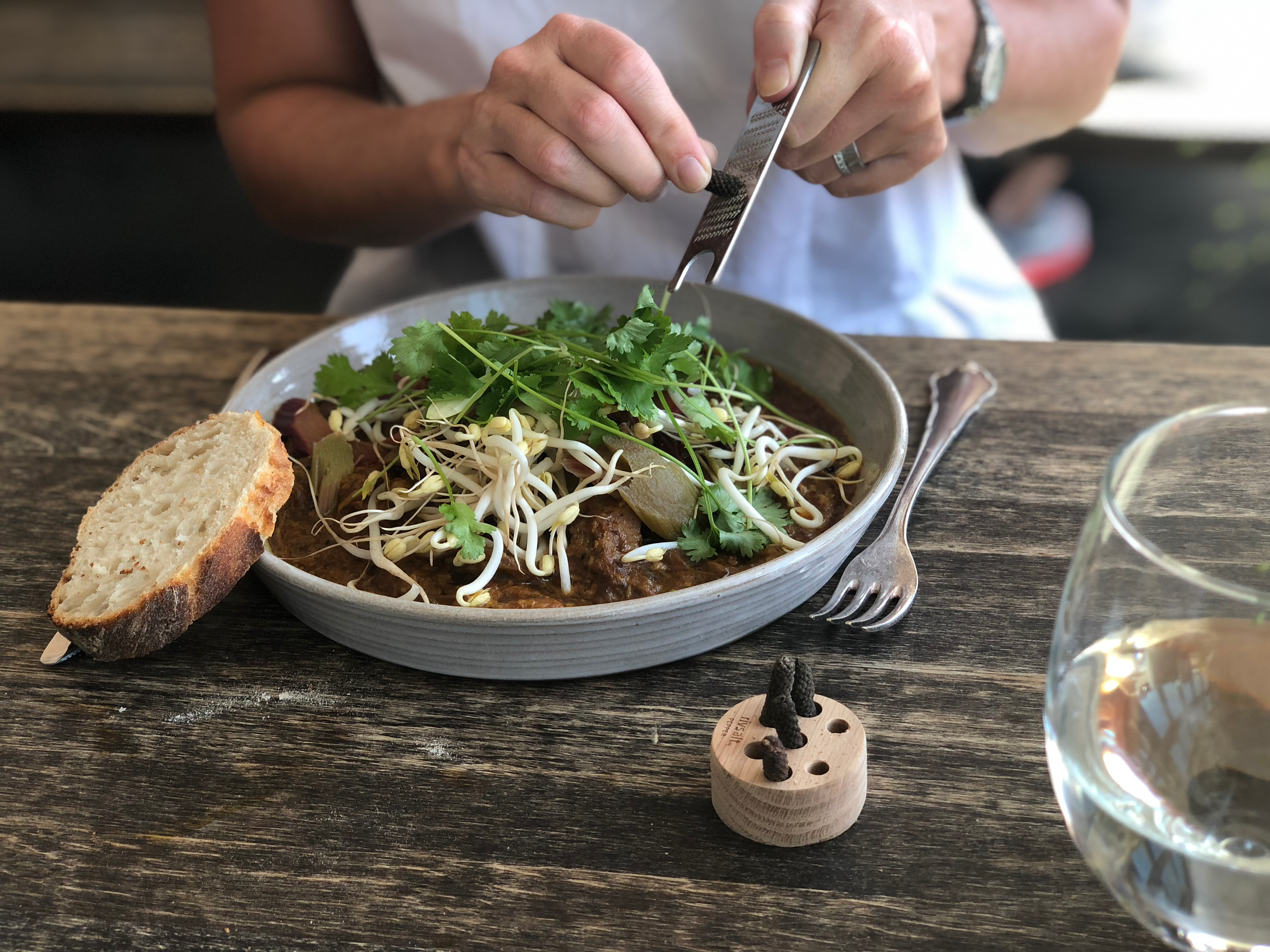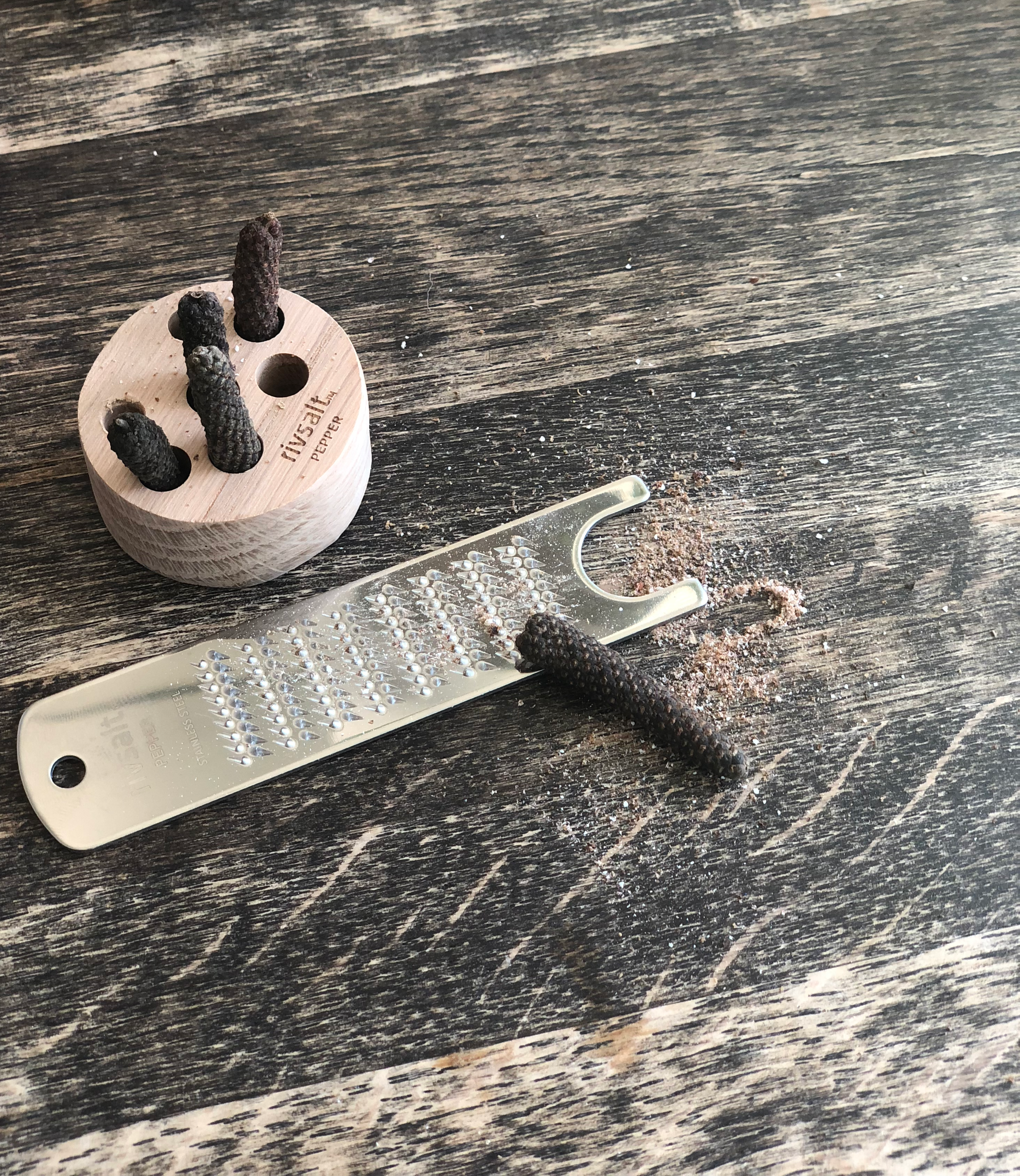 PEPPER contains five aromatic long peppers from the Indonesian island of Java. Java long pepper has its own distinctive character, but the familiar taste of traditional black pepper is also present. When seasoning your dish with grated long pepper, you will detect unexpected aromas of licorice, aniseed, and cinnamon, with a spicy sensation towards the end. Think of it as regular black pepper with a twist. Together with the grater in stainless steel and the stand in natural oak they become a cherished design piece that quickly turns into a conversation piece around the dining room table.