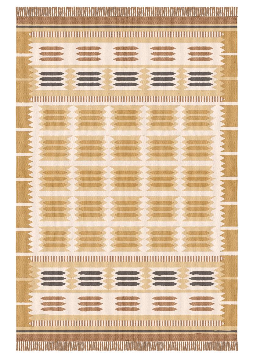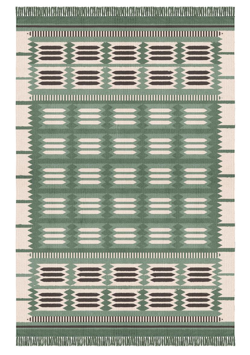 This product is part of Layered's Röllakan collection, which combines modern design with traditional Scandinavian female craftsmanship.Inspired by the traditional röllakan rug, which has played an important role in Scandinavian folk tradition for over 1,000 years, the collection presents five unique rugs in a monochrome color palette and geometric patterns. The rug ‘Hilma’ comes in the colors Fern, Marigold, and Meadow, and the rug ‘Iris’ in the colors Petrol and Raspberry. Like traditional röllakan rugs, these rugs are handwoven, with a vertical warp of 100% cotton and a horizontal weft of 100% wool.