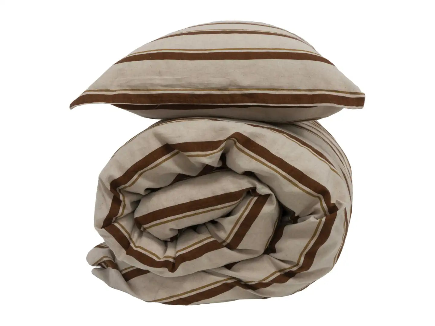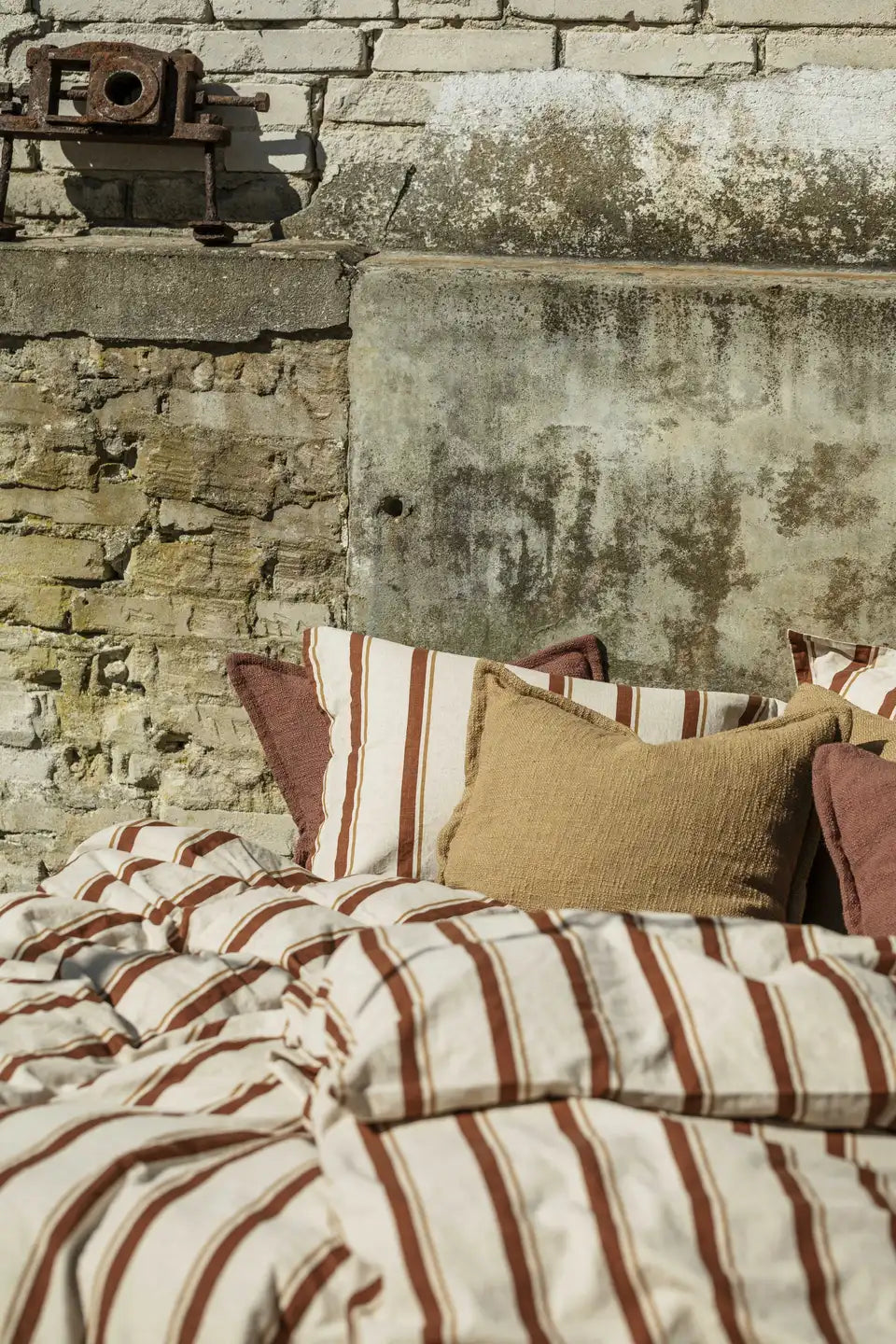 The Solist bed set from Gustav Ovland gives a rustic and industrial look in the form of stripes. The bed set is made from a light and delicious mix of linen and cotton, which has many advantages. Linen is a natural and durable material that breathes well and regulates the temperature. Cotton is a soft and comfortable material that feels good against the skin. The bed set is also washed, which makes it extra soft and delicious.
